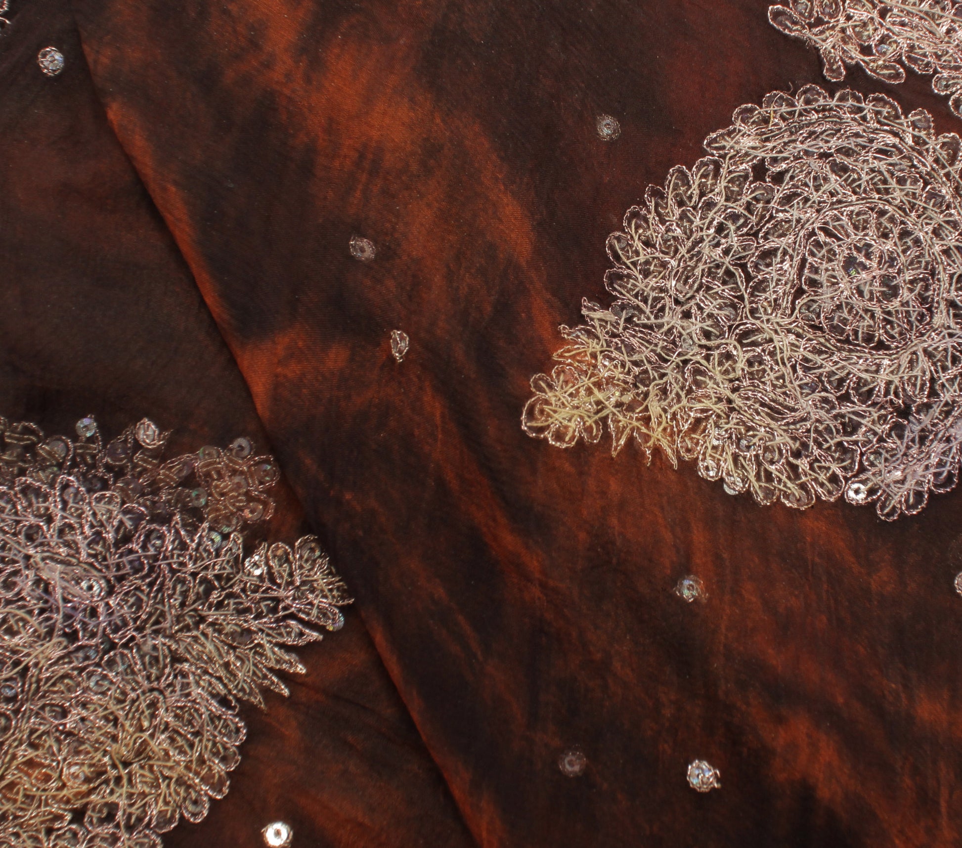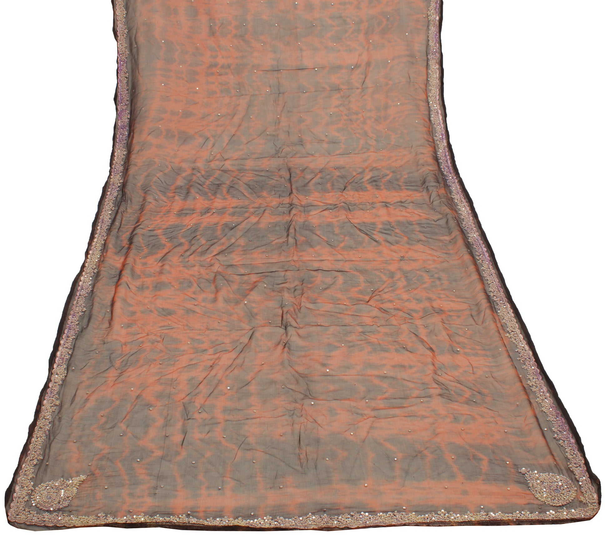 Sushila Vintage Brown Tie-Dye Dupatta Pure Chiffon Silk Hand Beaded Long Stole