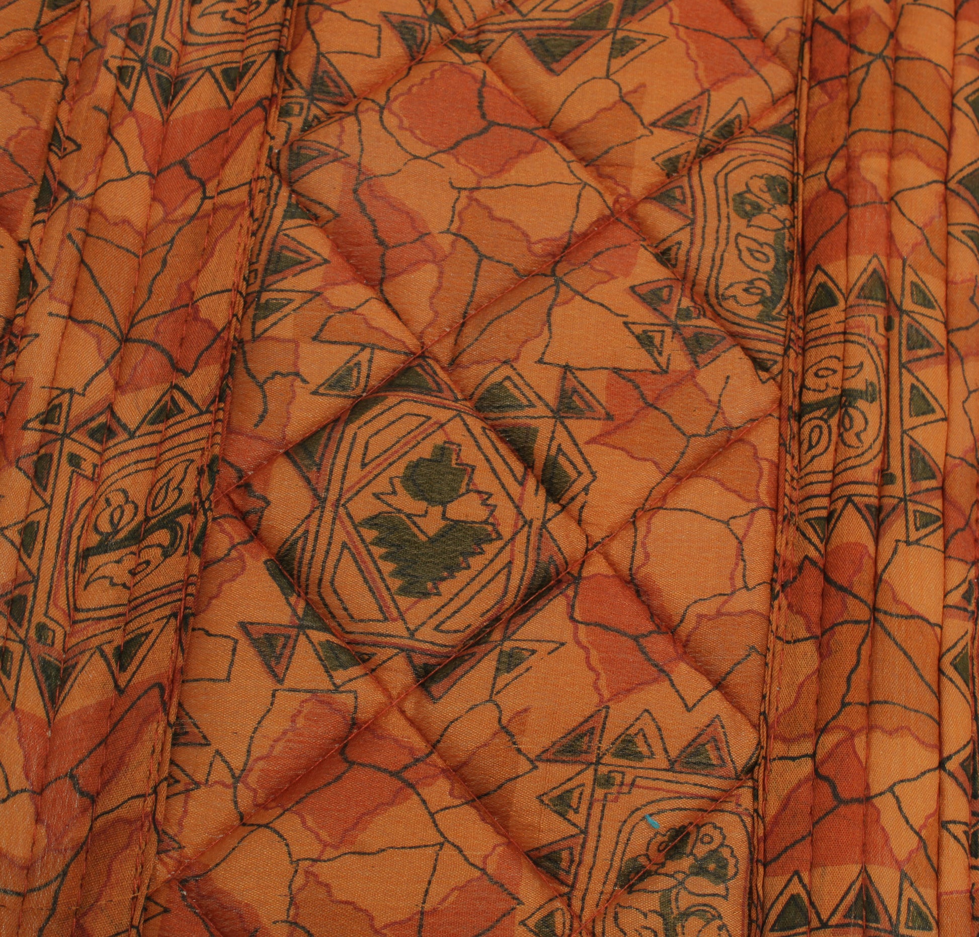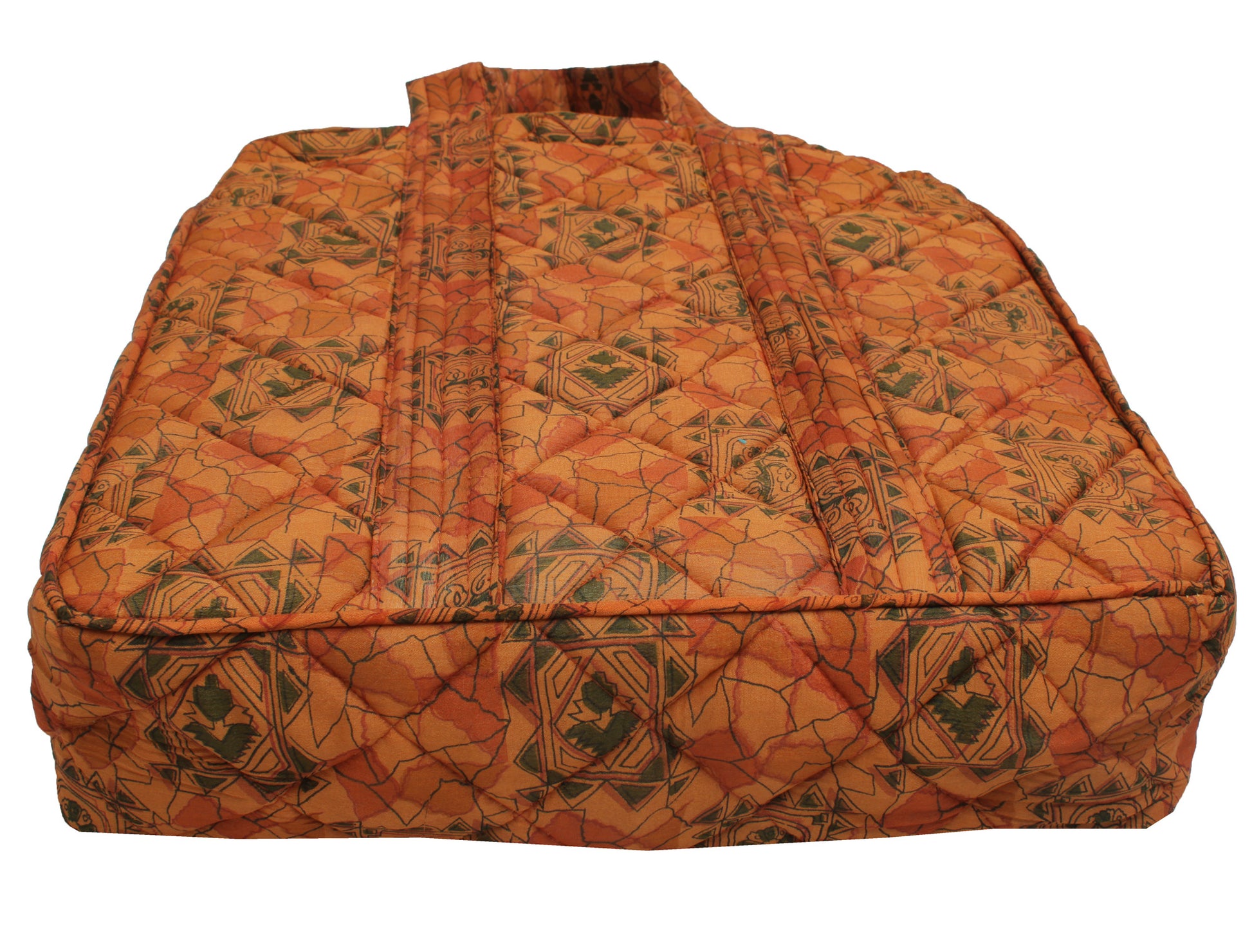 The outer fabric is 100% Pure Silk Printed Saree Fabric quilted with Foam and, Middle layer uses water resistant fabric and the inner layer uses Roto Fabric.