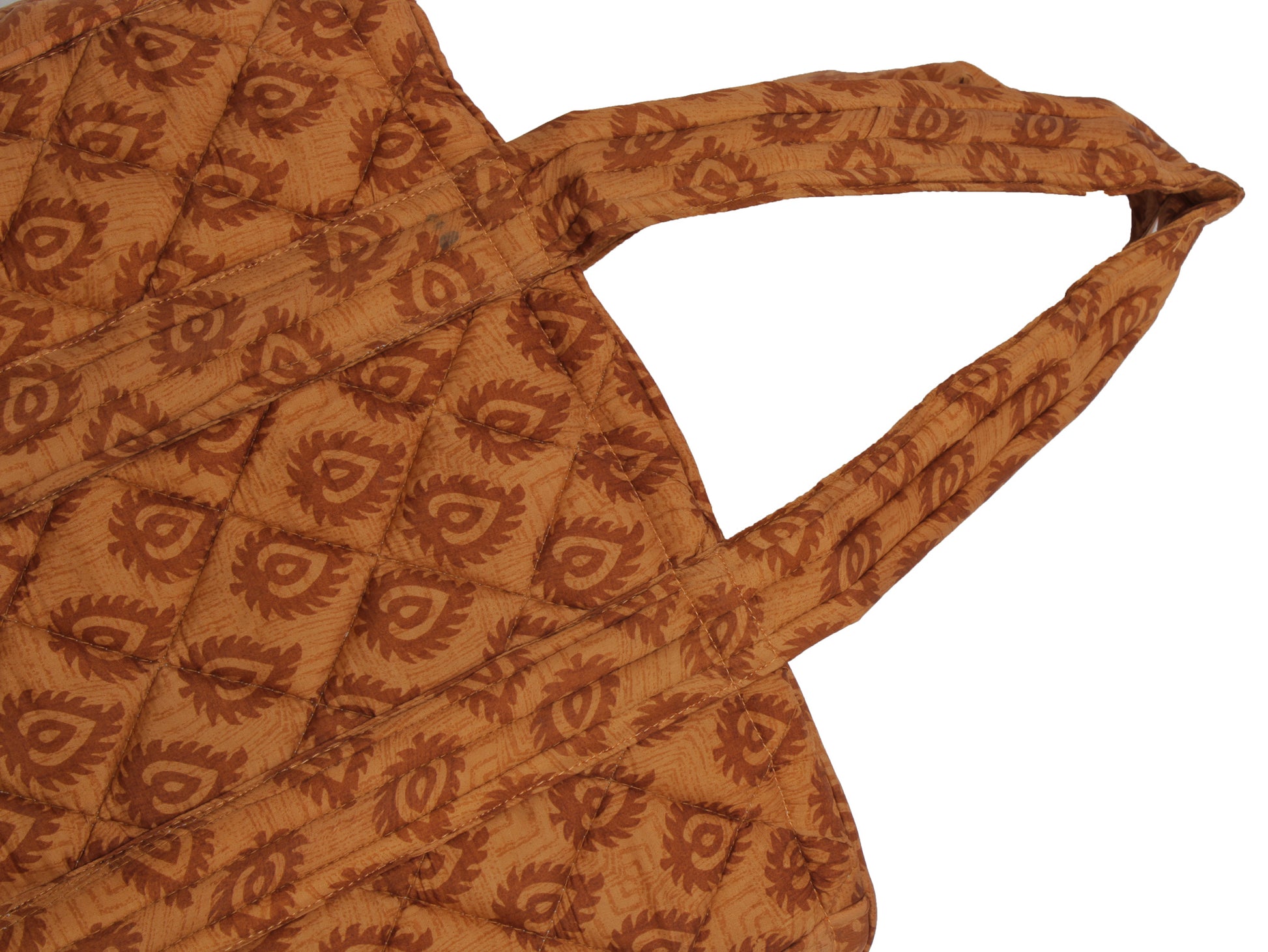 Sushila Vintage Brown Tote Bag 100% Pure Silk Printed Handbag Shoulder Bag
