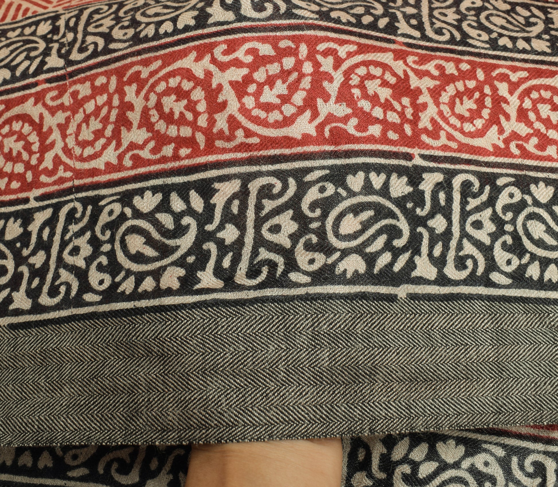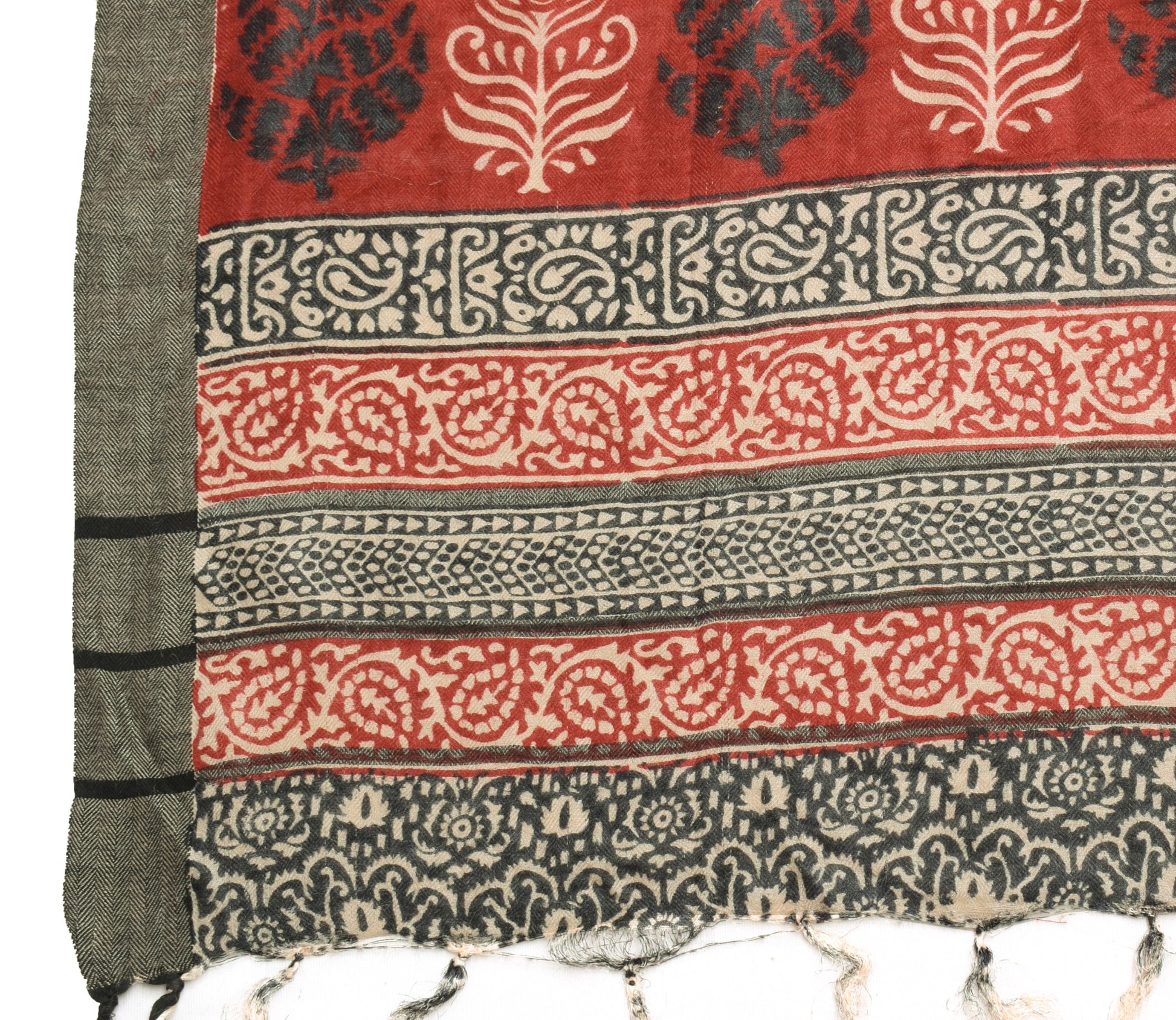 Sushila Vintage Cream Dupatta 100% Pure Woolen Hand Block Printed Long Stole
