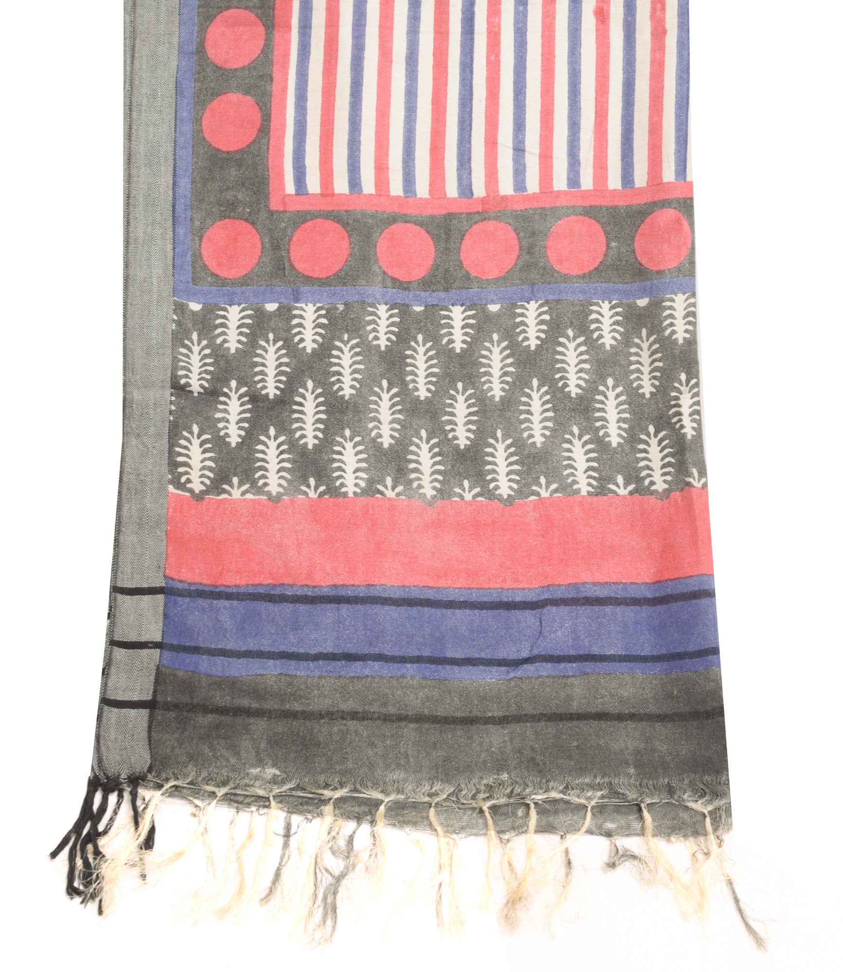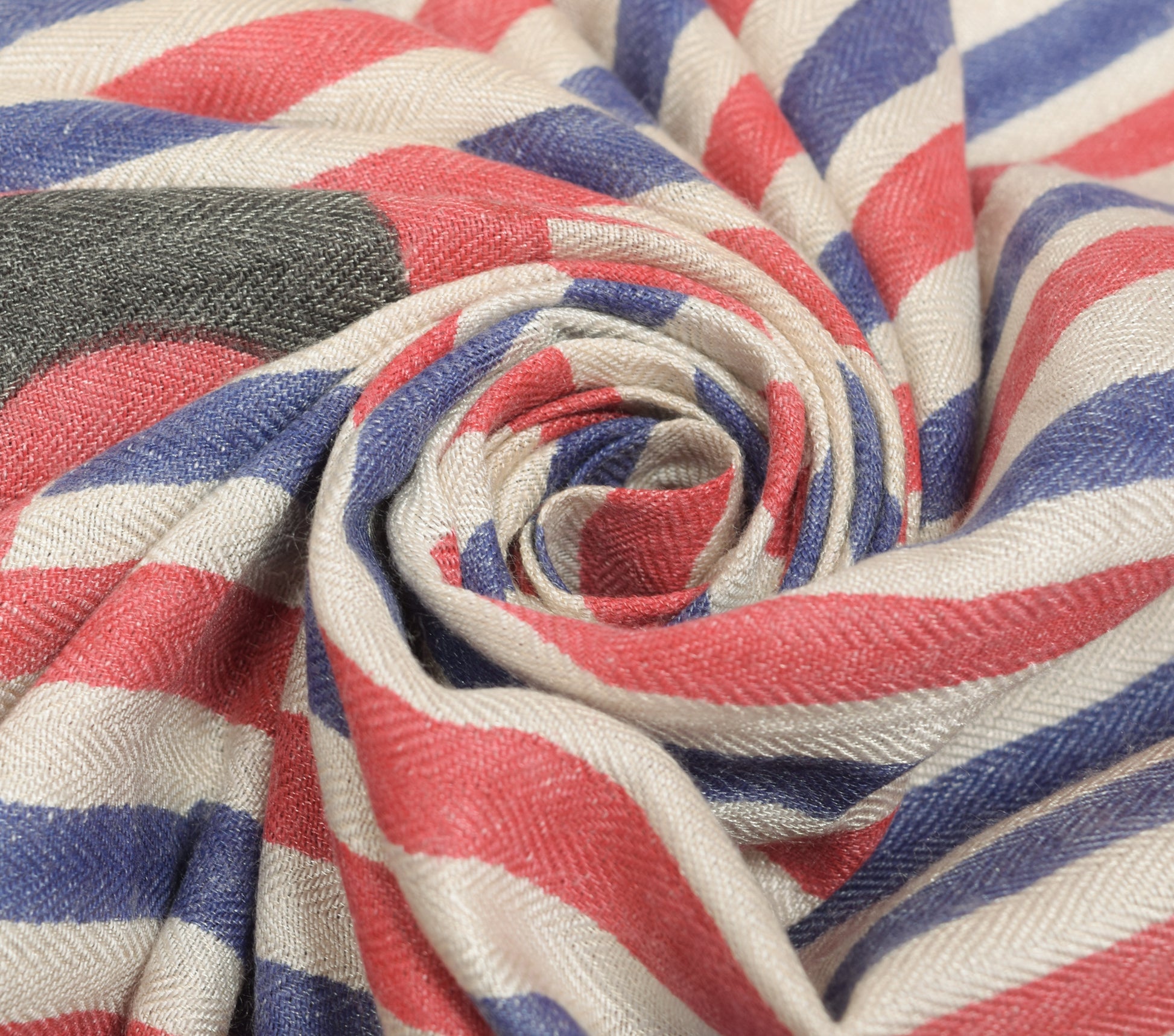 Sushila Vintage Cream Dupatta Blend Woolen Printed Stripes Long Stole Shawl Veil