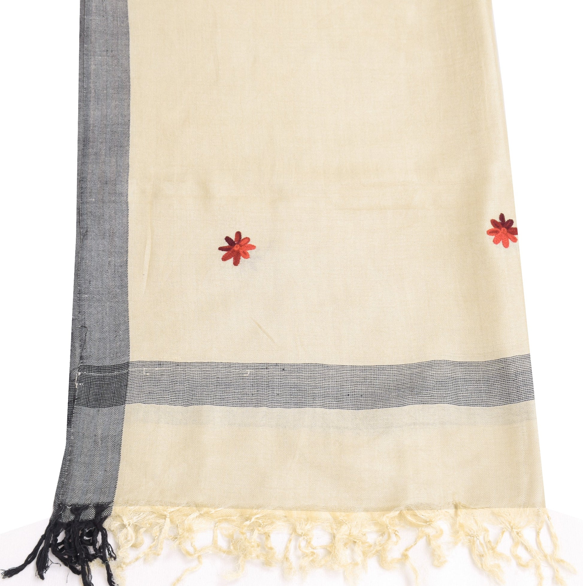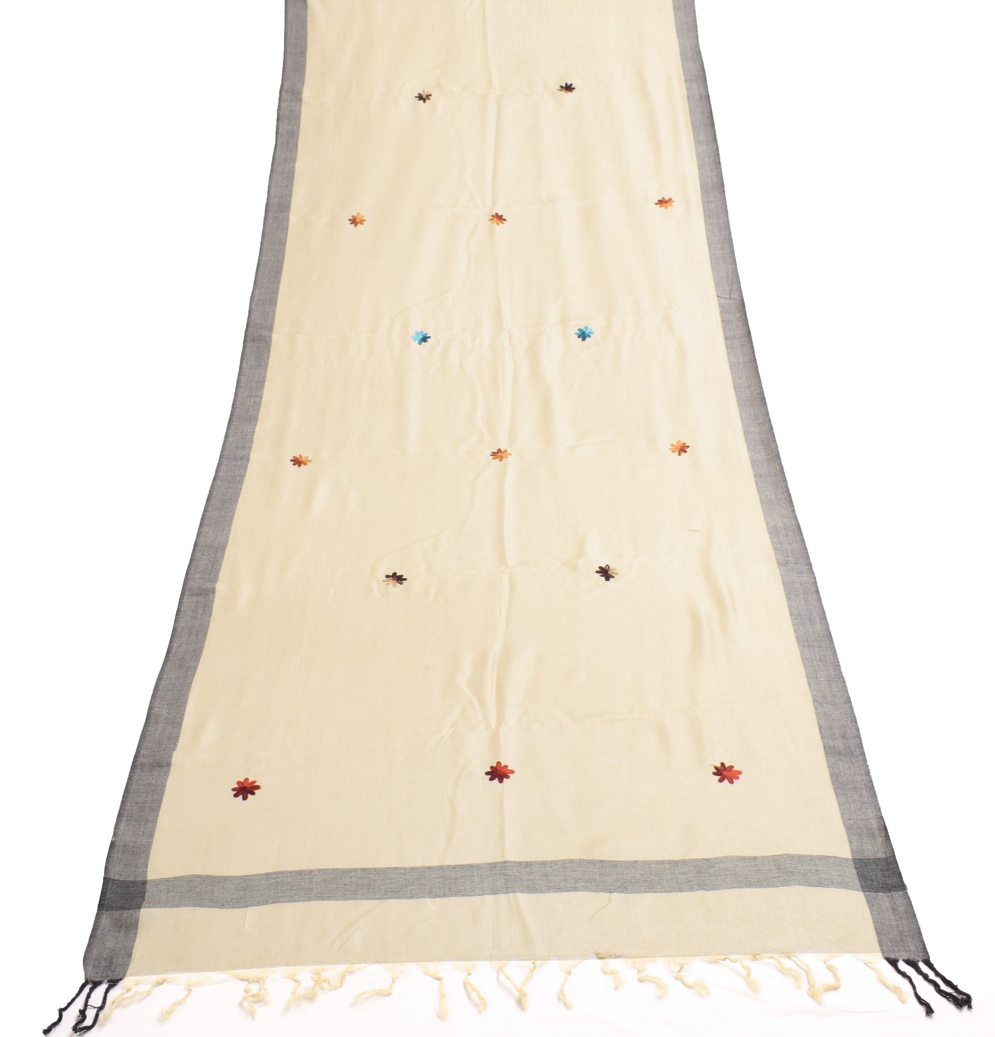 Sushila Vintage Cream Dupatta Pure Woolen Kashmiri Embroidered Long Stole Shwal