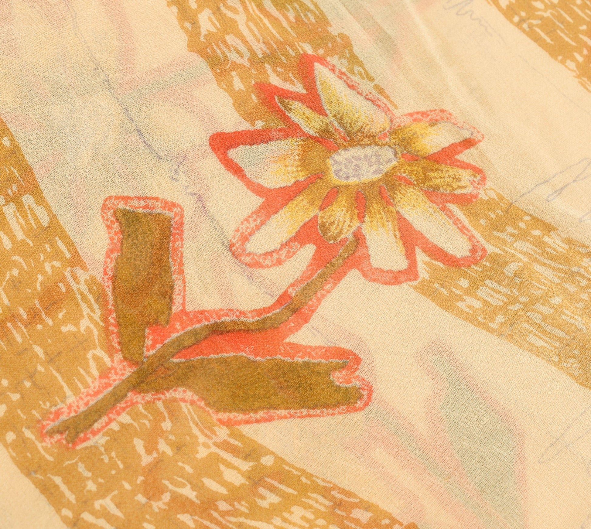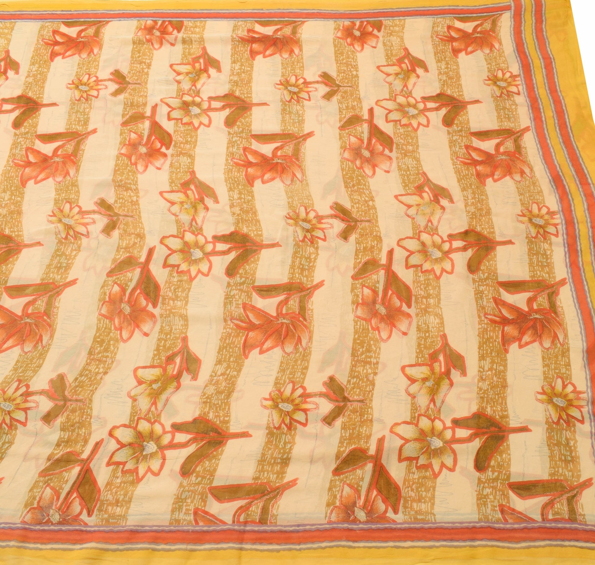 Sushila Vintage Cream Floral Saree 100% Pure Georgette Silk Printed Craft Fabric