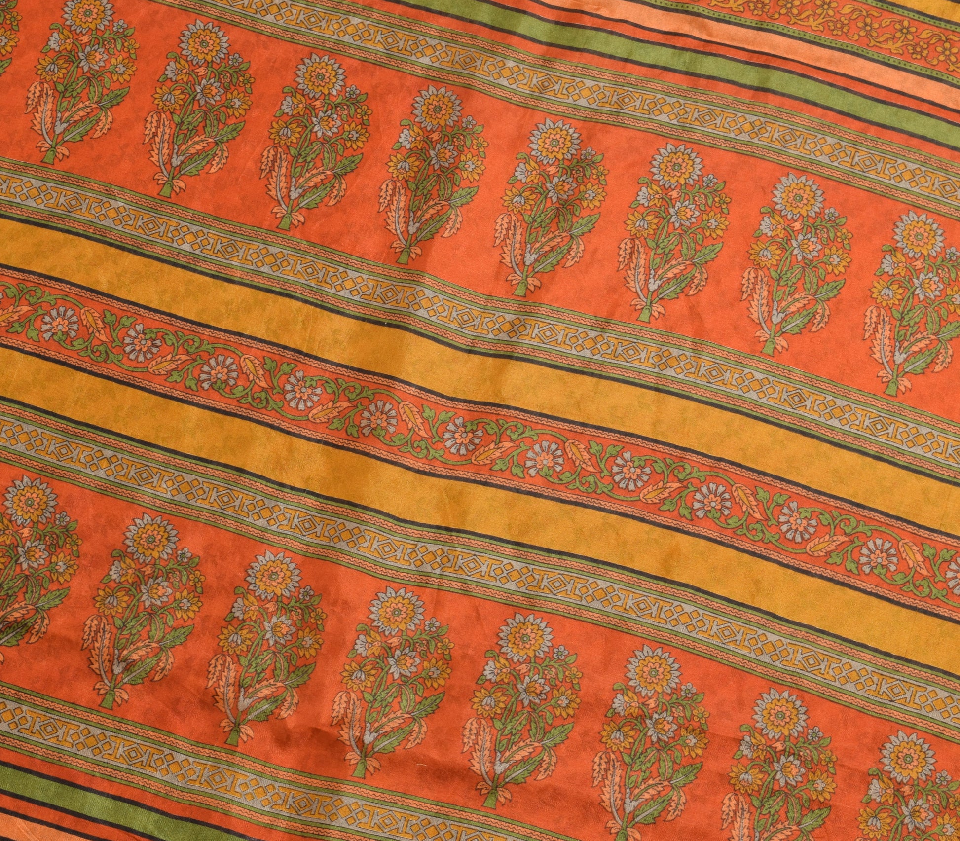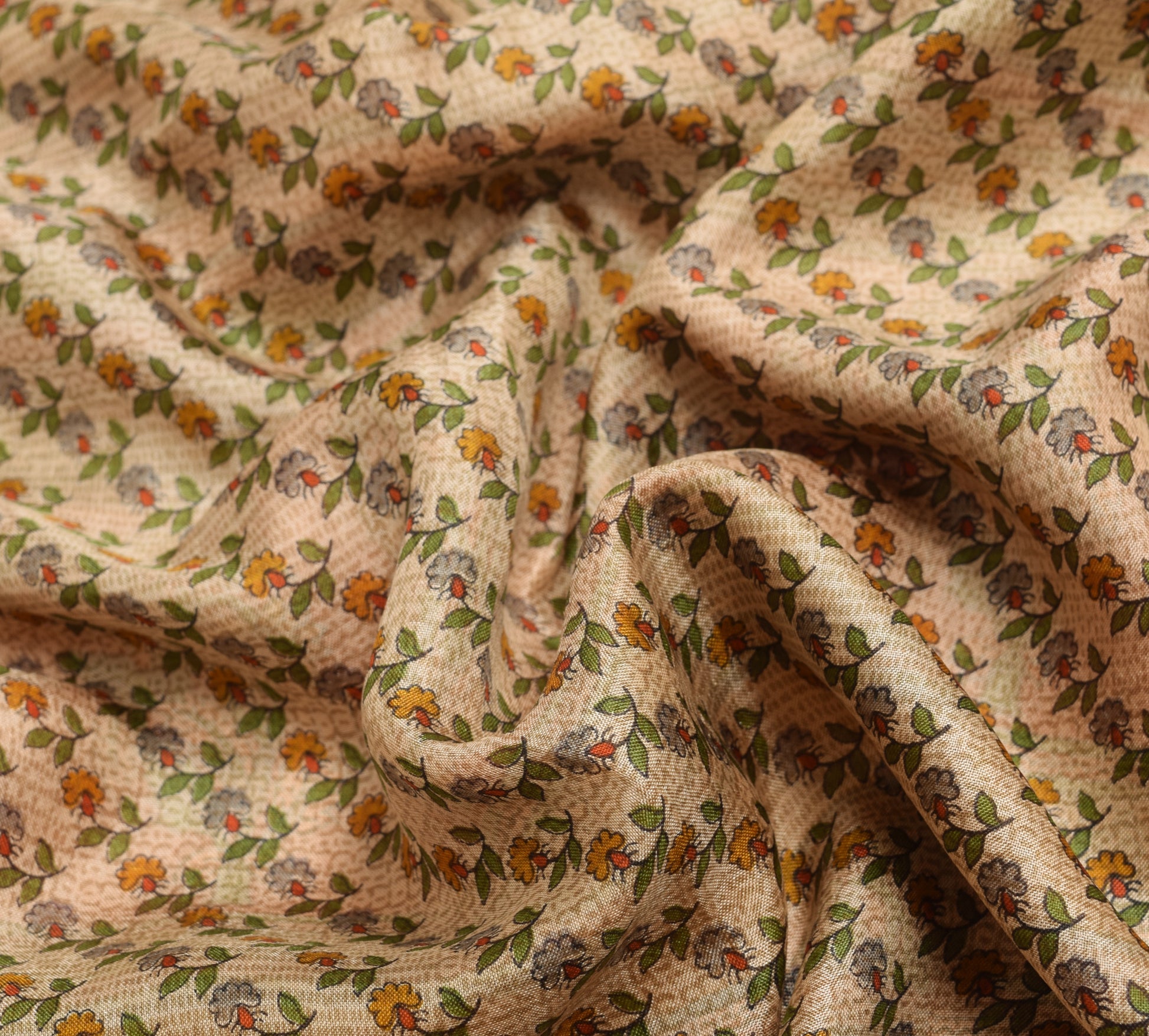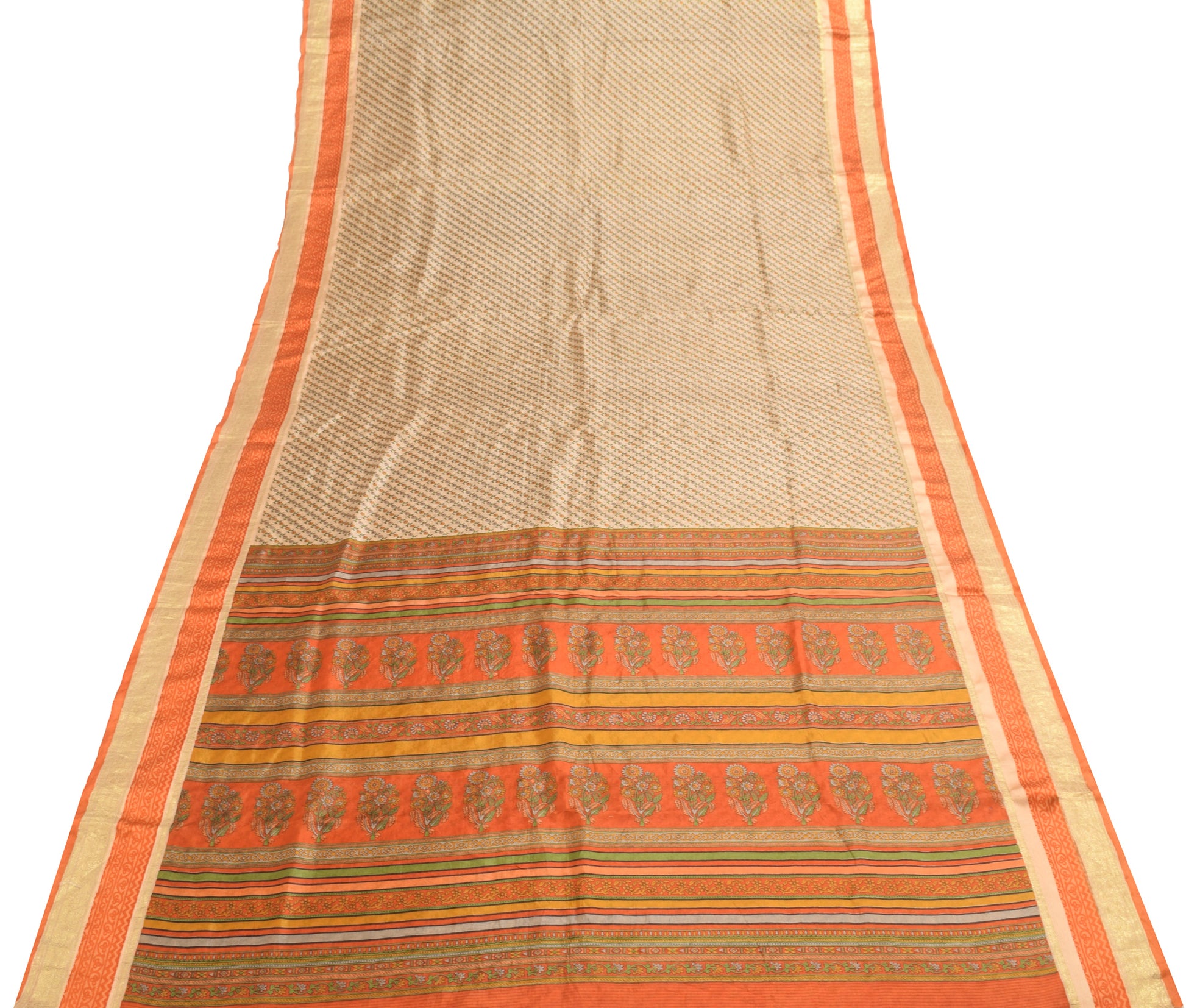 Sushila Vintage Cream Floral Saree 100% Pure Silk Printed Soft Craft Fabric