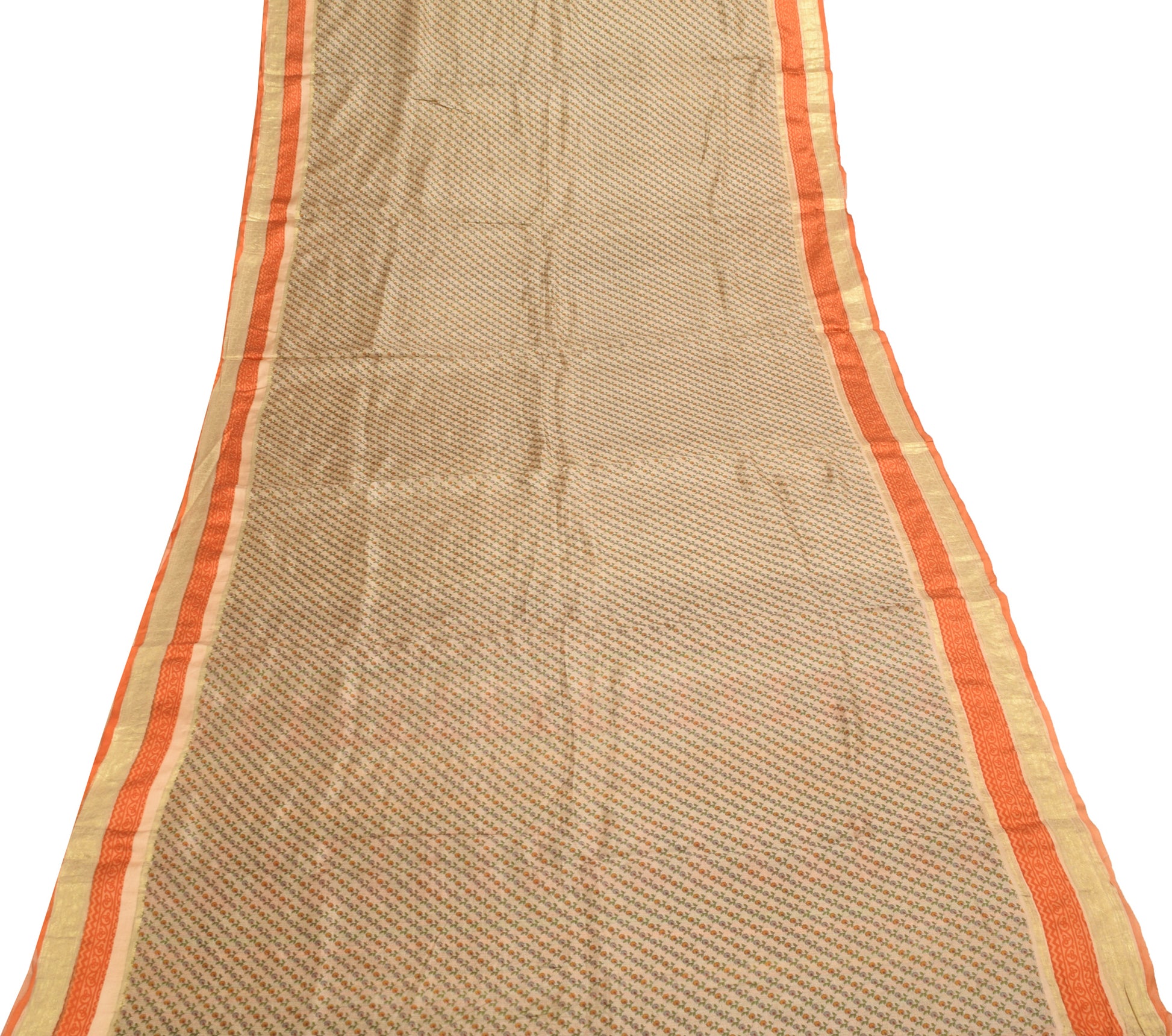 Make a lasting impression with this exquisite cream 100% pure silk saree, known for its floral patterns and delicate printed work. Crafted from pure, breathable 100% pure silk, this saree is known for its luxurious drape and timeless appeal. Measuring approximately 198 inch in length and 43 inch in width, it offers versatile styling possibilities, whether worn traditionally or repurposed for creative projects. With a weight of 220 grams (actual product weight), it drapes beautifully, making it an ideal choice for those who appreciate the charm of vintage textiles.