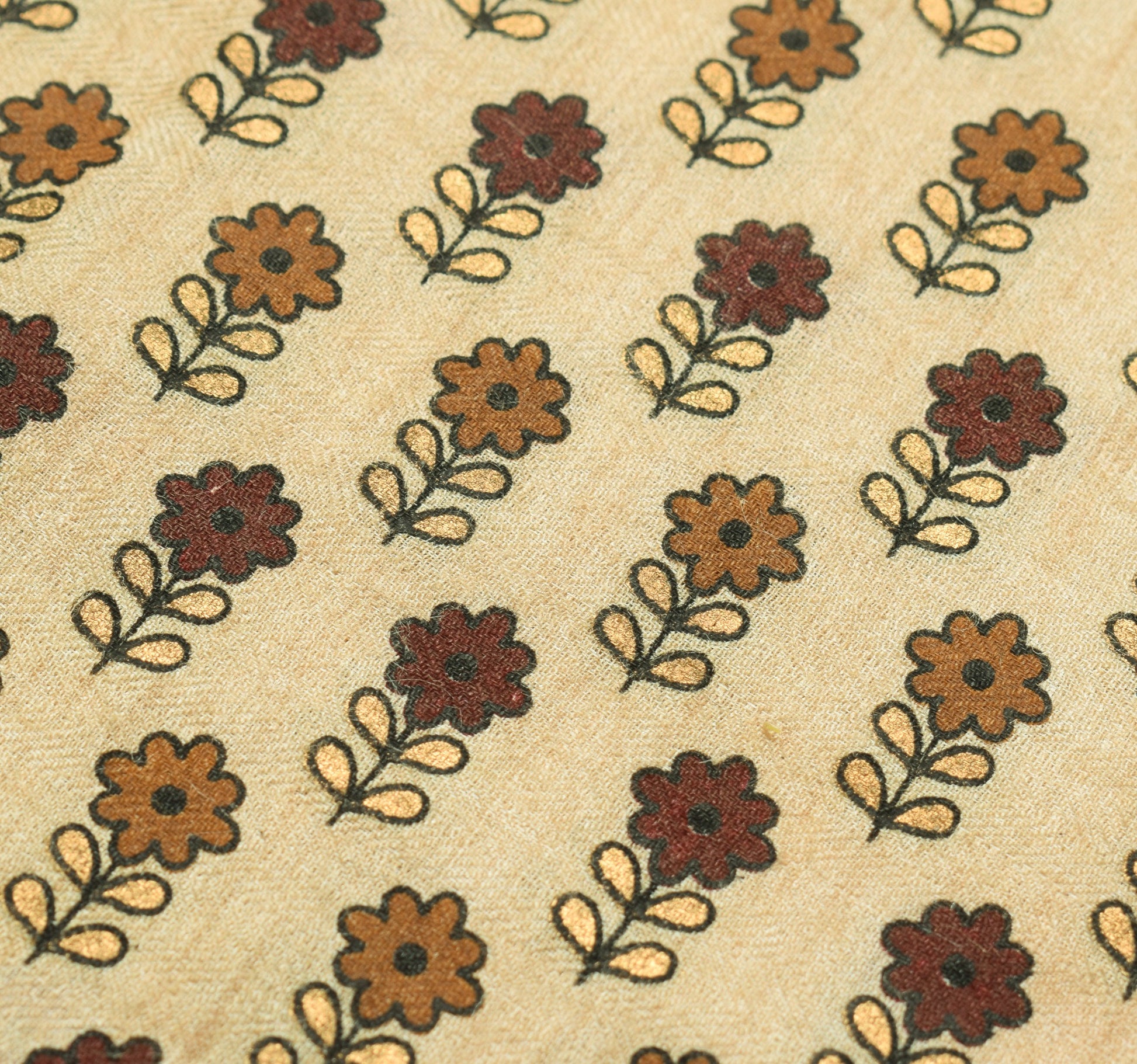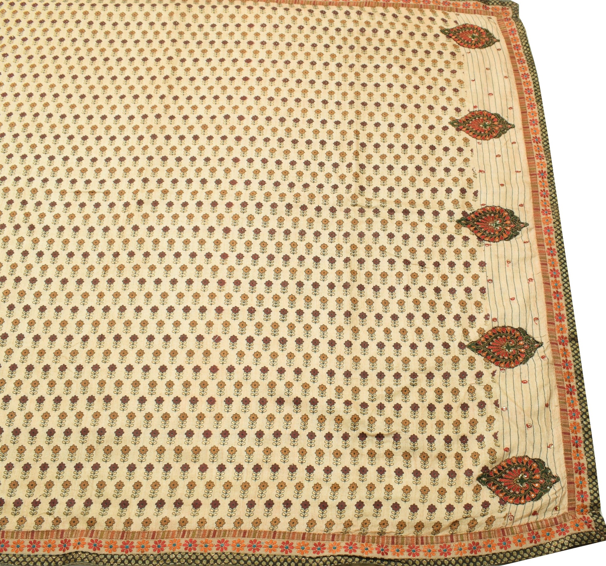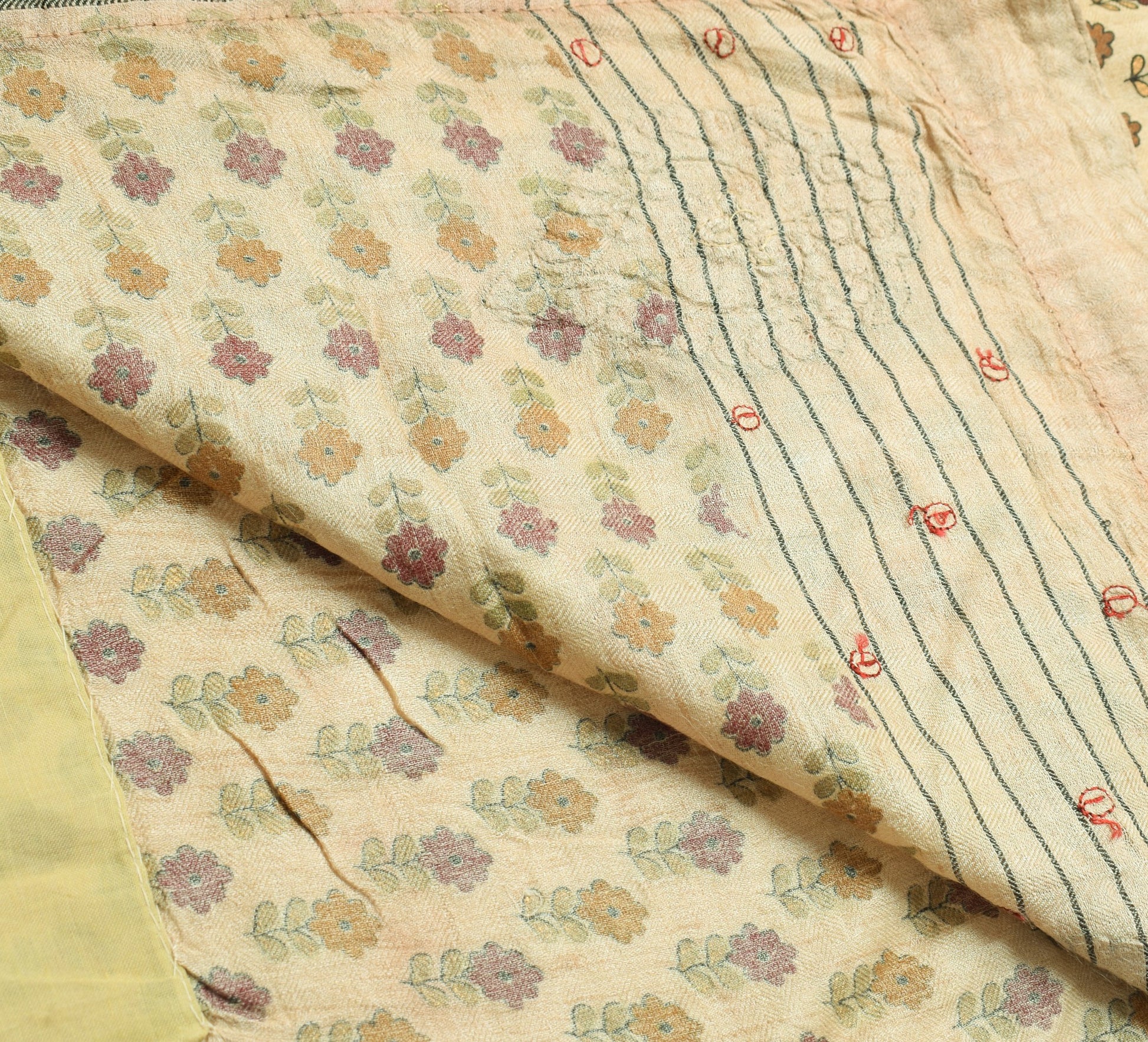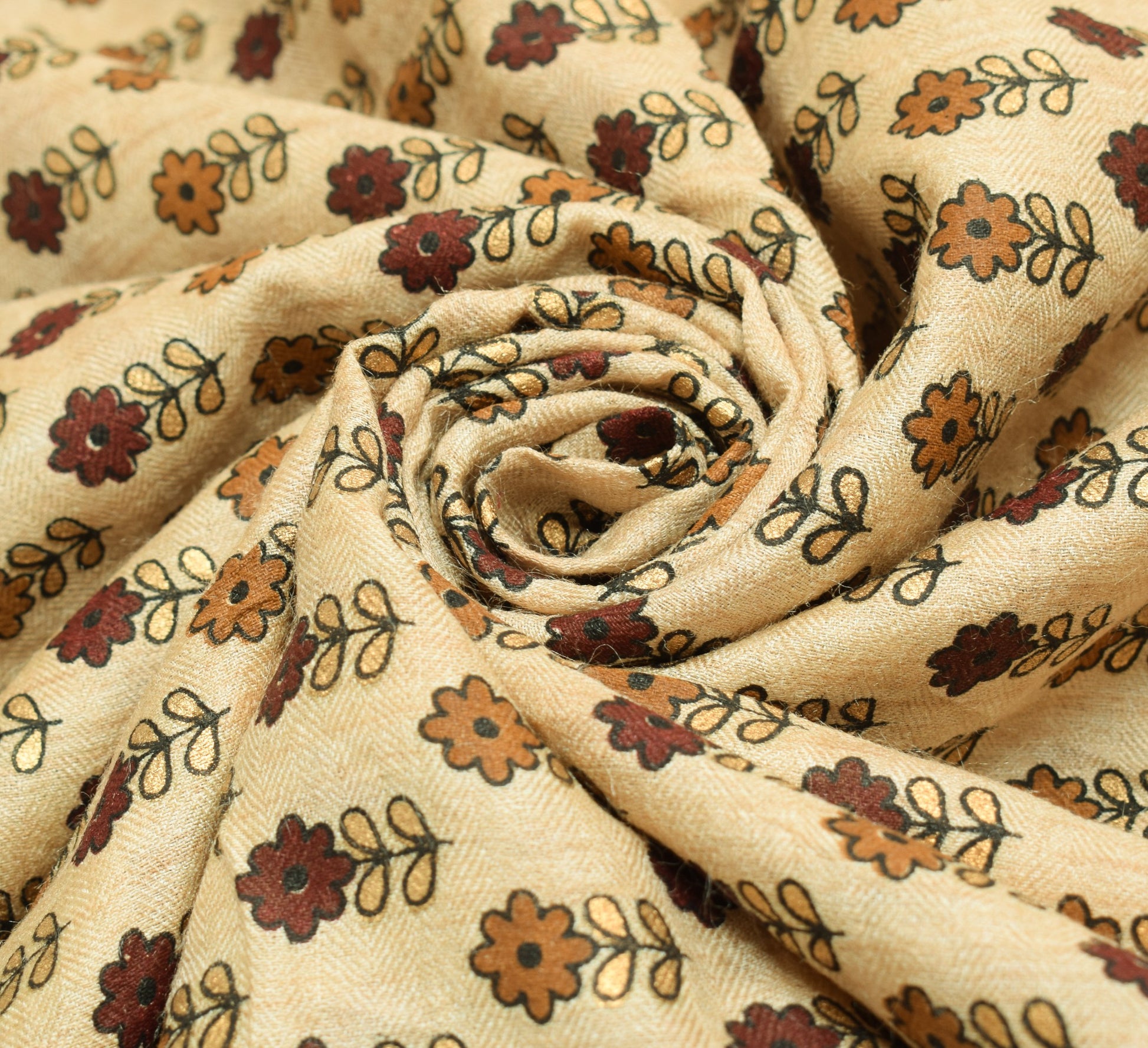 Sushila Vintage Cream Floral Saree 100%Pure Woolen Printed 5YD Sari Craft Fabric
