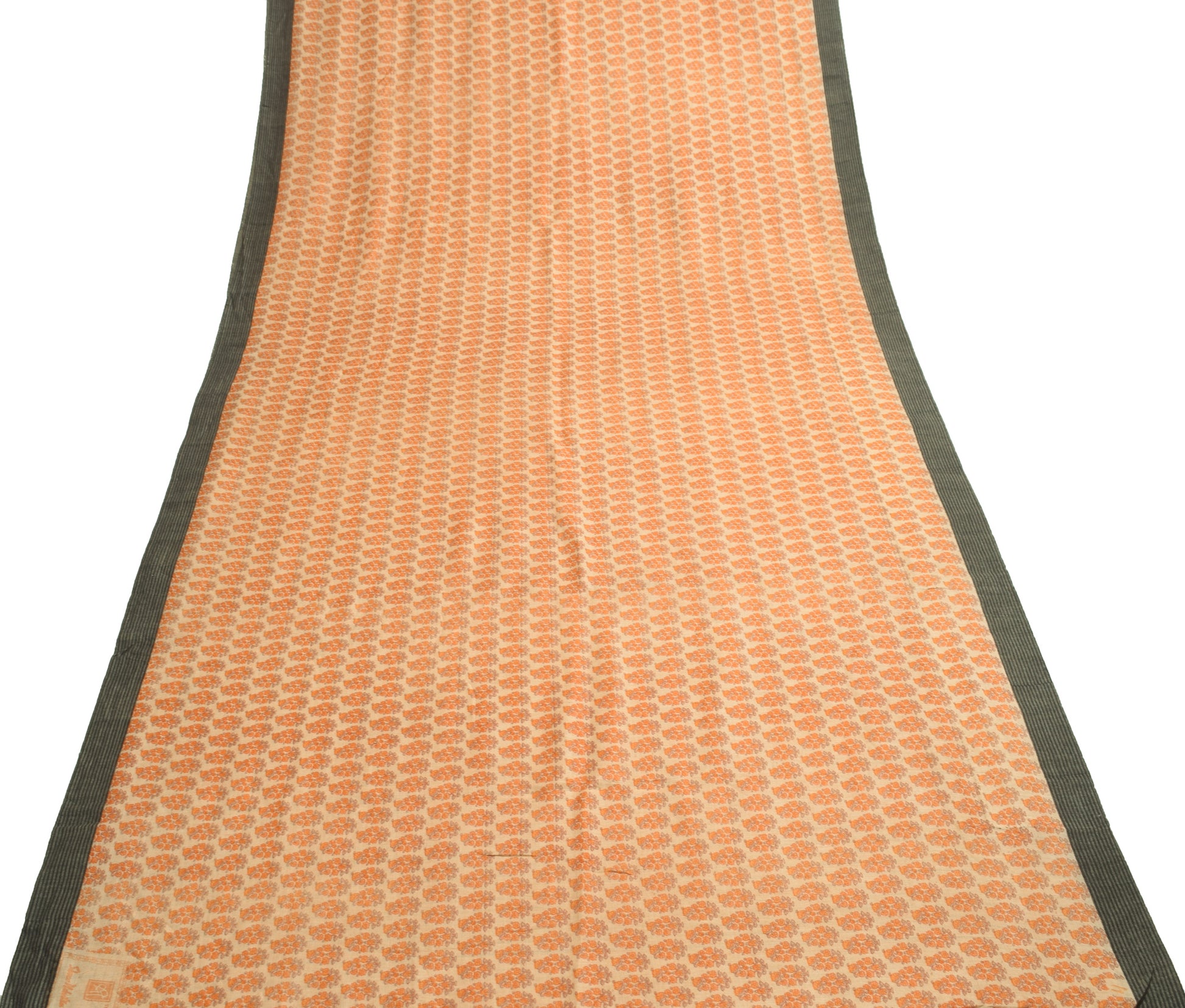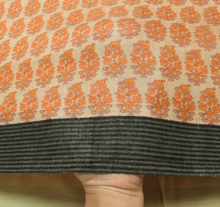 Sushila Vintage Cream Floral Saree 100% Pure Woolen Woven Soft Sari Craft Fabric