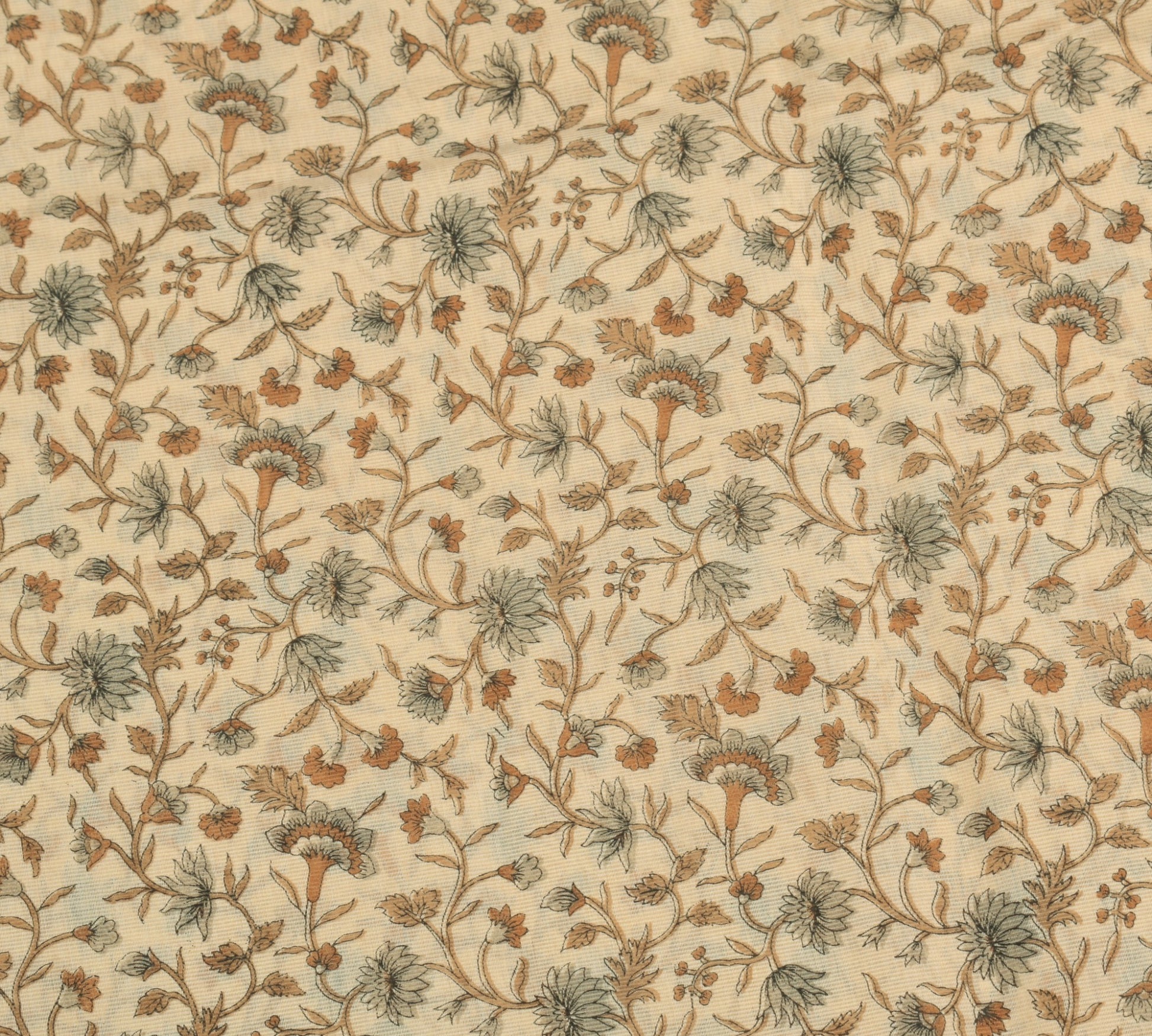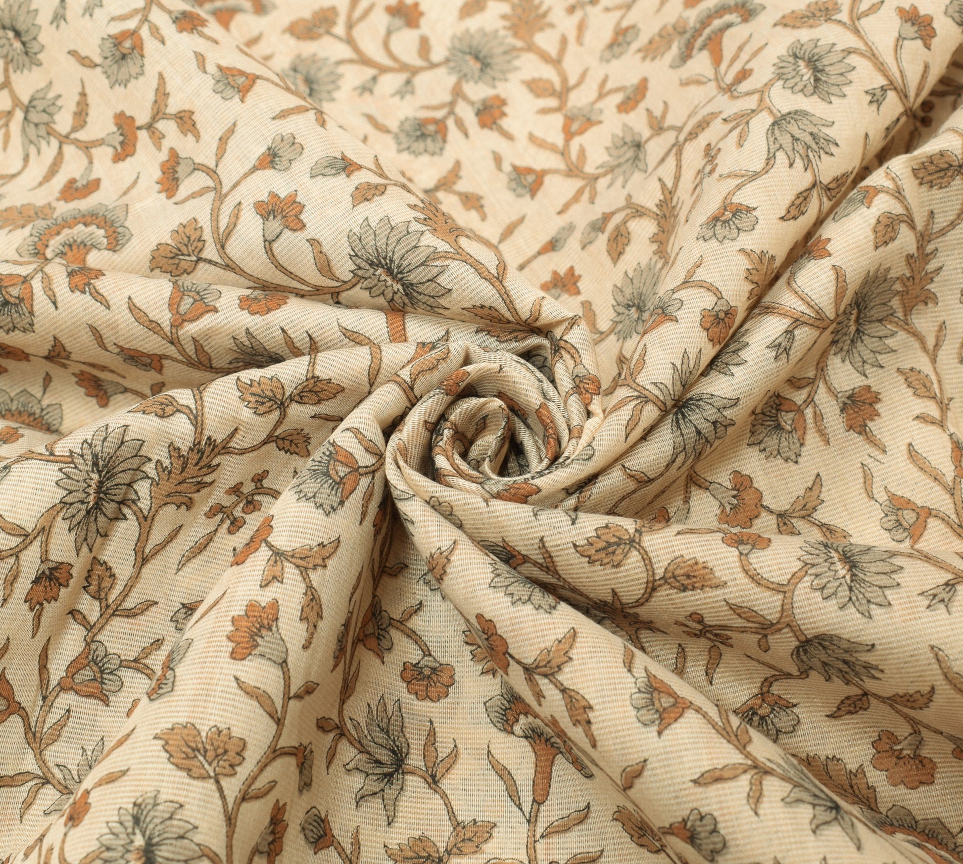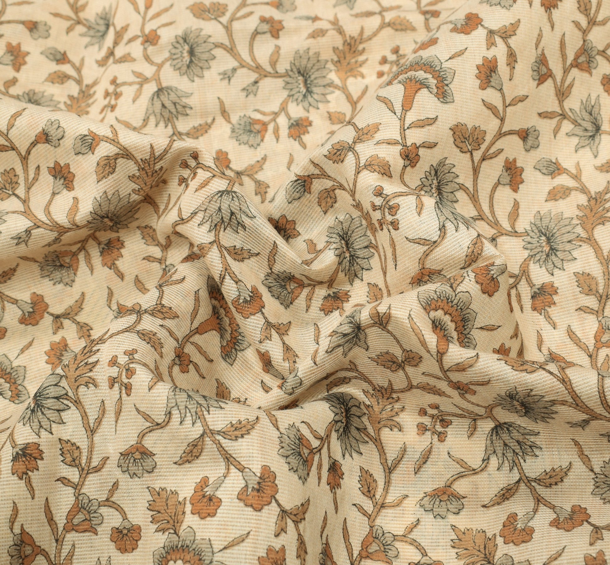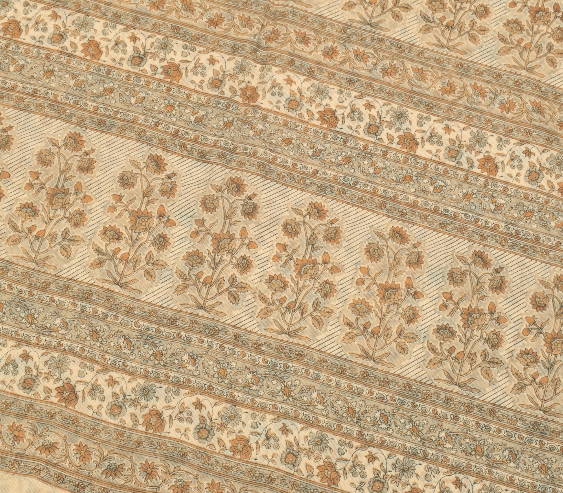 Sushila Vintage Cream Floral Saree Woven Border Art Cotton Printed Craft Fabric