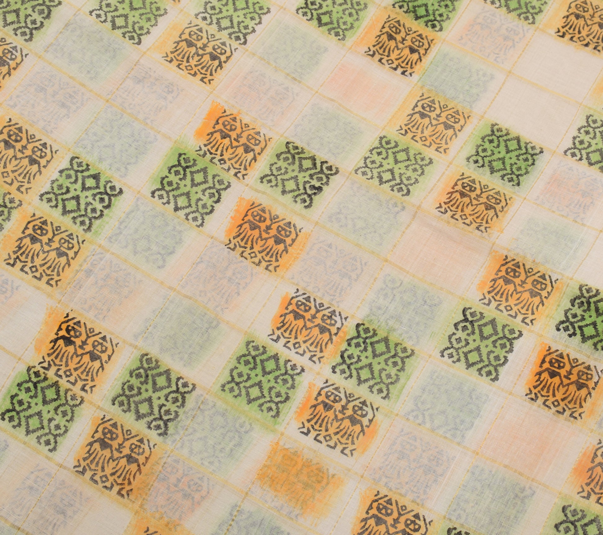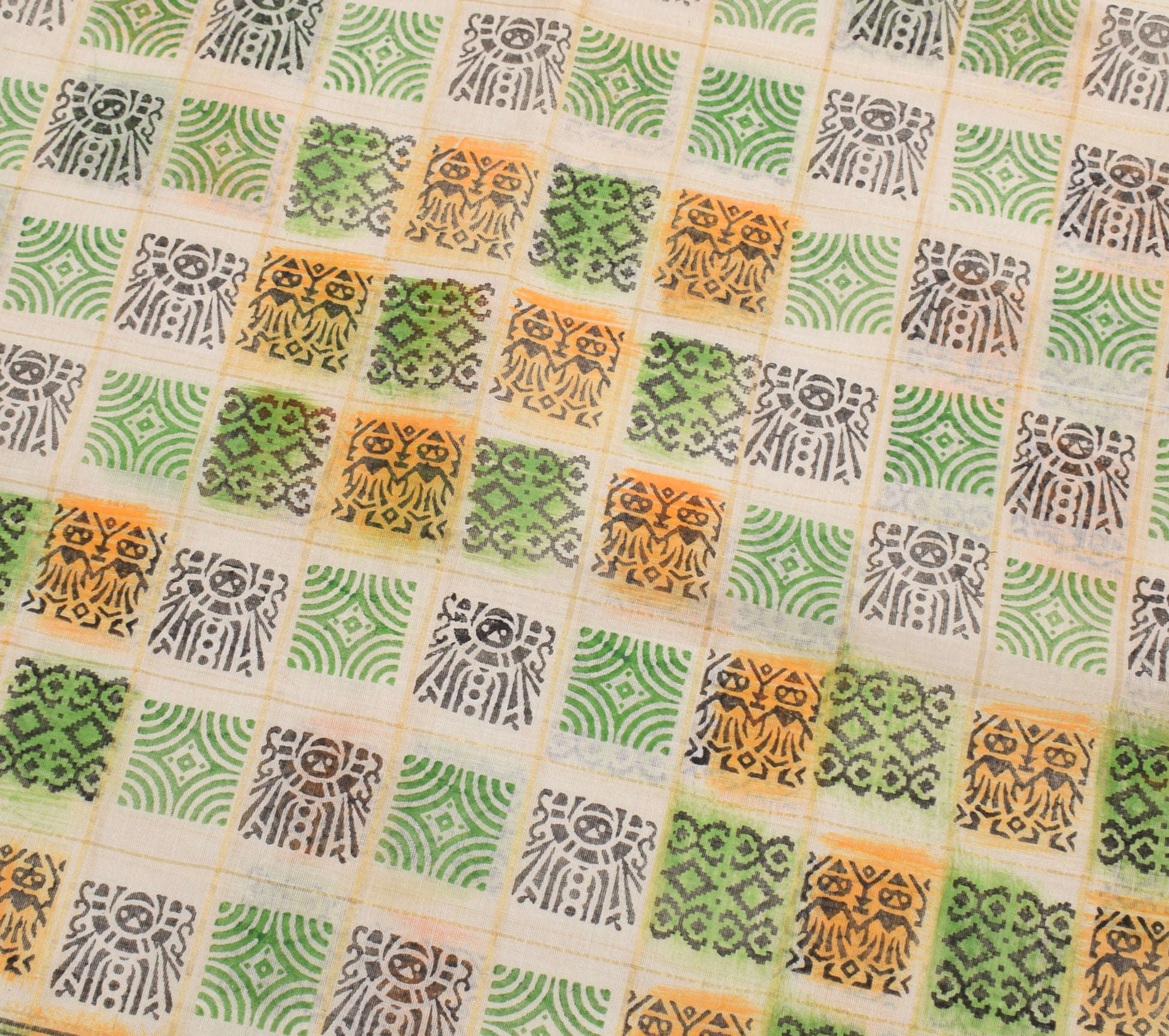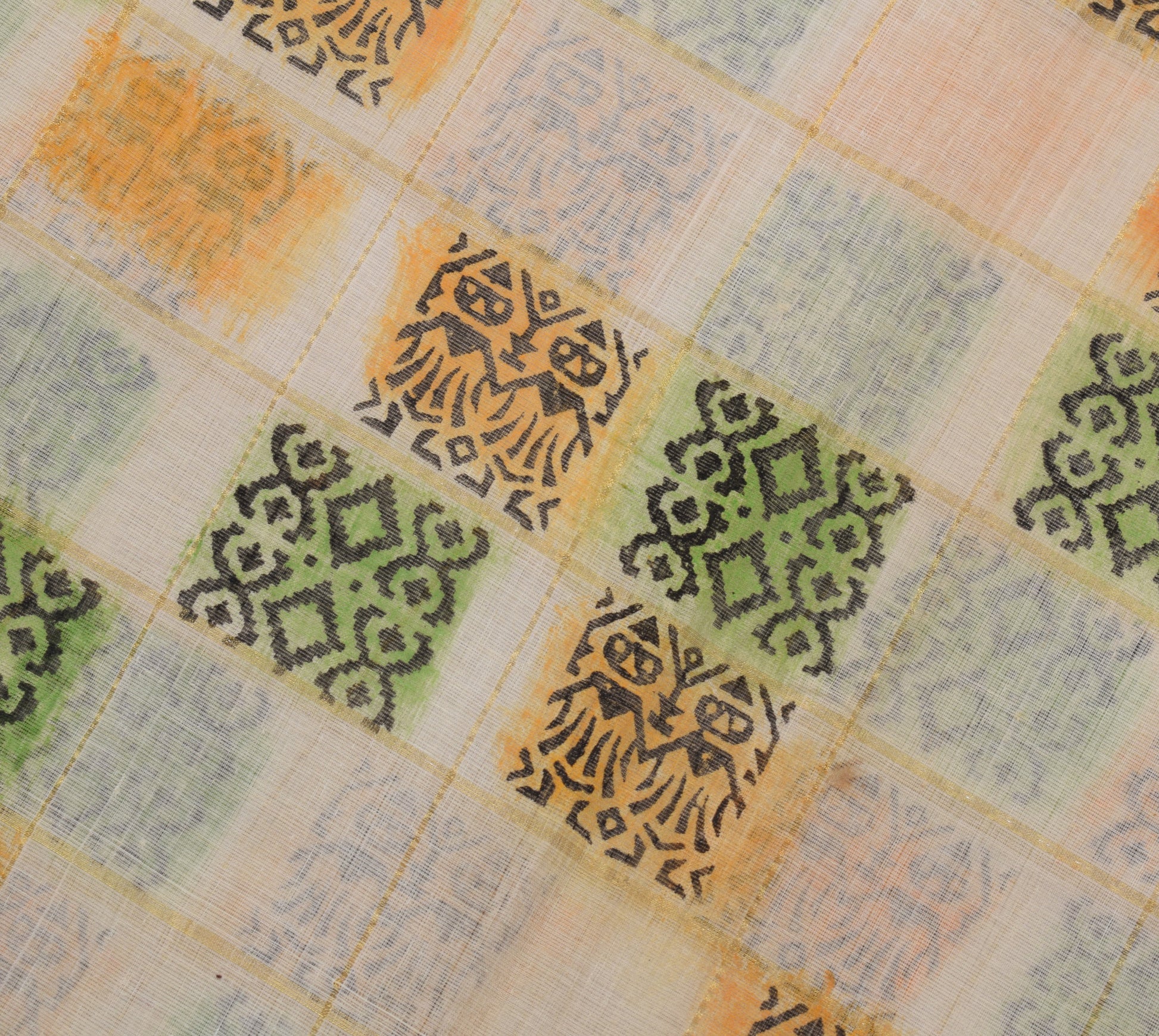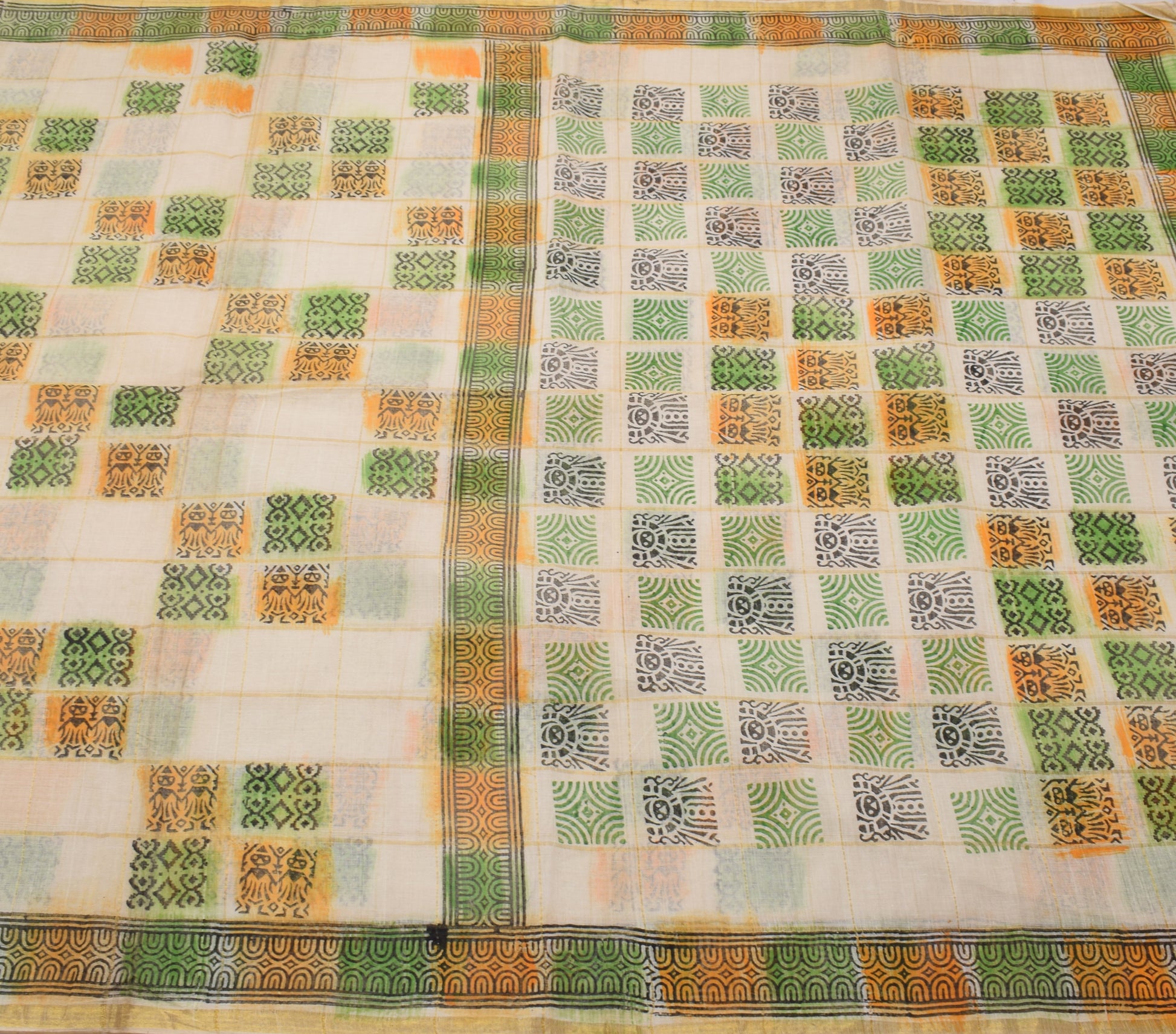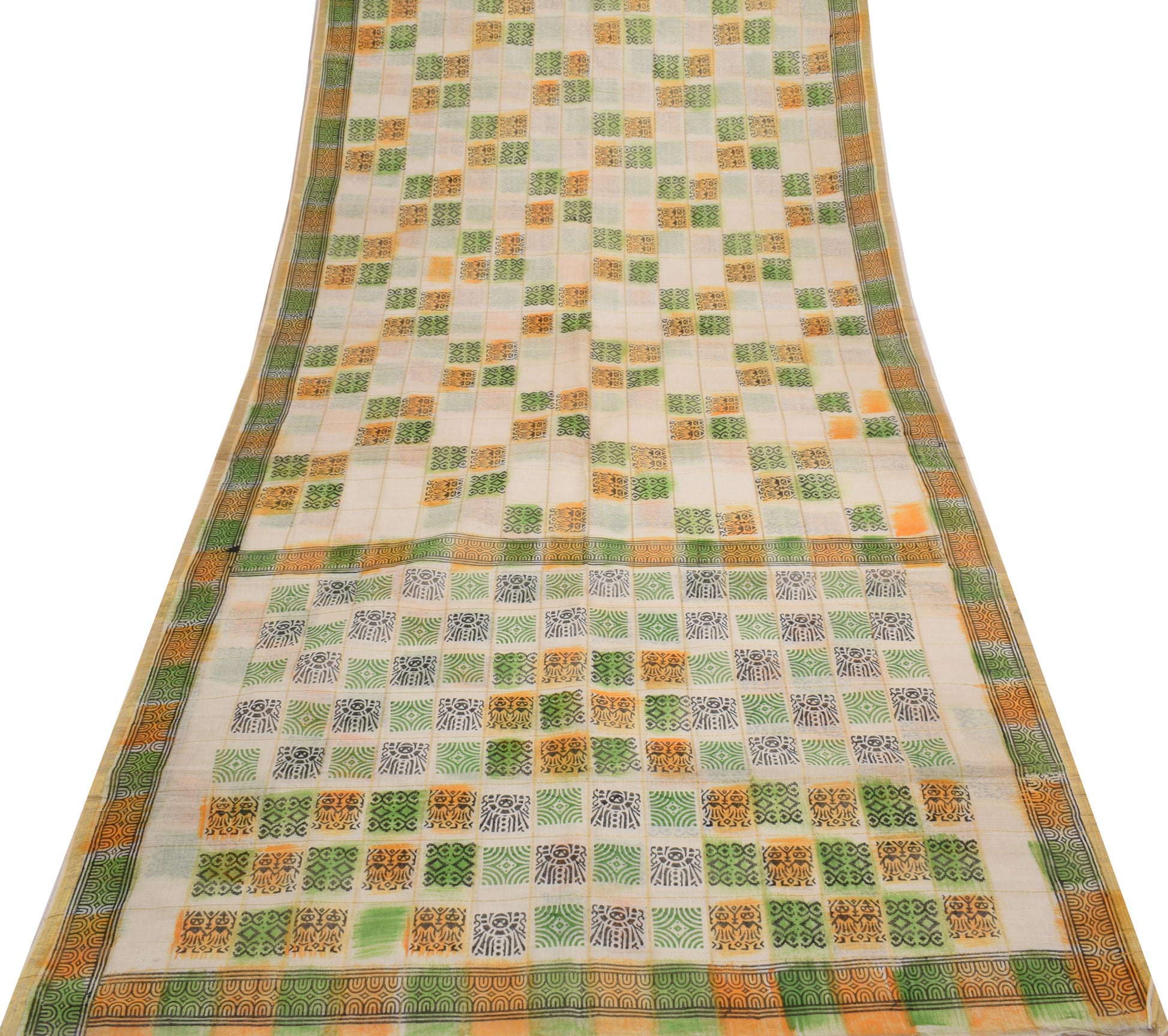 Sushila Vintage Cream Indian Saree 100% Pure Cotton Printed & Woven Craft Fabric