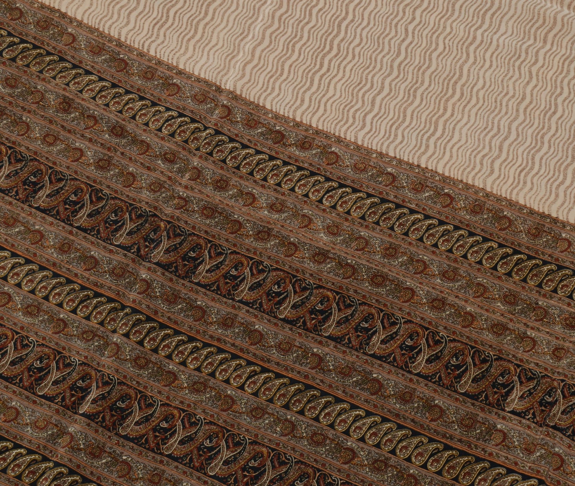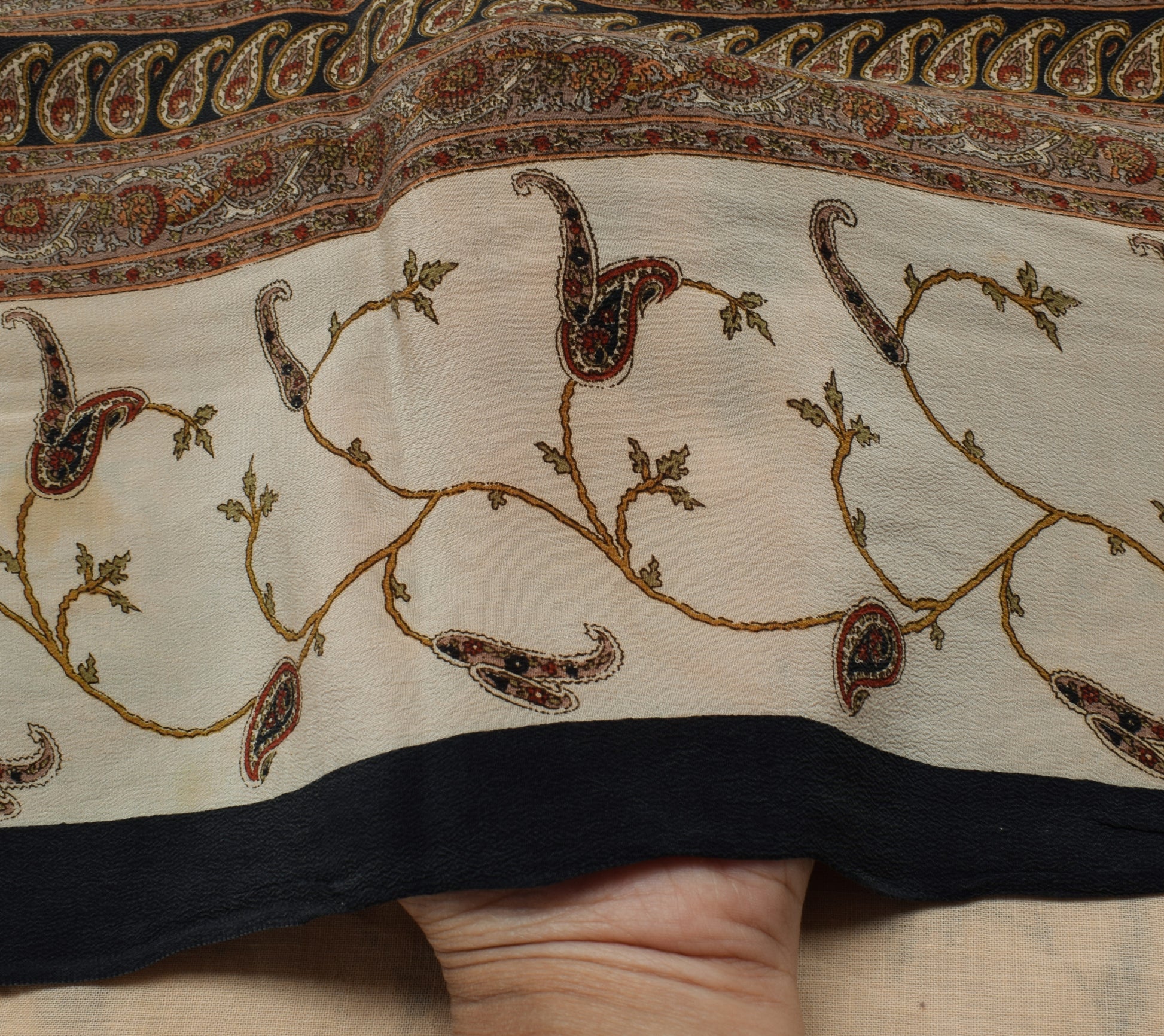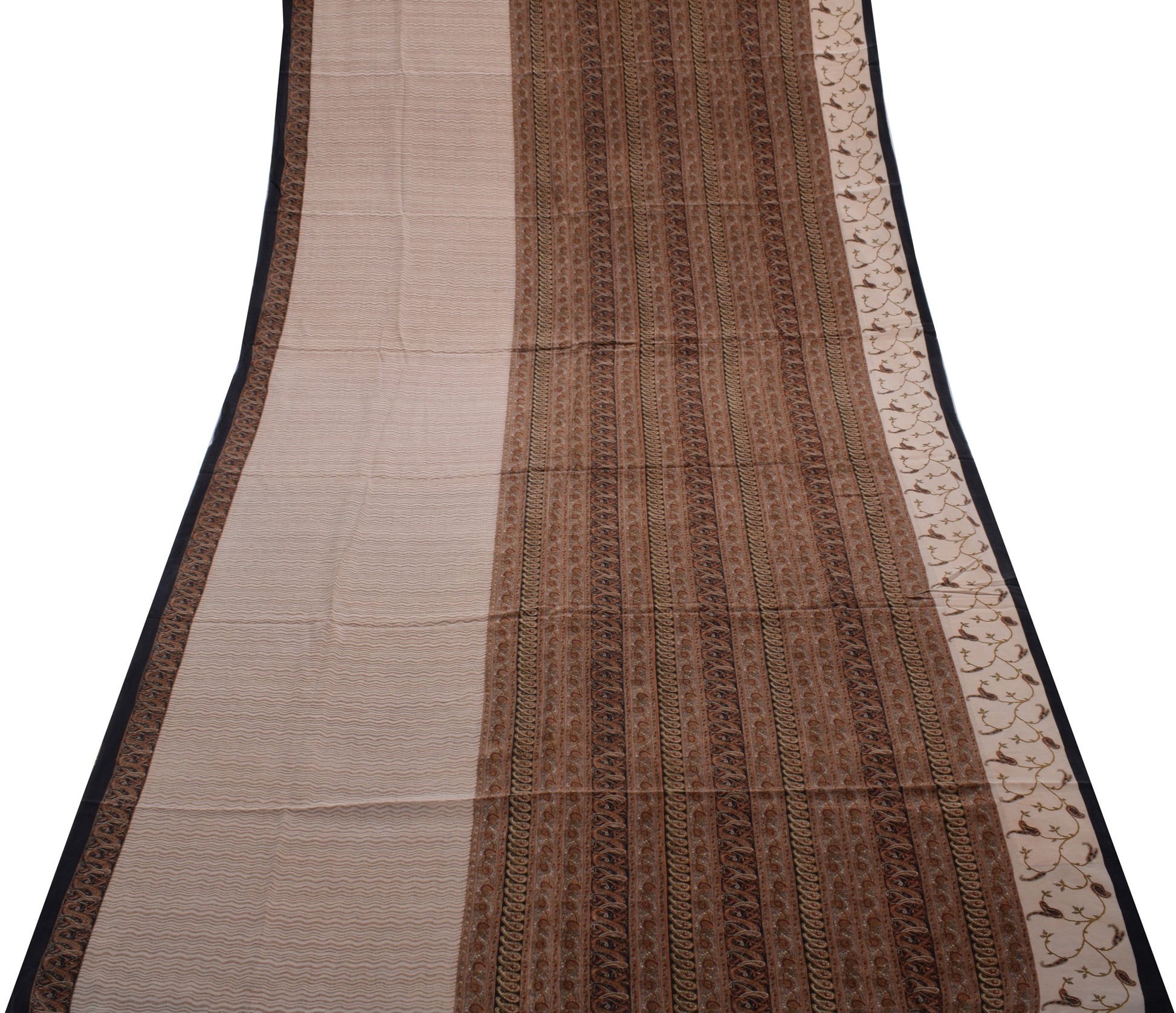 Sushila Vintage Cream Indian Saree 100% Pure Crepe Silk Printed Soft Fabric