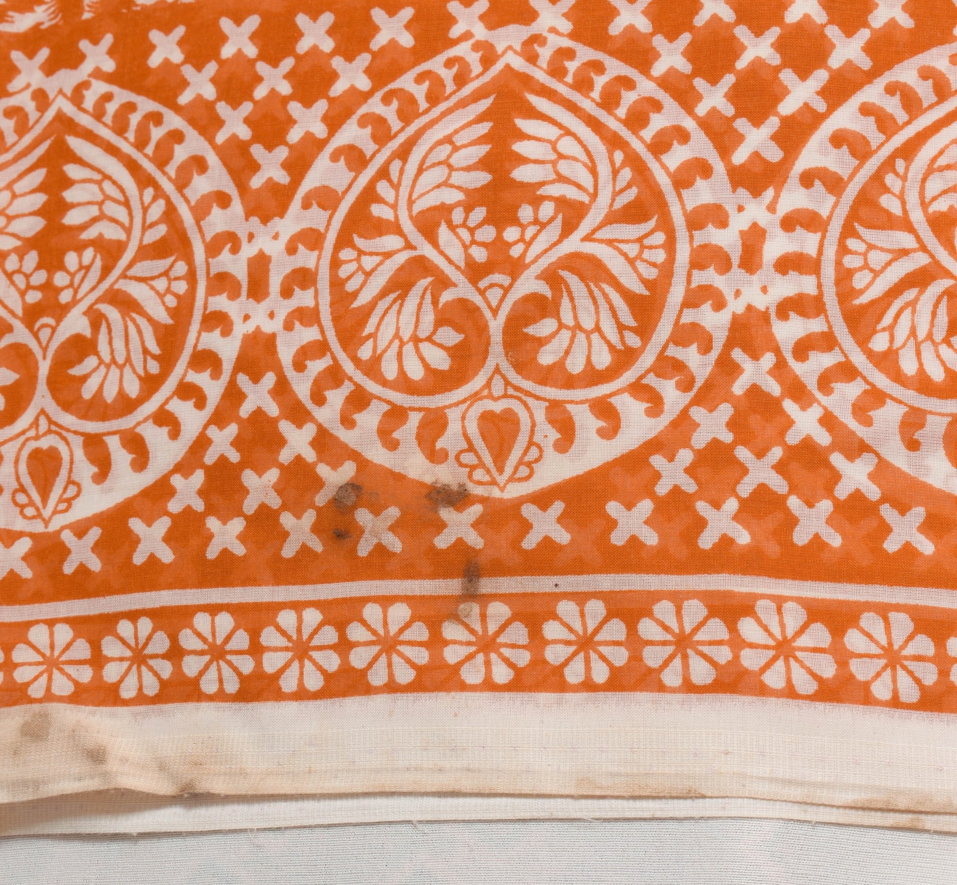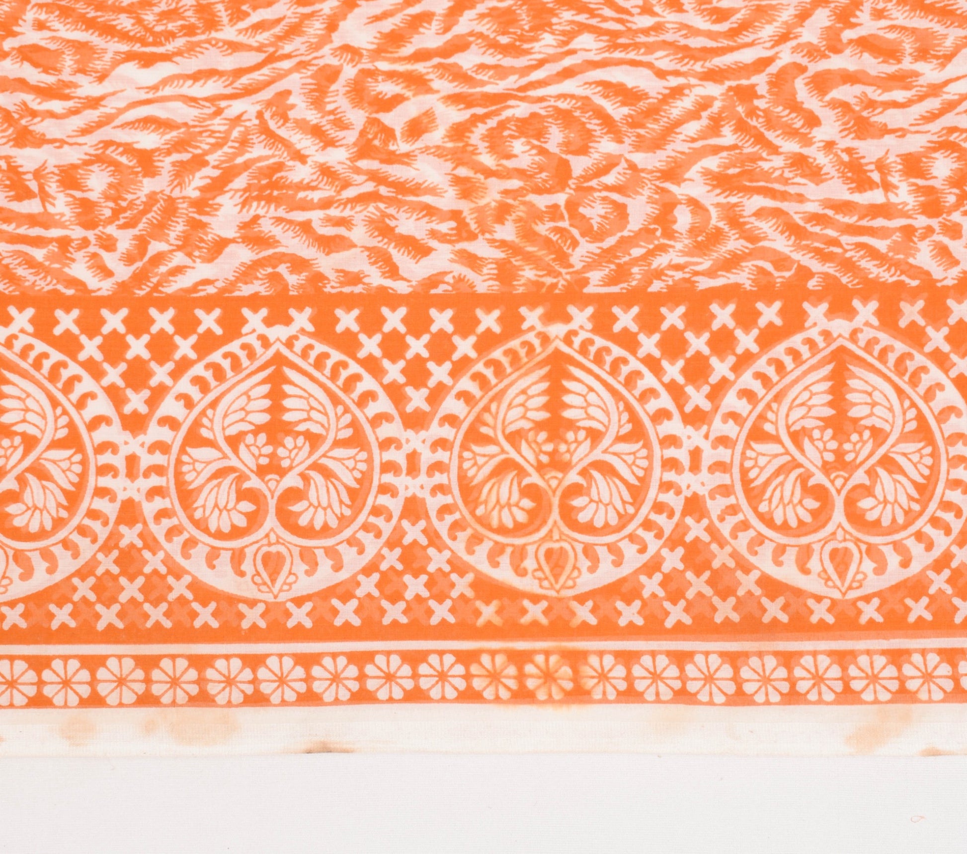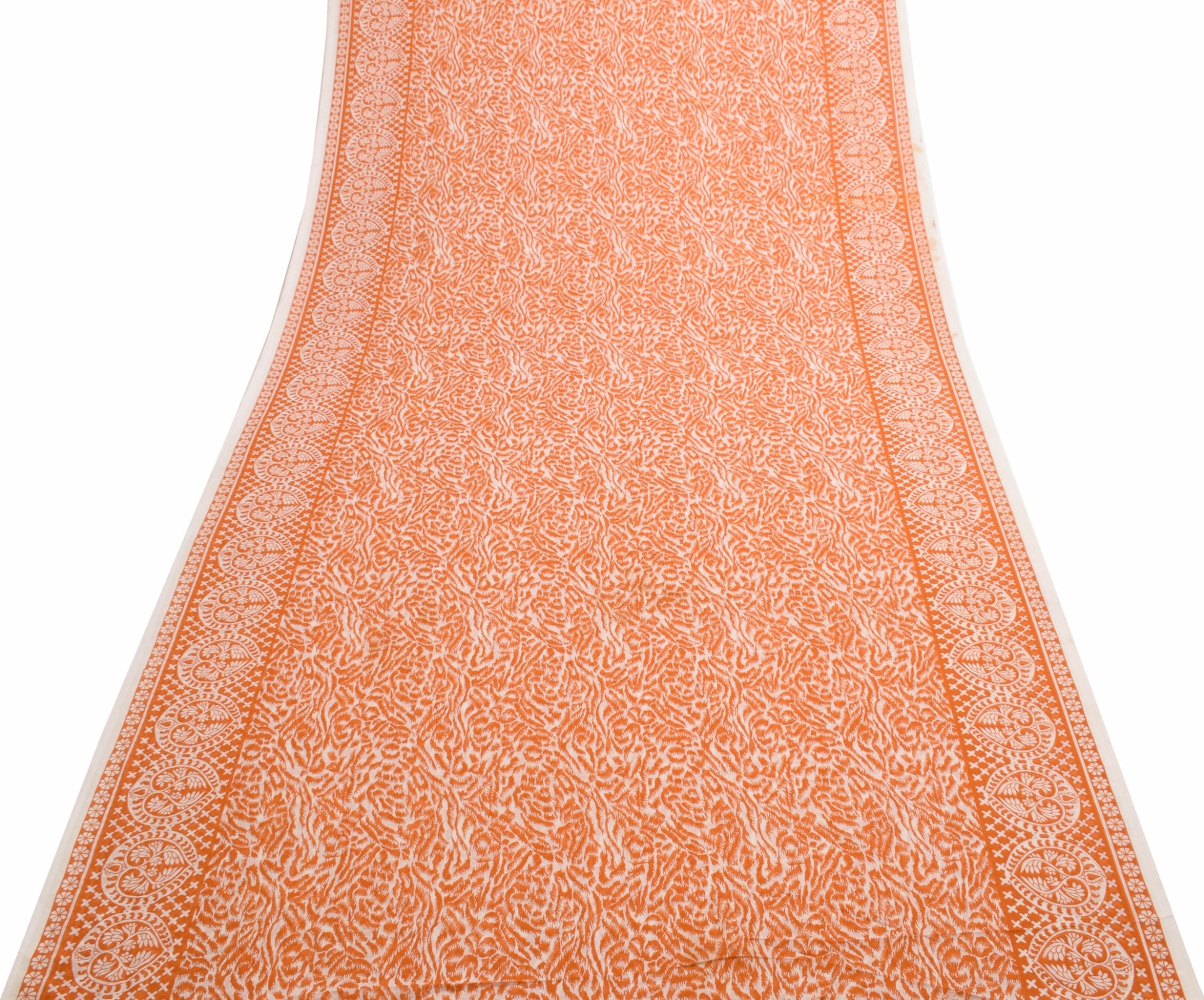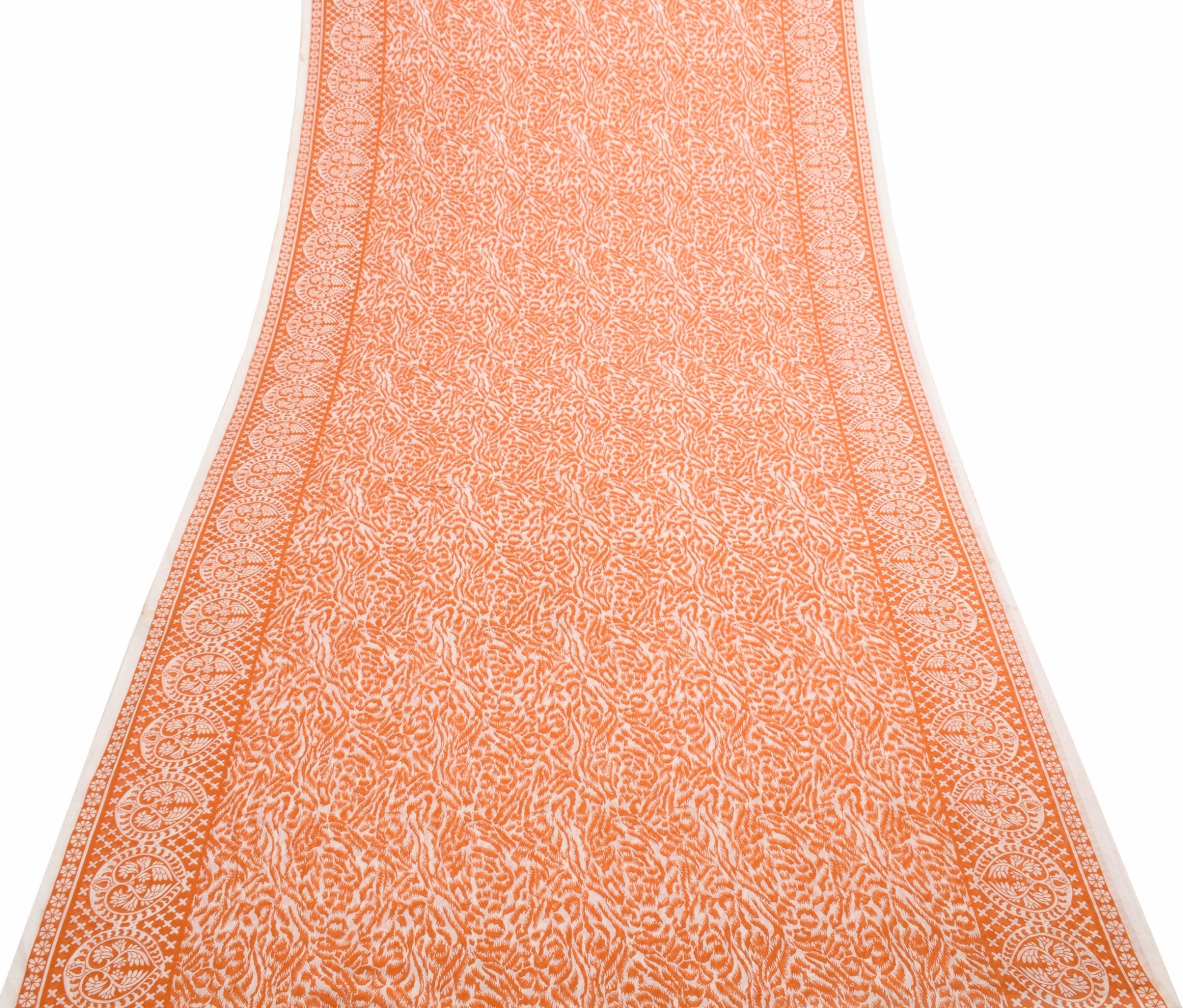 Sushila Vintage Cream & Orange Saree 100% Pure Cotton Printed Soft Craft Fabric