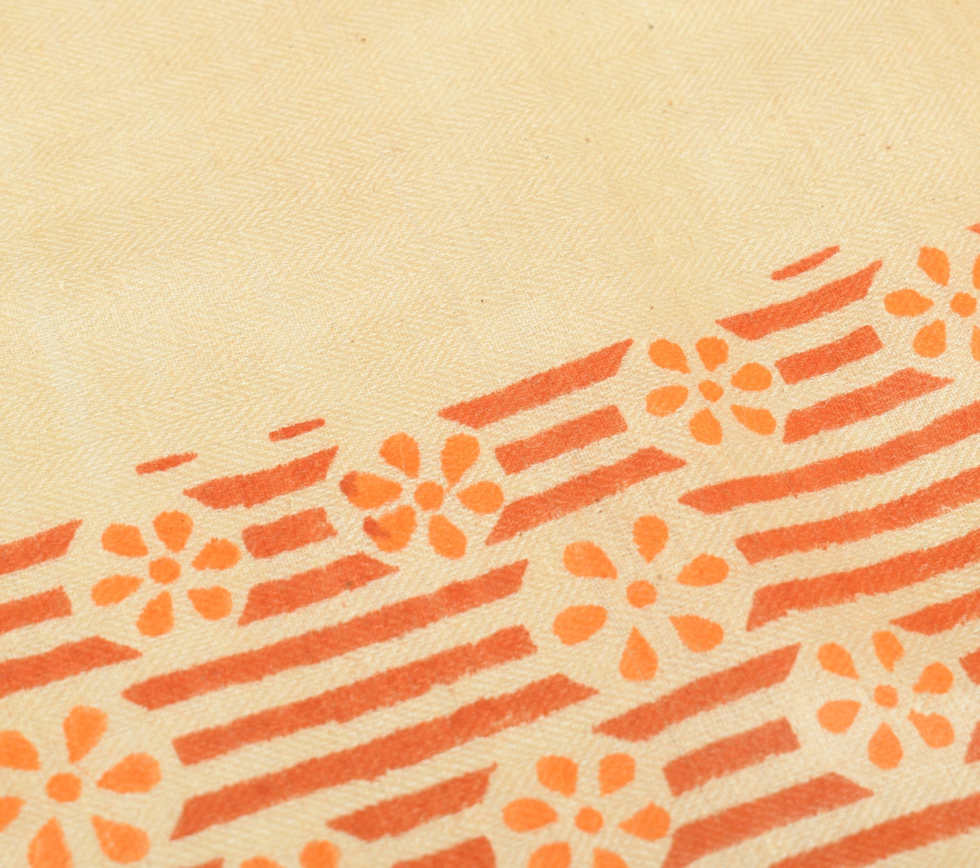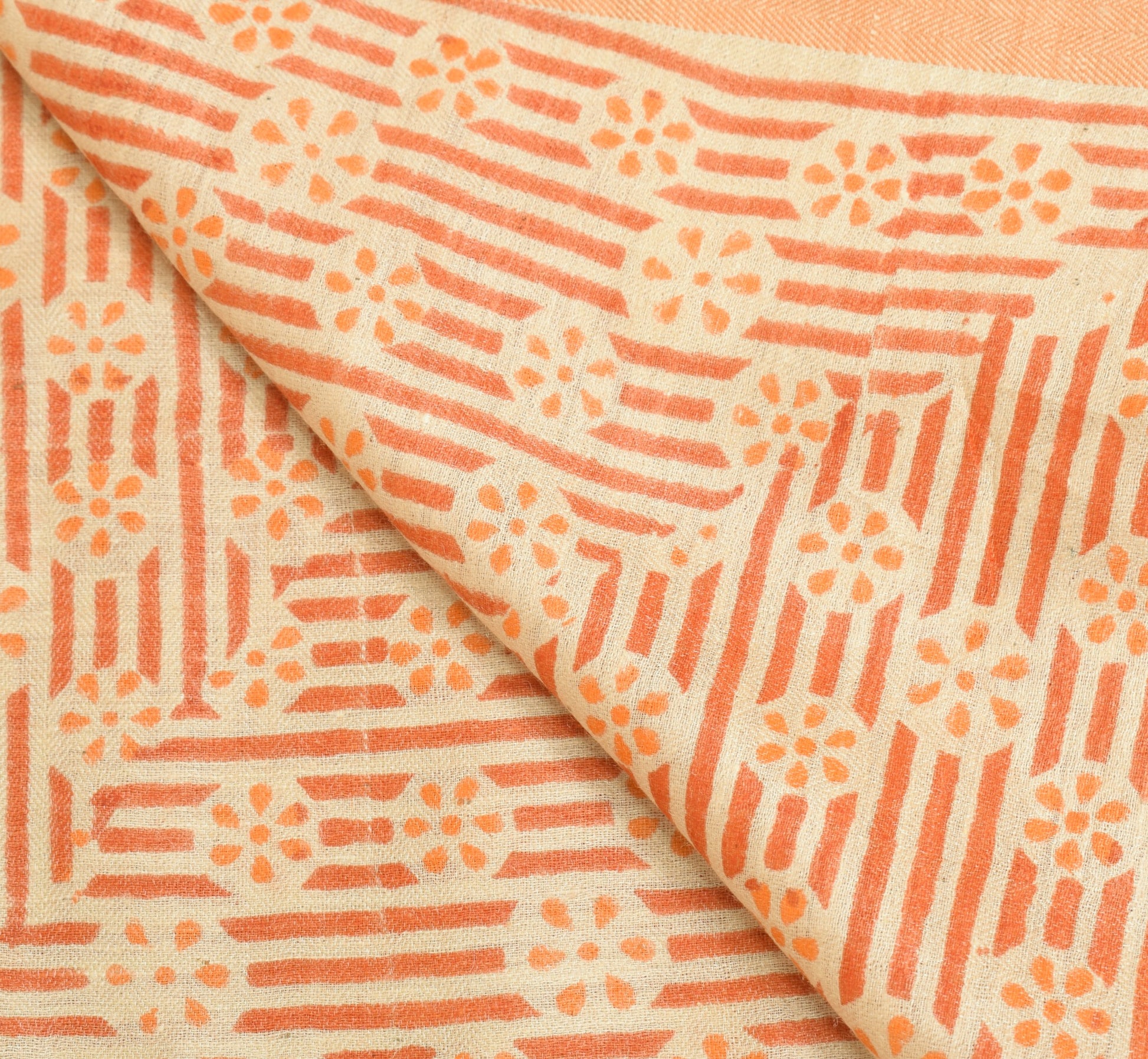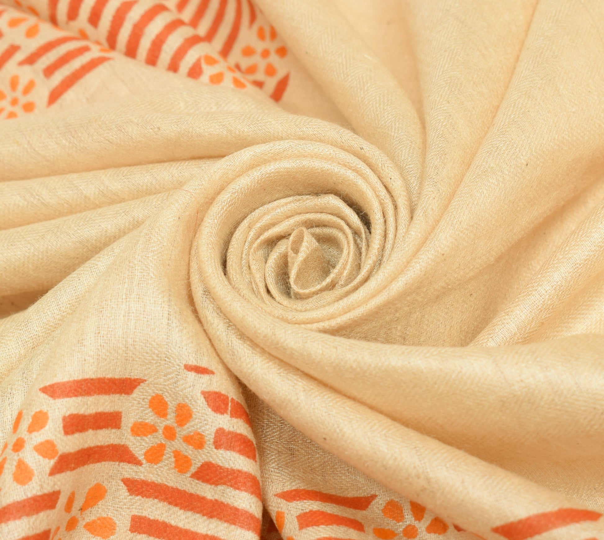 Sushila Vintage Cream Pure Woolen Dupatta Hand Block Printed Indian Long Stole