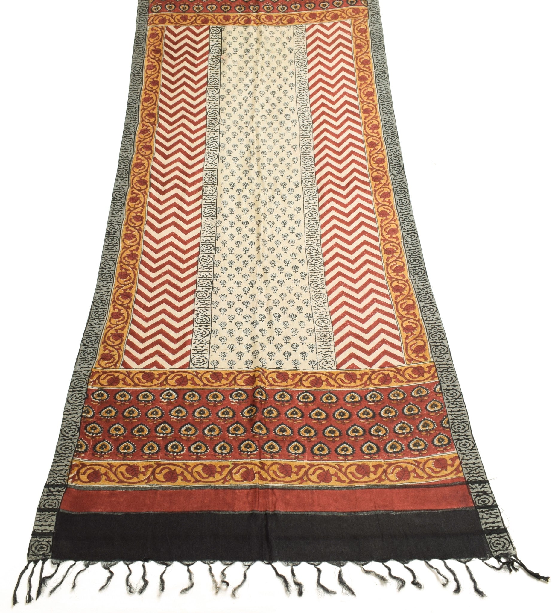 Sushila Vintage Cream Pure Woolen Dupatta Hand Block Printed Soft Long Stole