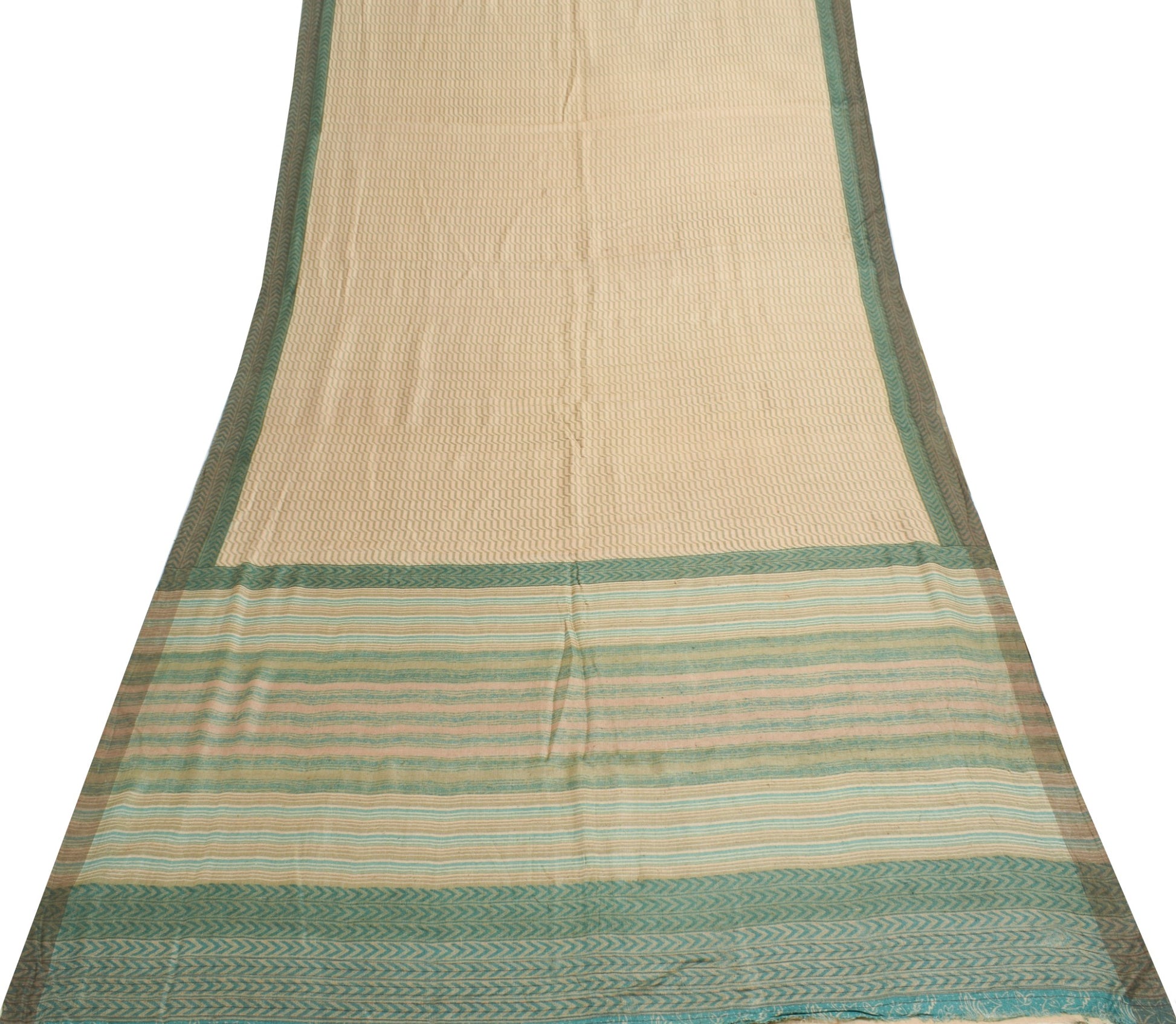 Sushila Vintage Cream Pure Woolen Saree Printed & Woven Soft Branded Sari Fabric