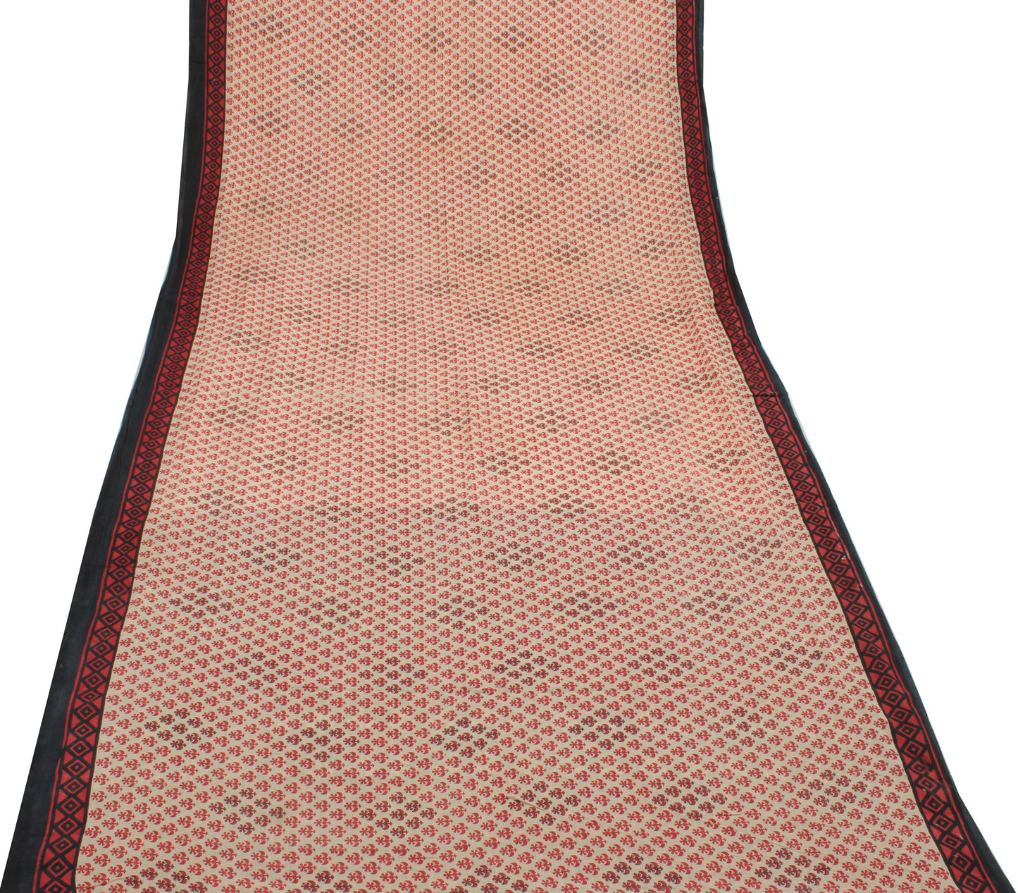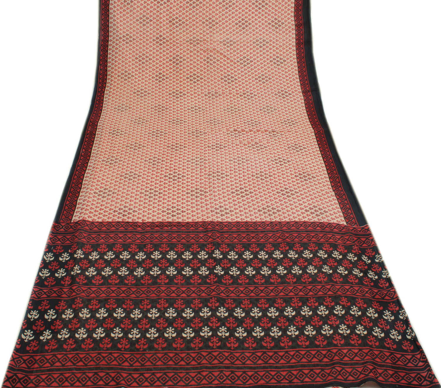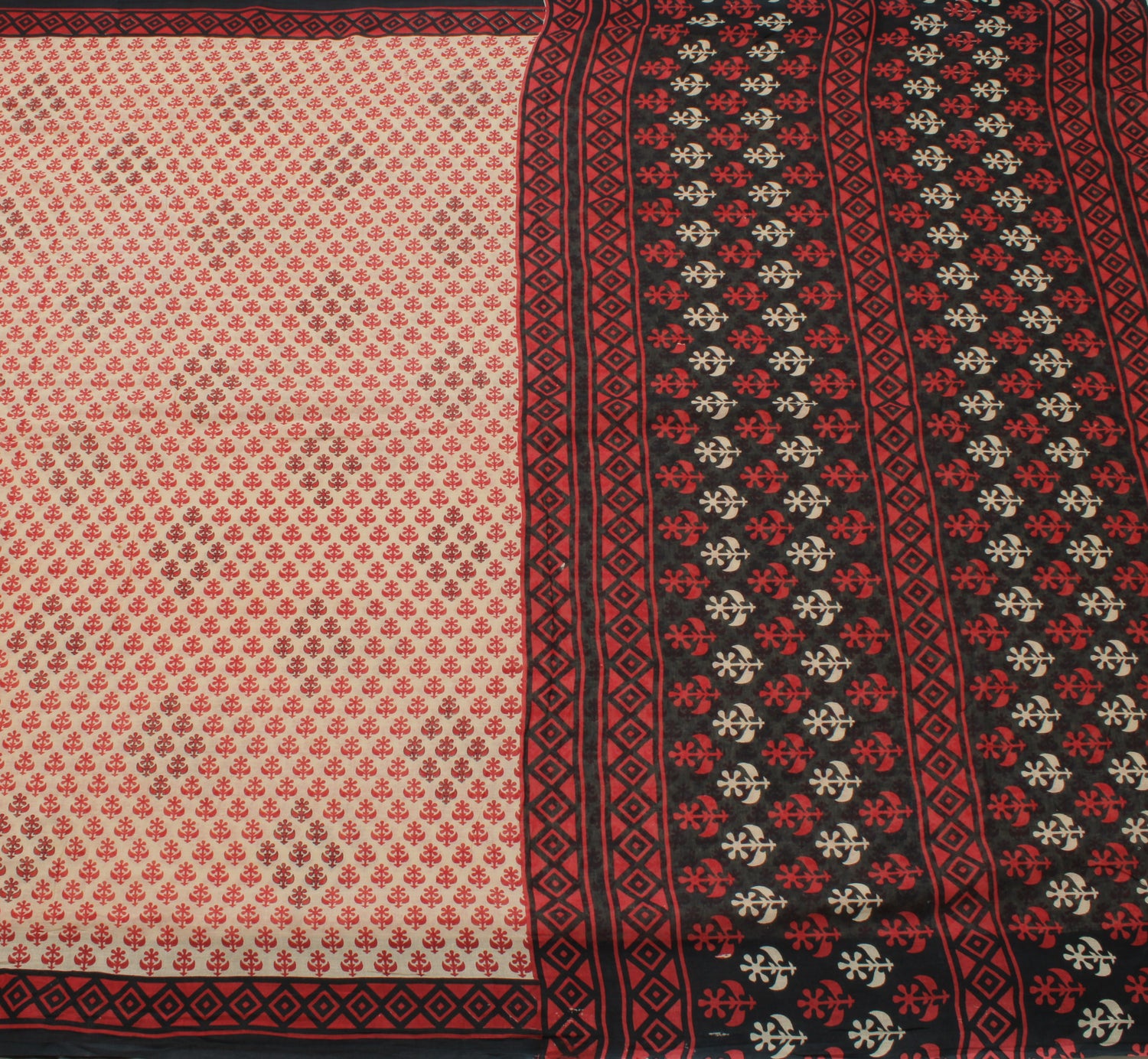 Sushila Vintage Cream Saree 100% Pure Cotton Printed Floral Soft Craft Fabric