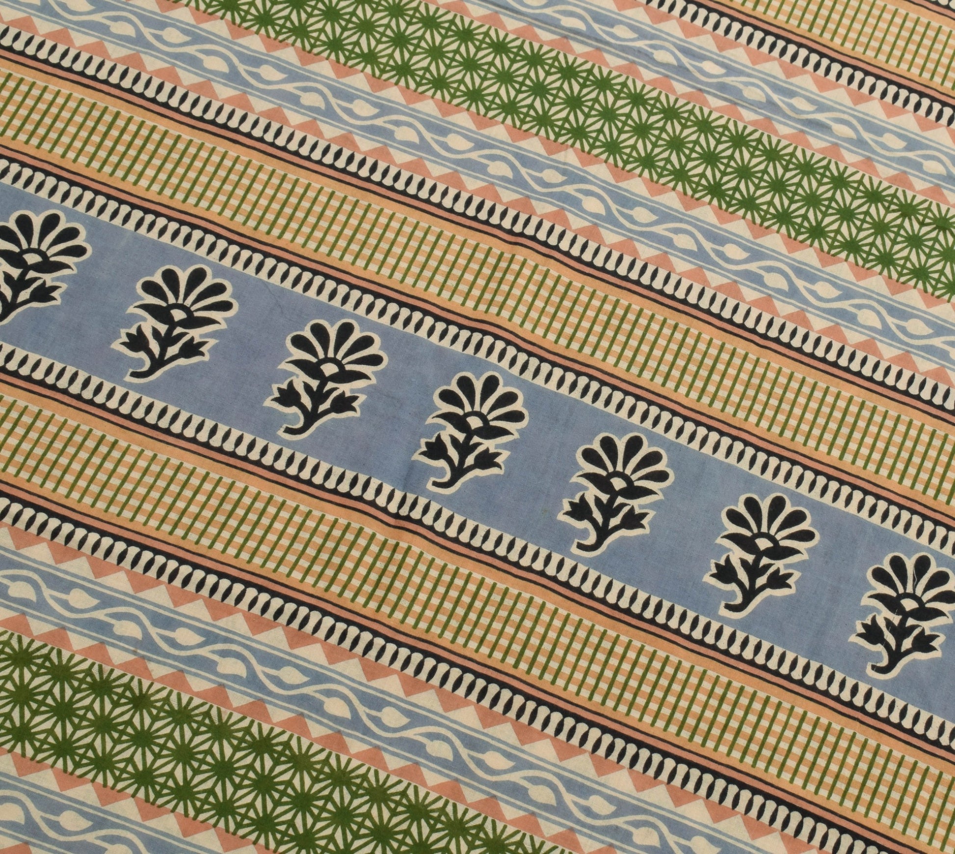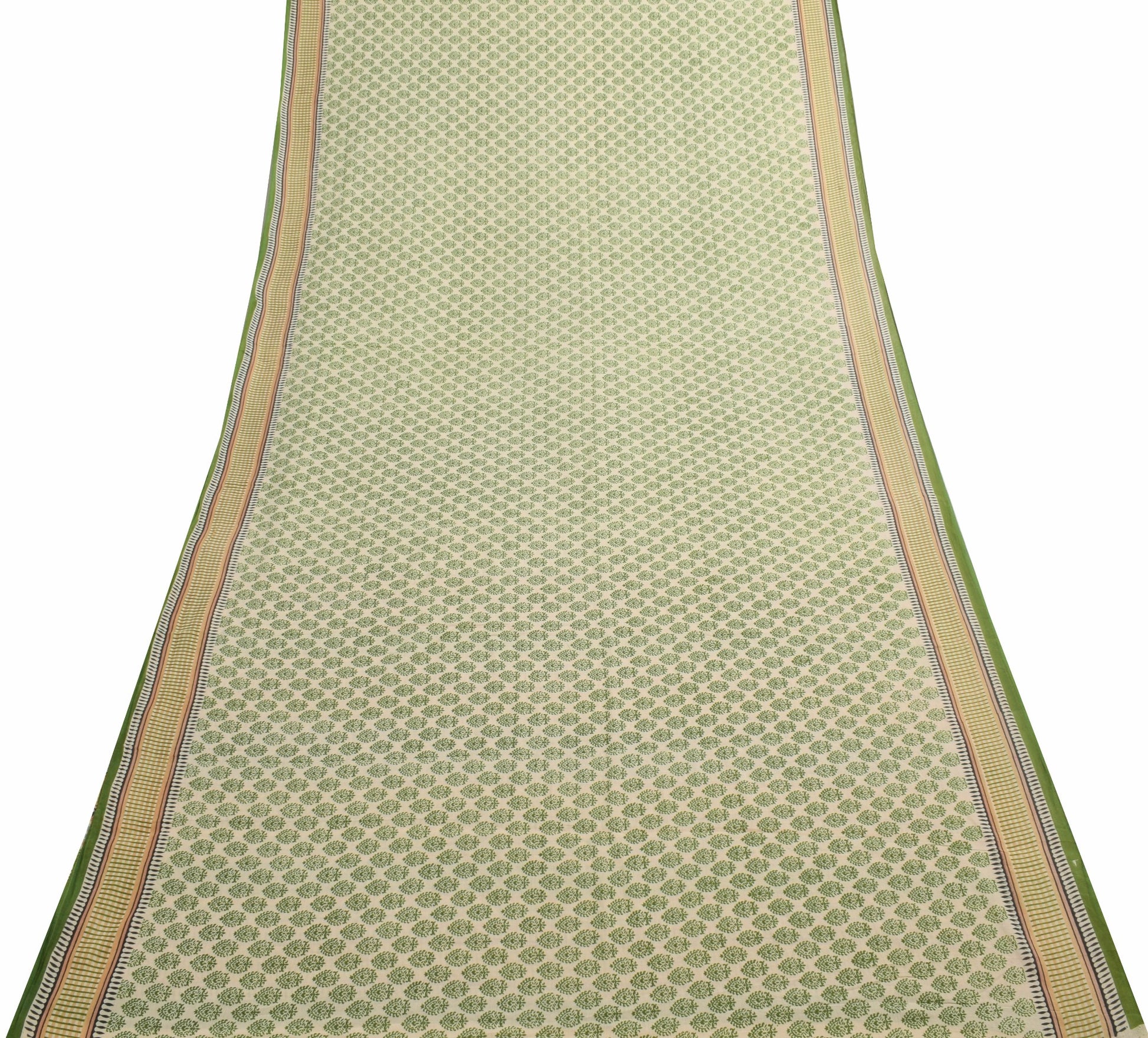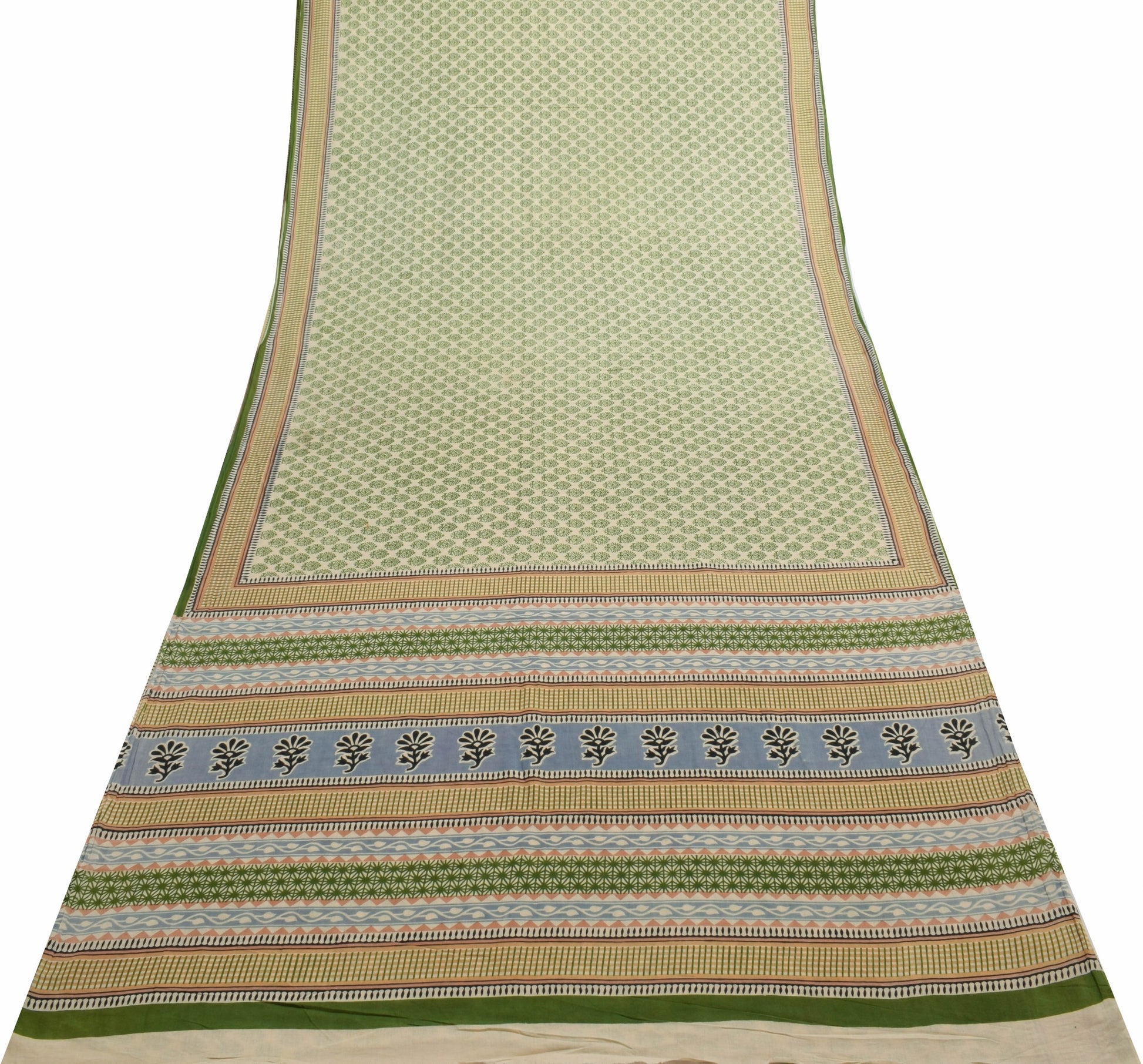 Sushila Vintage Cream Saree 100% Pure Cotton Printed Soft Craft Floral Fabric