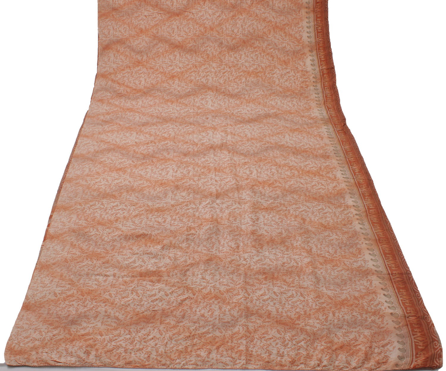 Sushila Vintage Cream Saree 100% Pure Crepe Silk Printed Floral Craft Fabric