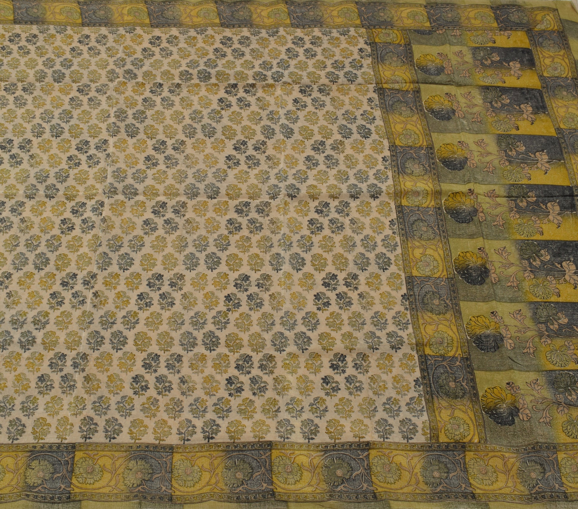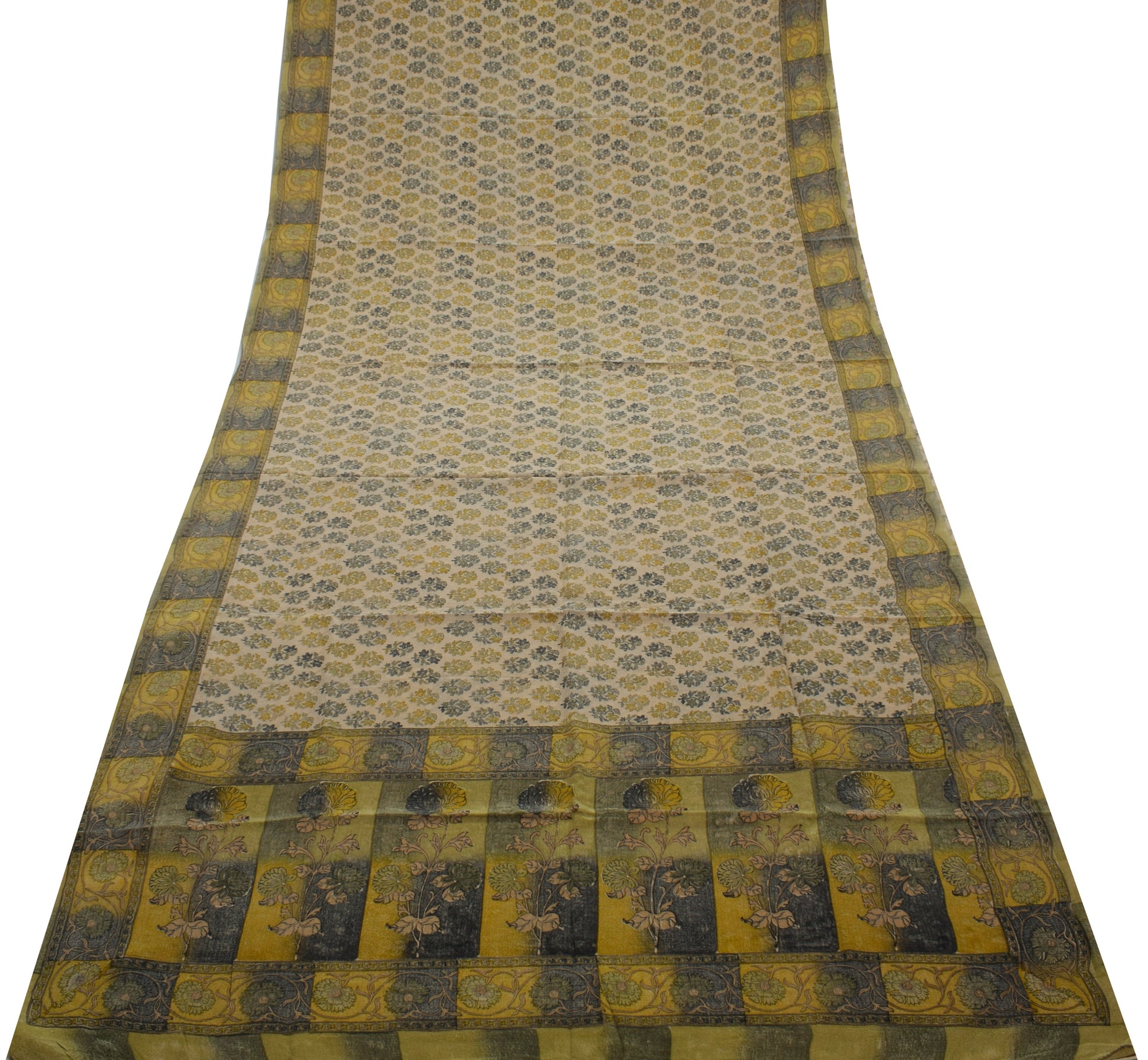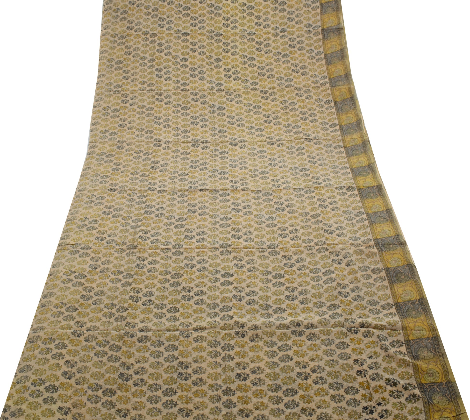 Sushila Vintage Cream Saree 100% Pure Crepe Silk Printed Floral Soft Fabric