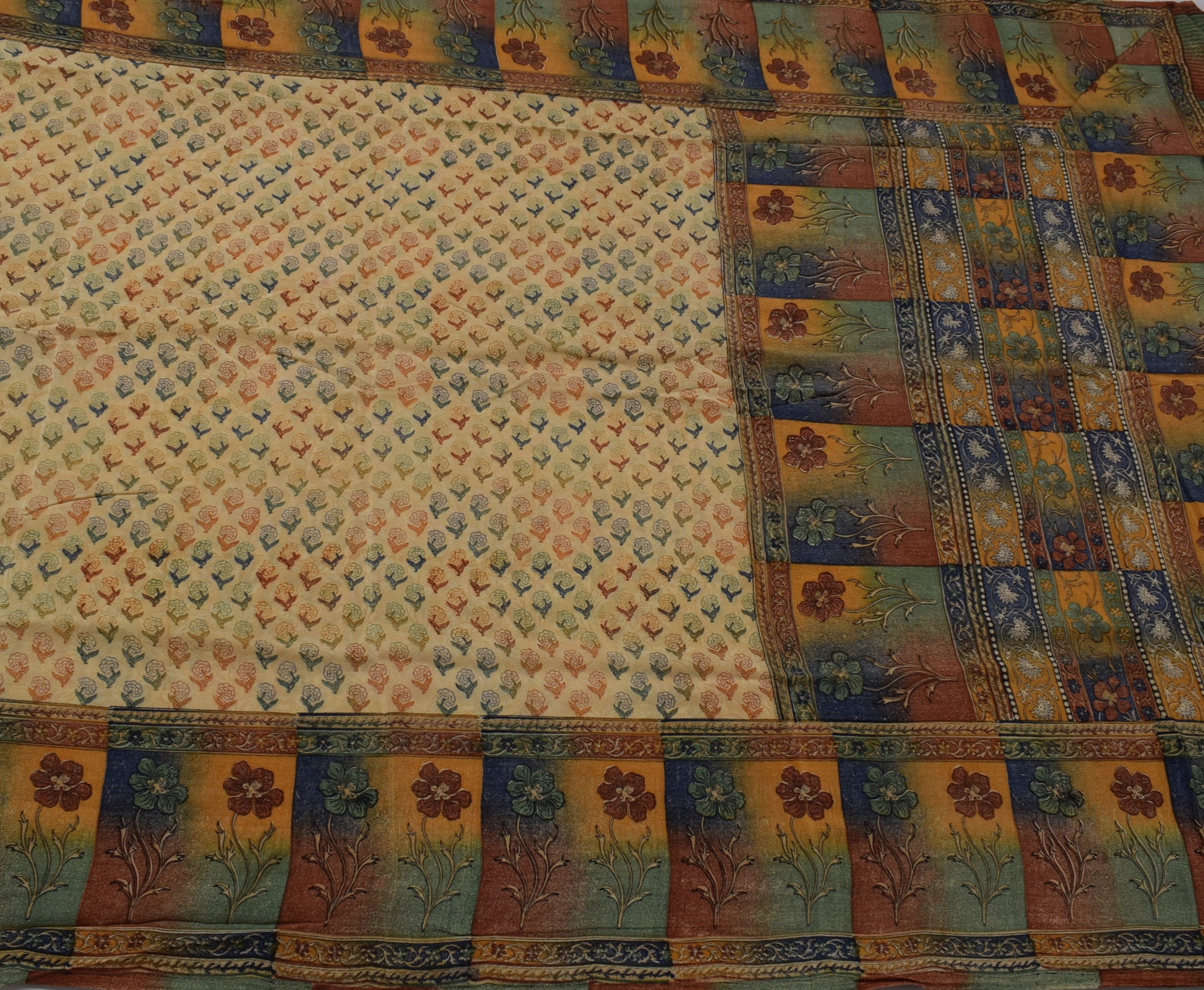 Sushila Vintage Cream Saree 100% Pure Crepe Silk Printed Floral Soft Fabric