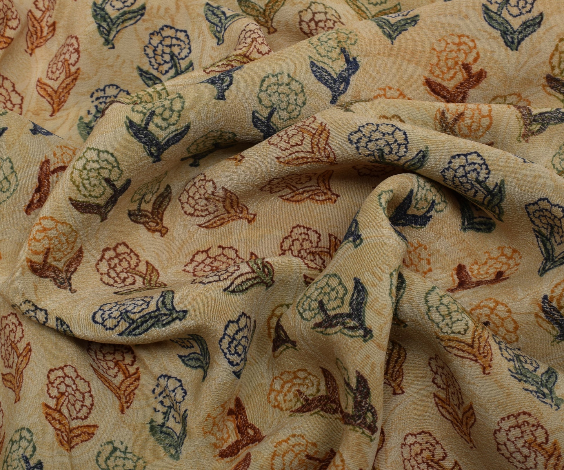 Capture vintage allure with this cream 100% pure crepe silk saree, beautifully crafted with floral designs and intricate printed accents. Crafted from pure, breathable 100% pure crepe silk, this sarI boasts a luxurious drape and enduring appeal. Measuring roughly 192 inch in length and 44 inch in width, it offers versatile styling—whether worn traditionally or repurposed into bespoke dresses, home décor, or creative crafts. Weighing about 351 grams (actual product weight), it falls gracefully, making it ideal for anyone who appreciates the charm of vintage textiles.