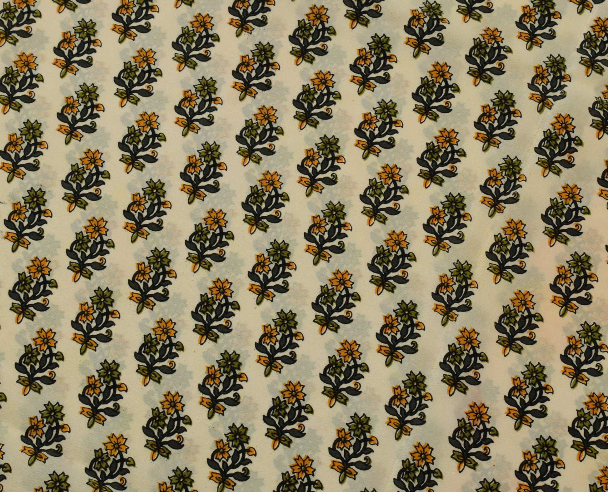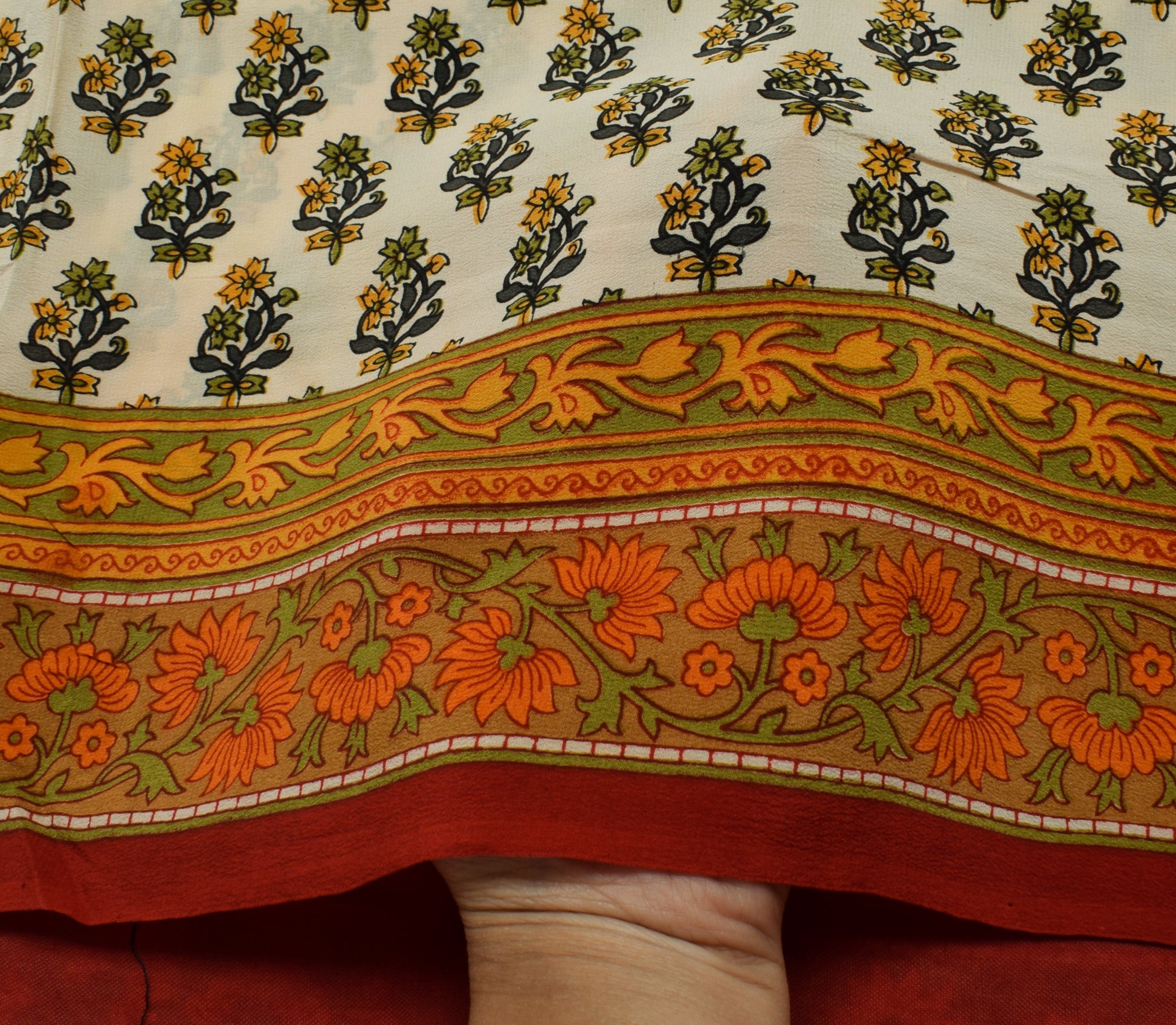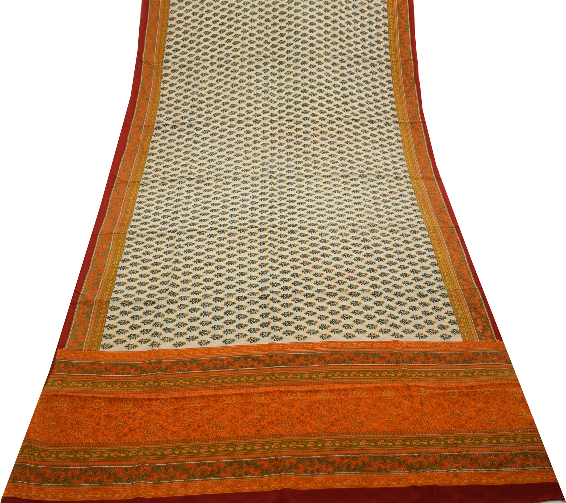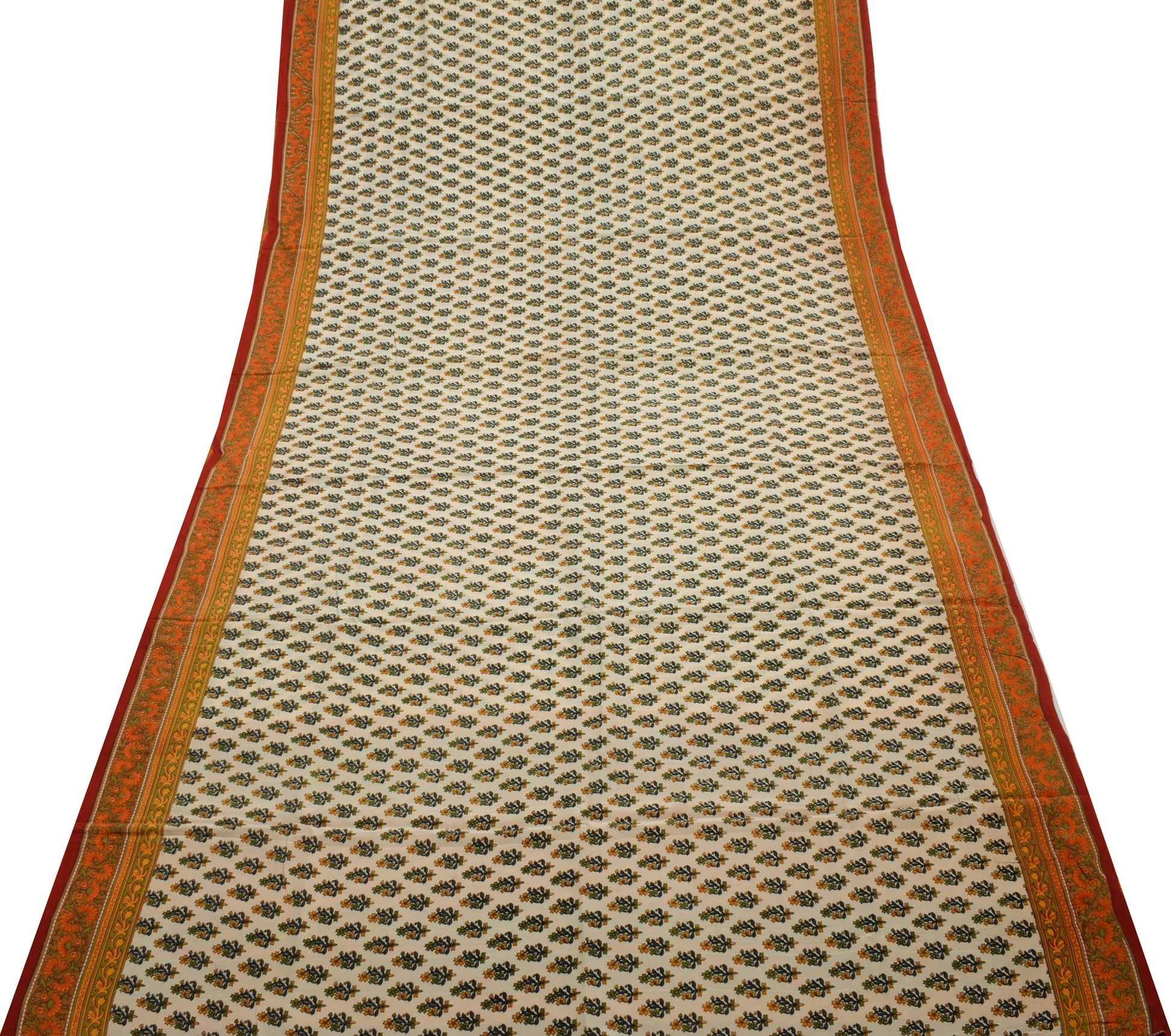 Sushila Vintage Cream Saree 100% Pure Crepe Silk Printed Floral Soft Fabric