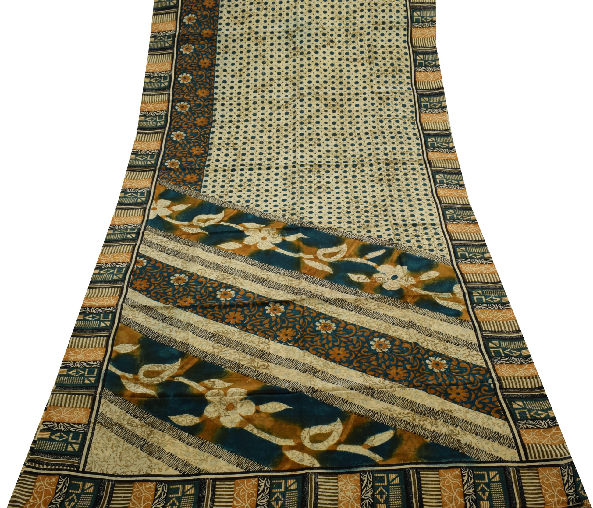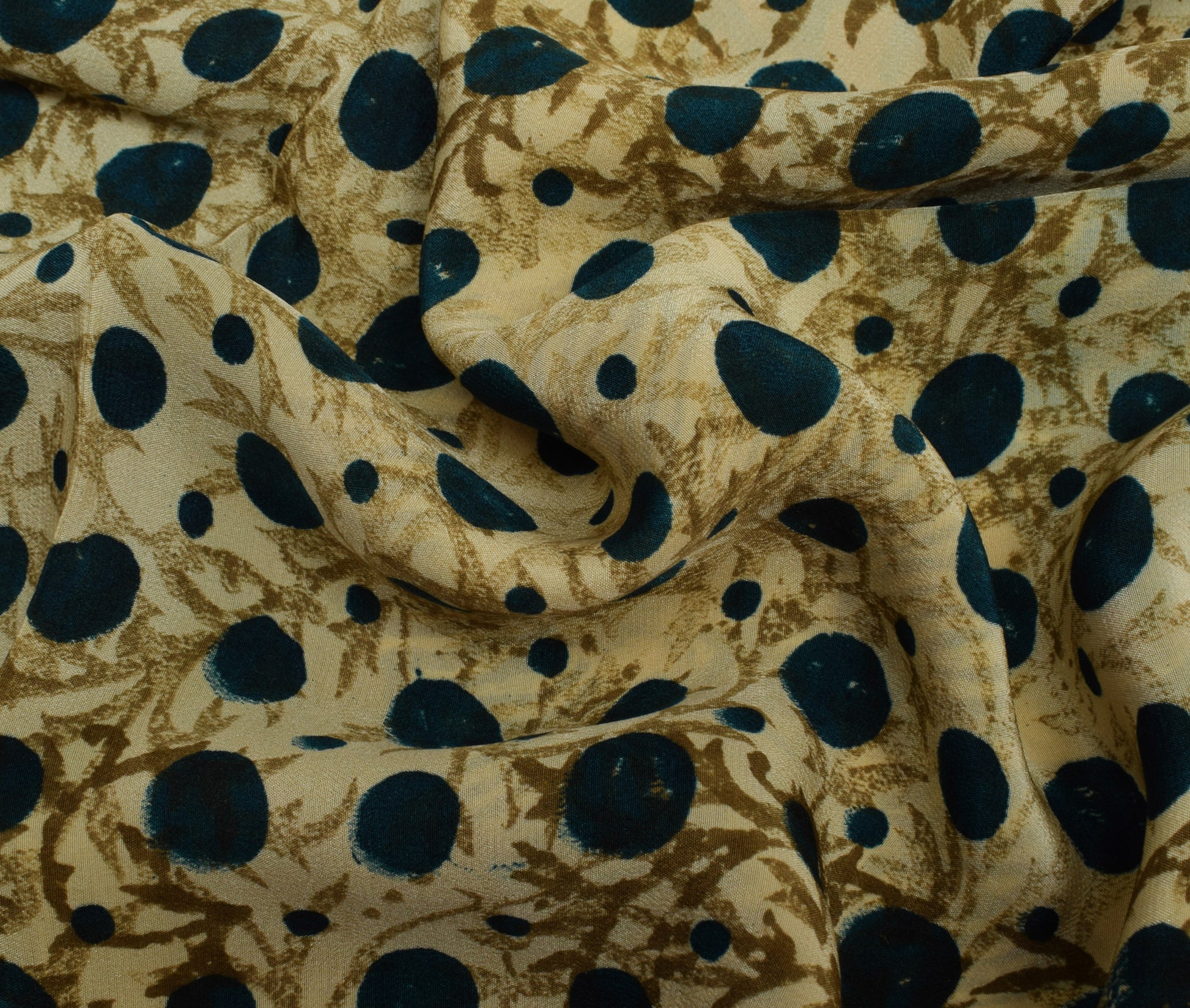 Capture vintage allure with this cream 100% pure crepe silk saree, beautifully crafted with polka dots designs and intricate printed accents. Crafted from pure, breathable 100% pure crepe silk, this sarI boasts a luxurious drape and enduring appeal. Measuring roughly 206 inch in length and 44 inch in width, it offers versatile styling—whether worn traditionally or repurposed into bespoke dresses, home décor, or creative crafts. Weighing about 308 grams (actual product weight), it falls gracefully, making it ideal for anyone who appreciates the charm of vintage textiles.
