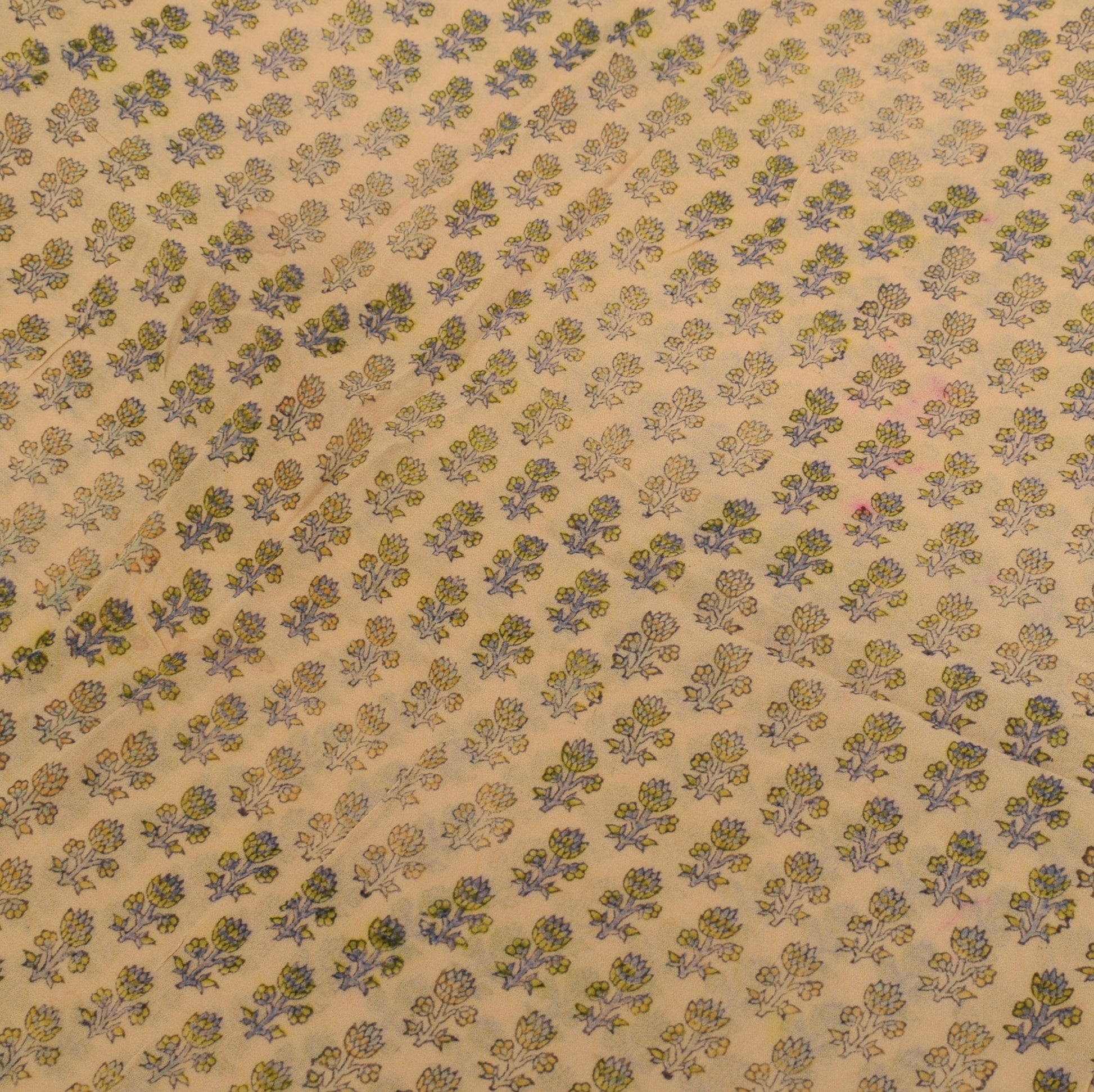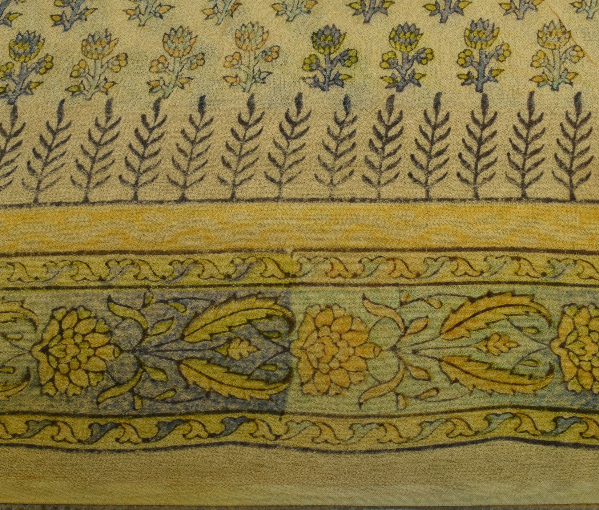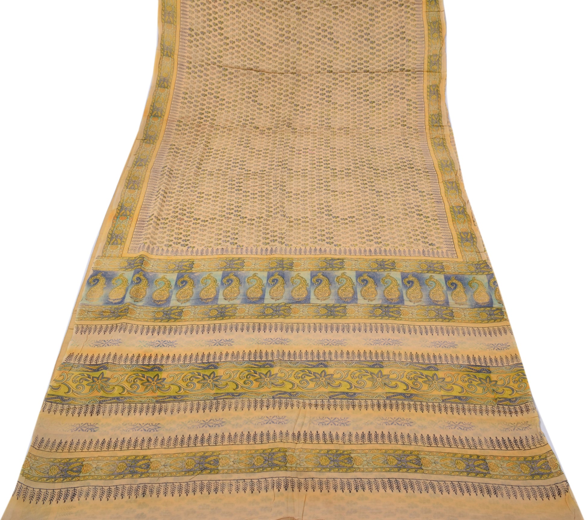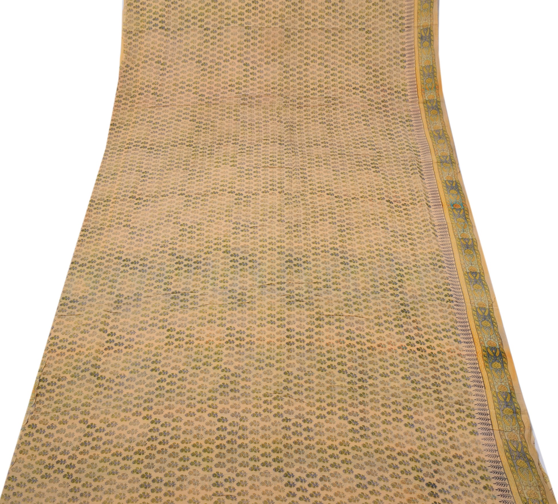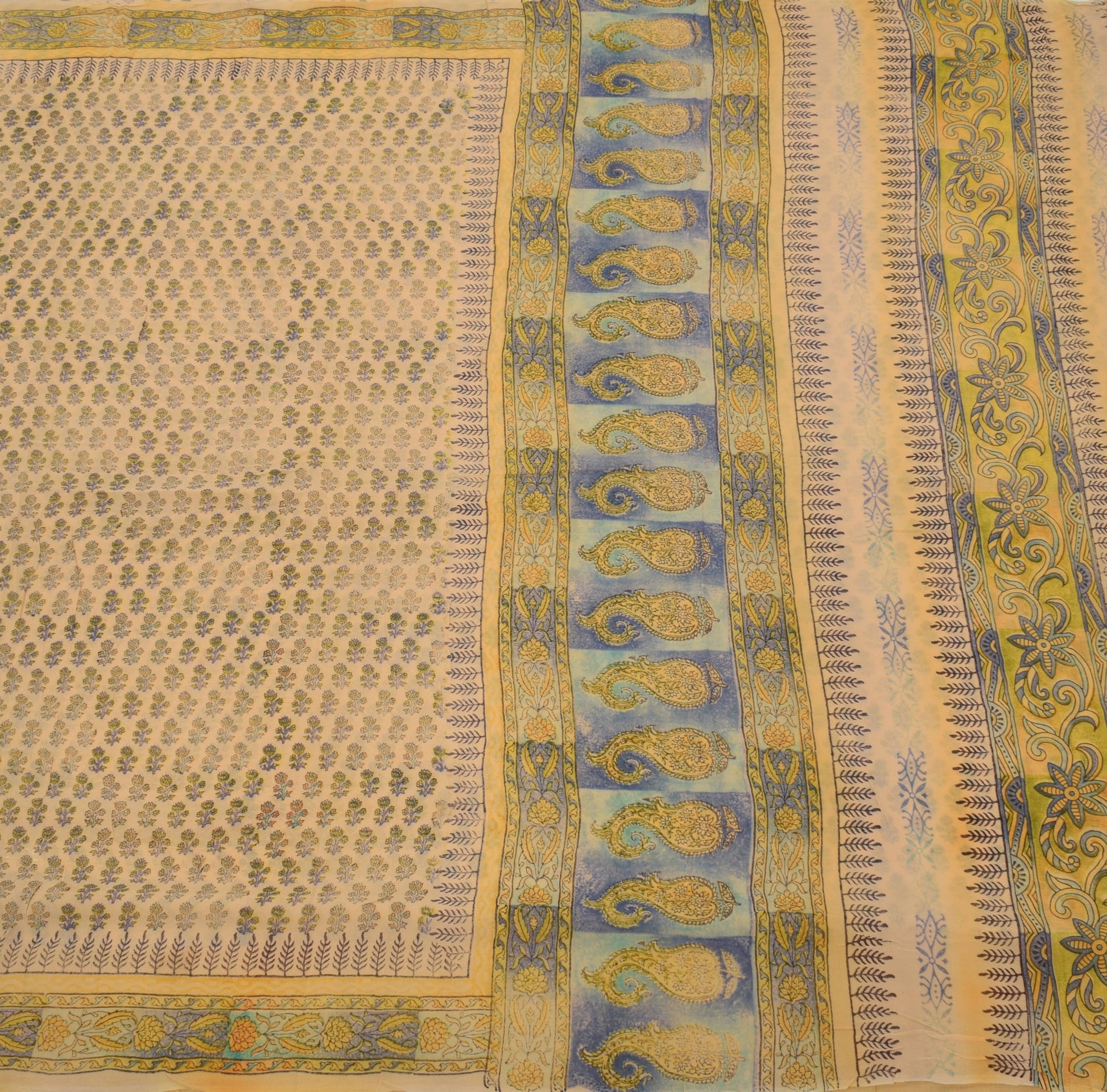 Sushila Vintage Cream Saree 100% Pure Georgette Silk Printed Floral Craft Fabric