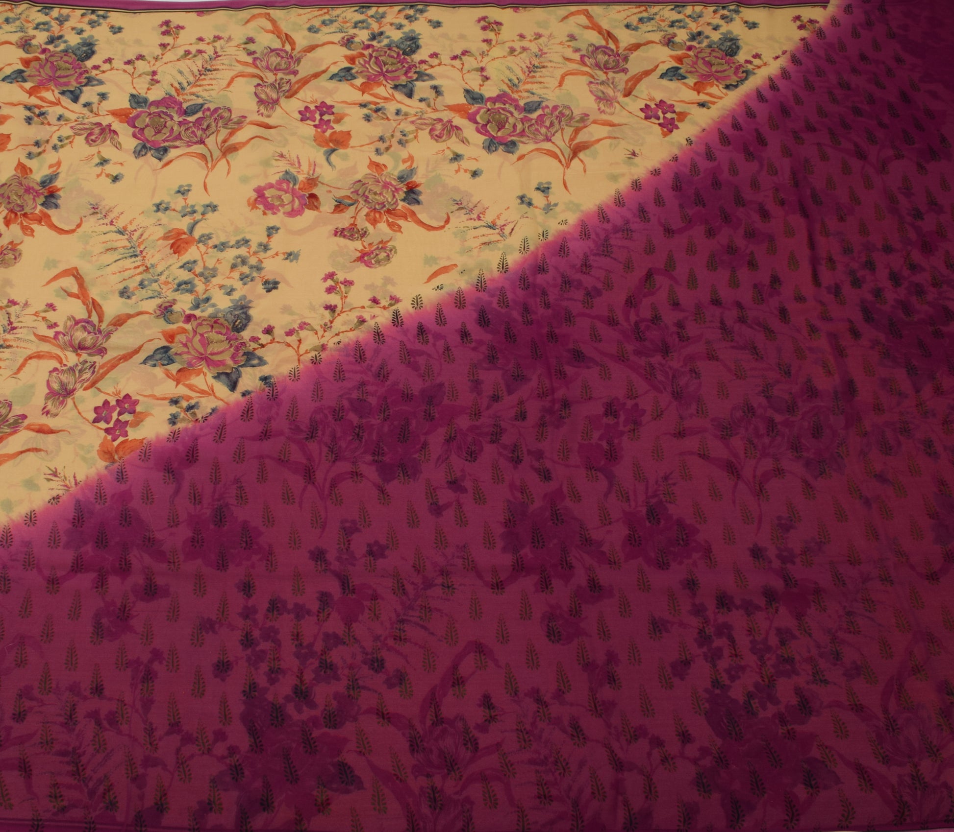 Sushila Vintage Cream Saree 100% Pure Georgette Silk Printed Floral Craft Fabric