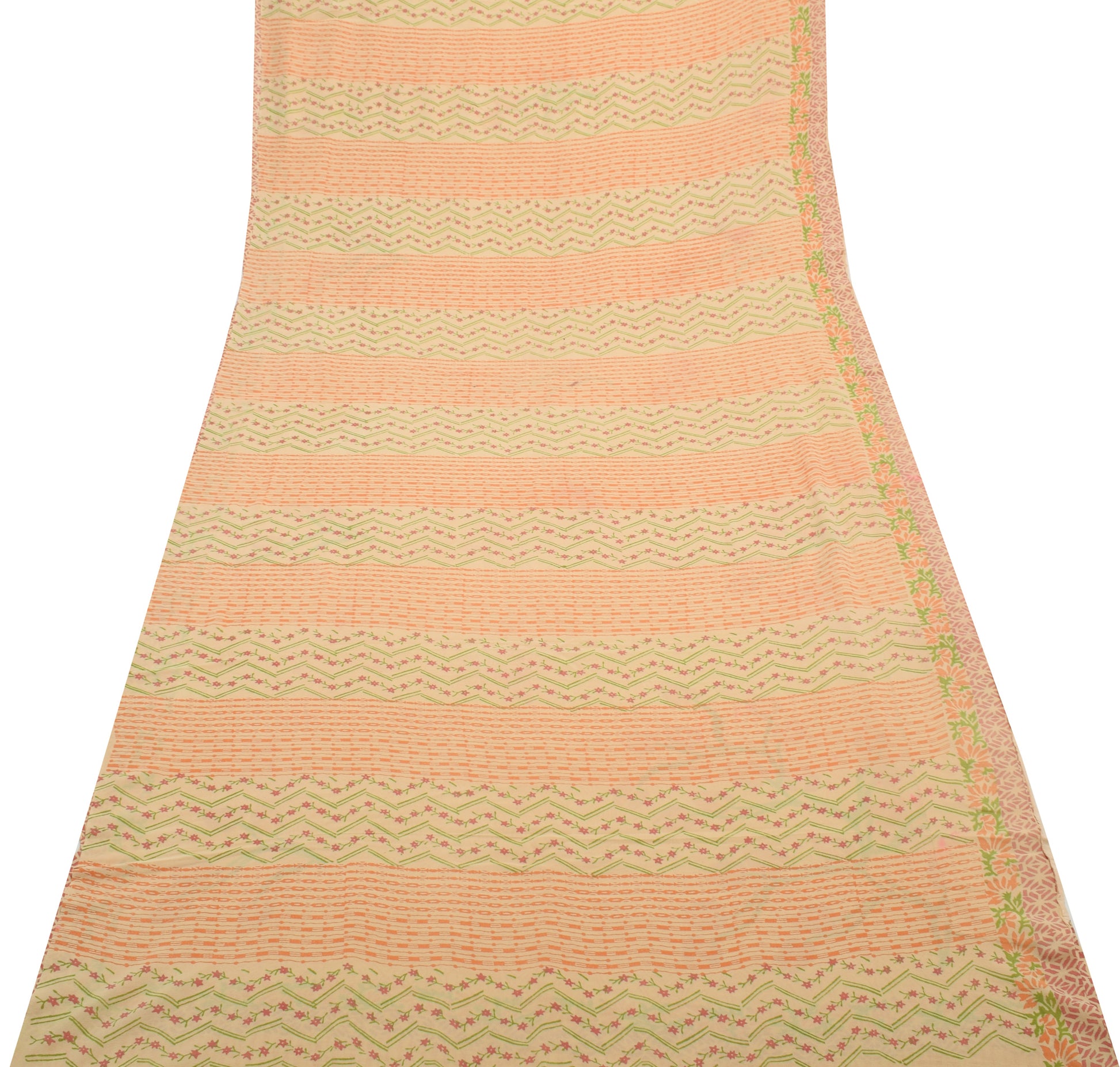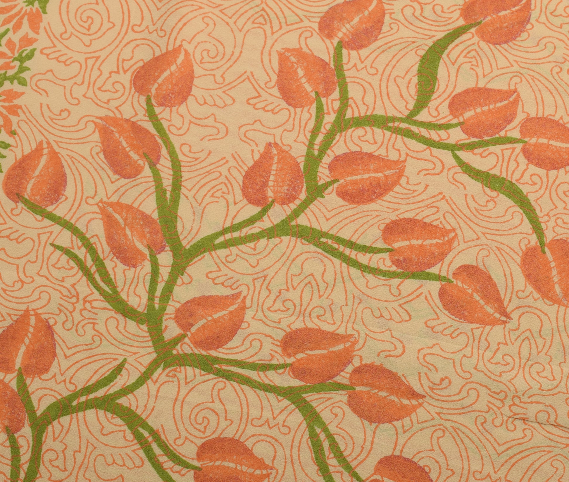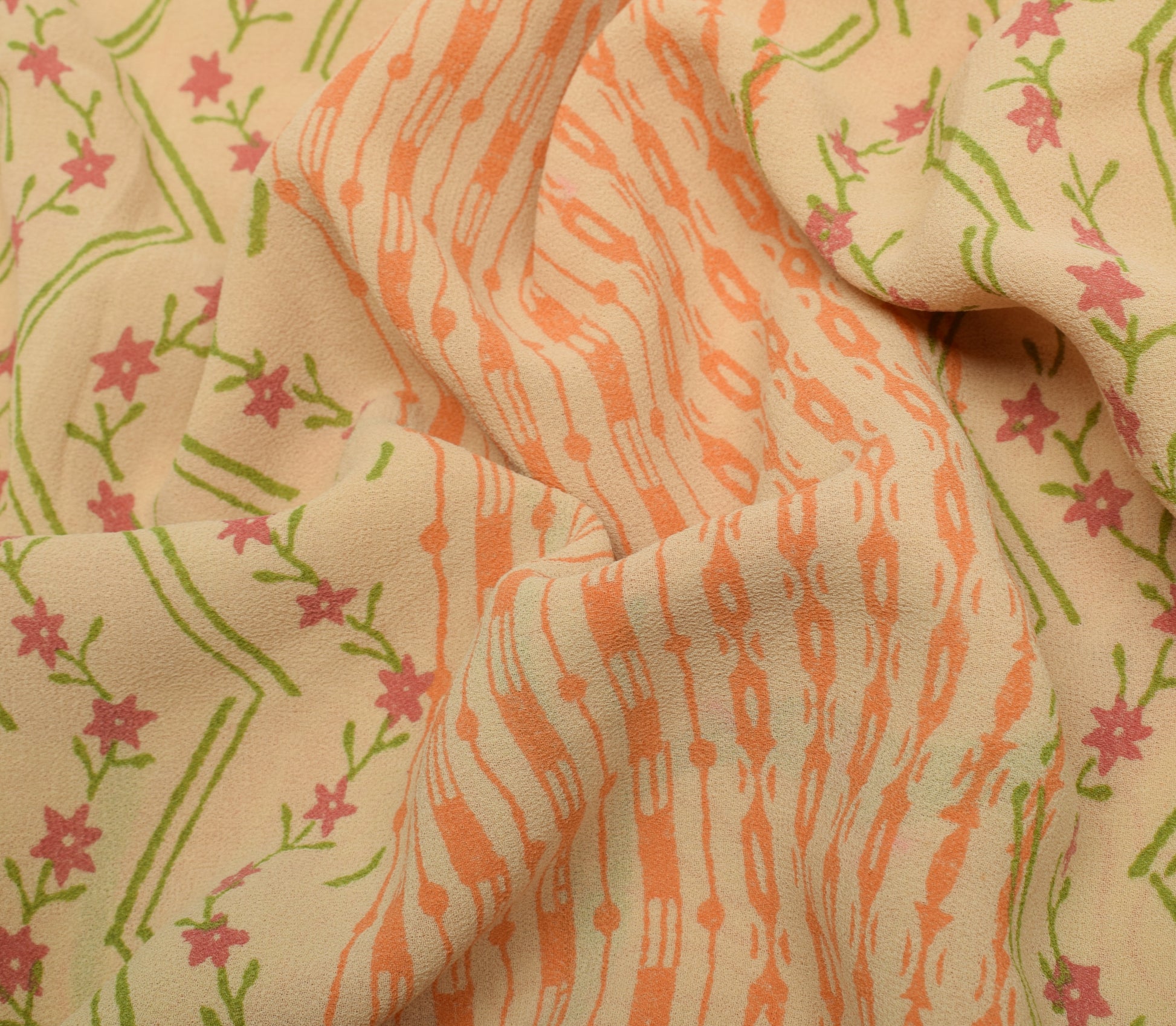 Sushila Vintage Cream Saree 100% Pure Georgette Silk Printed Floral Craft Fabric