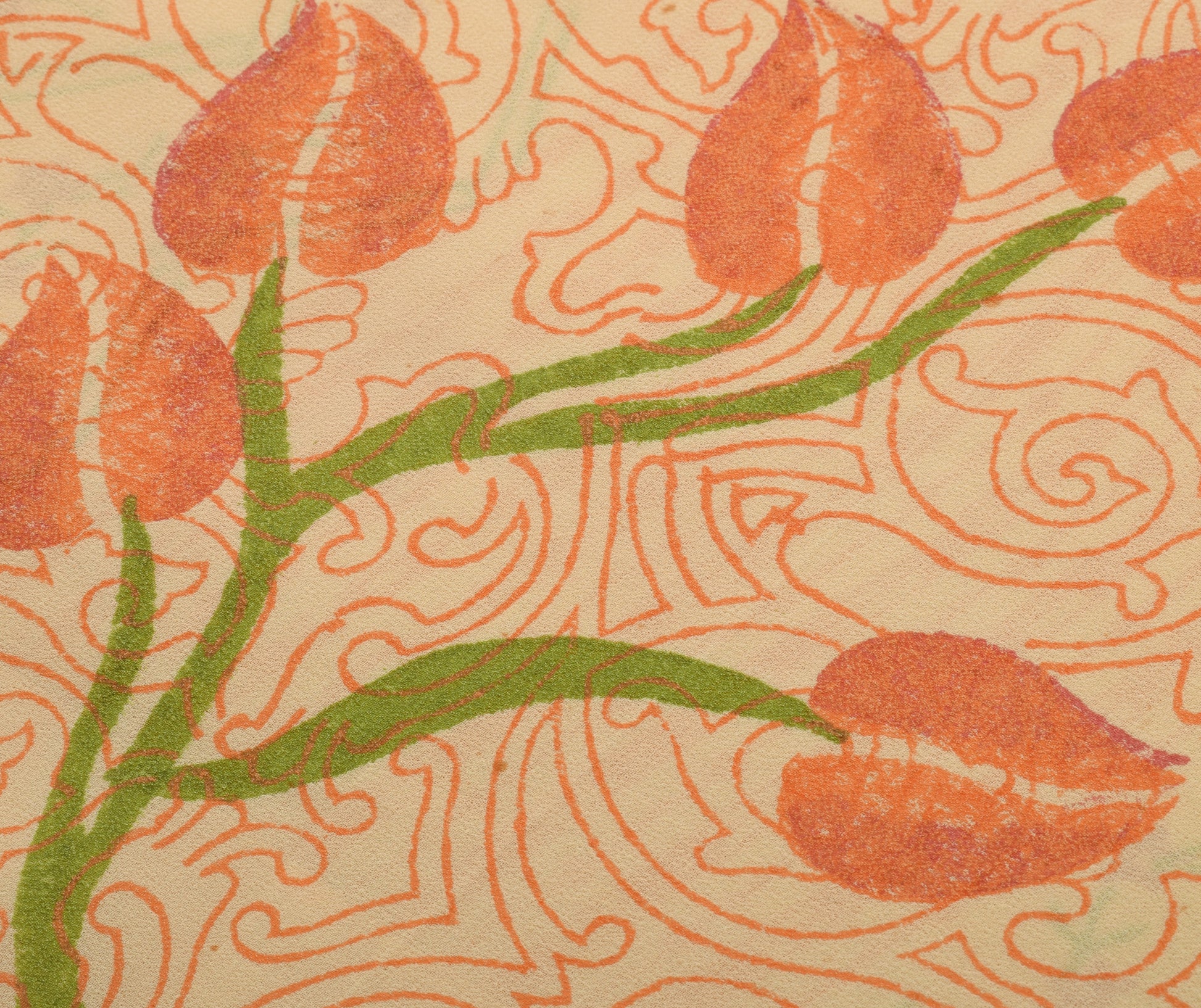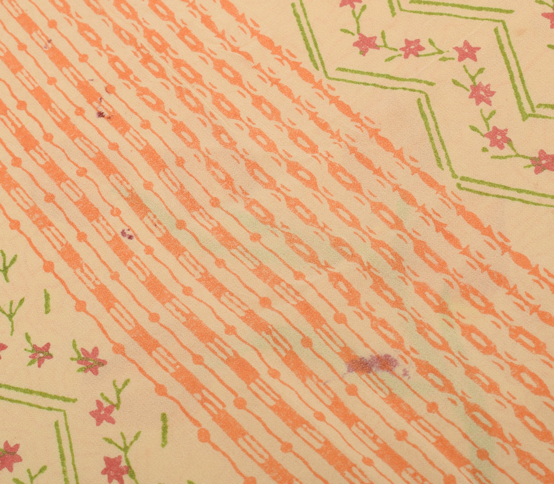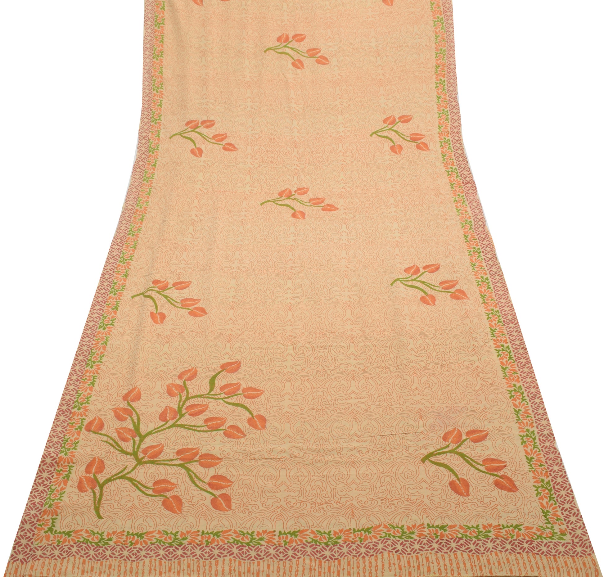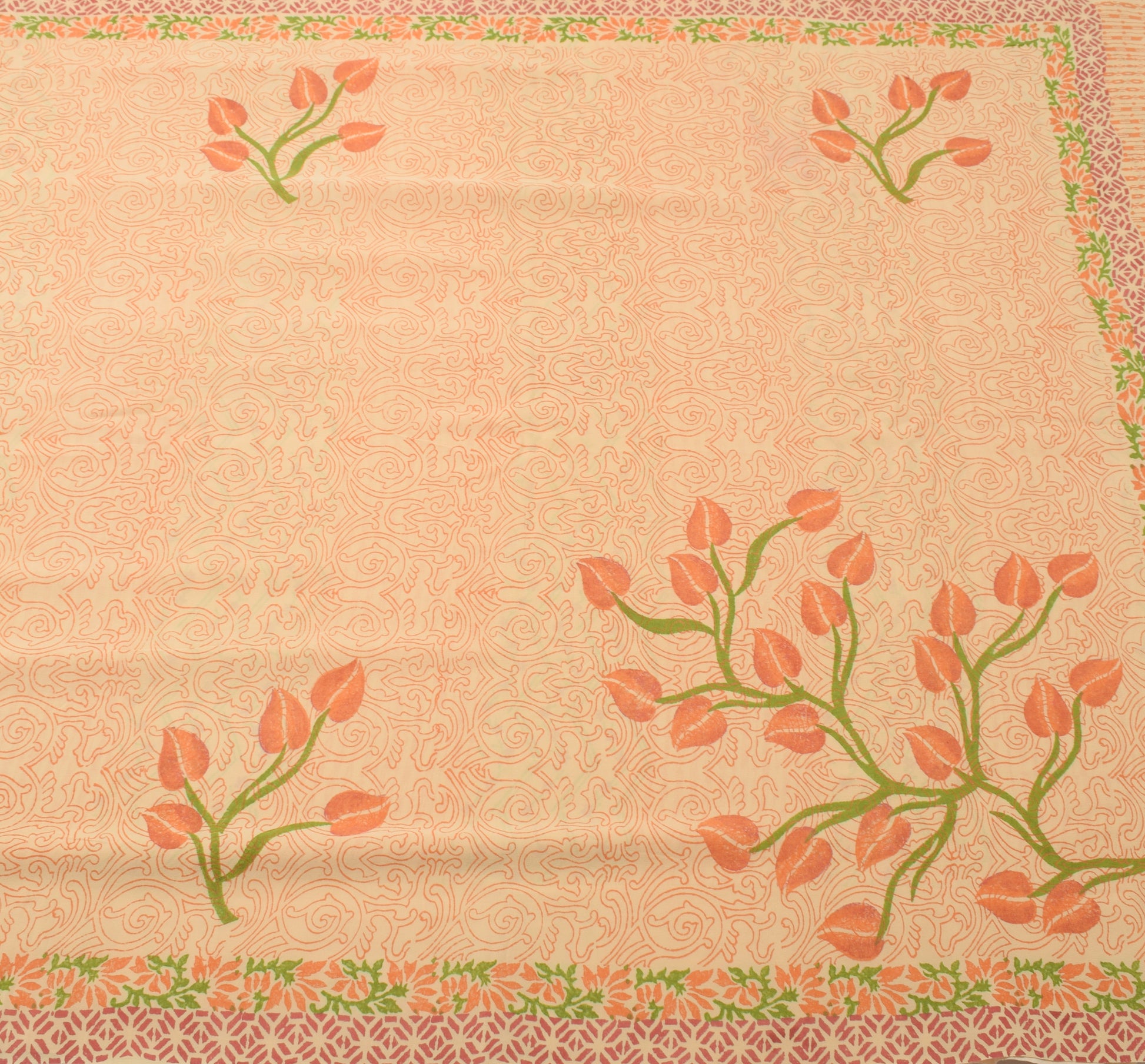 Sushila Vintage Cream Saree 100% Pure Georgette Silk Printed Floral Craft Fabric