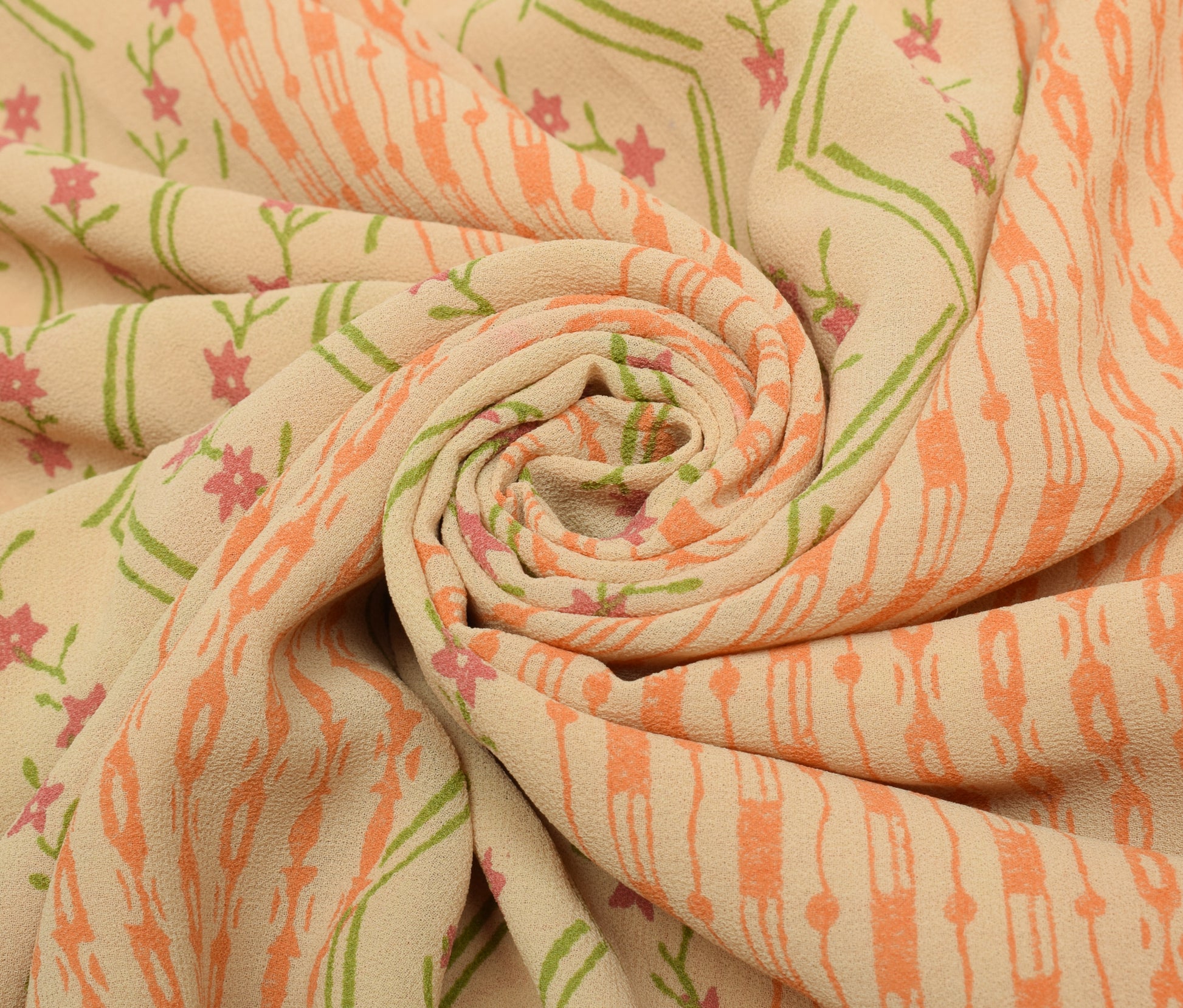 Embrace the charm of vintage textiles with this Cream 100% Pure Georgette Silk saree, showcasing graceful Floral motifs and intricate Printed embellishments. It is perfect for special occasions, creative repurposing, or as a beautiful heirloom gift. Measuring approximately 184 Inch in length and 41 Inch in width, this sari offers versatile styling options. It is lightweight, weighing just 430 Grams (Actual Product weight), making it easy to drape and carry for long hours. The natural breathability and luxurious drape of 100% pure georgette silk make it a prized choice for those who appreciate fine craftsmanship and vintage fashion.