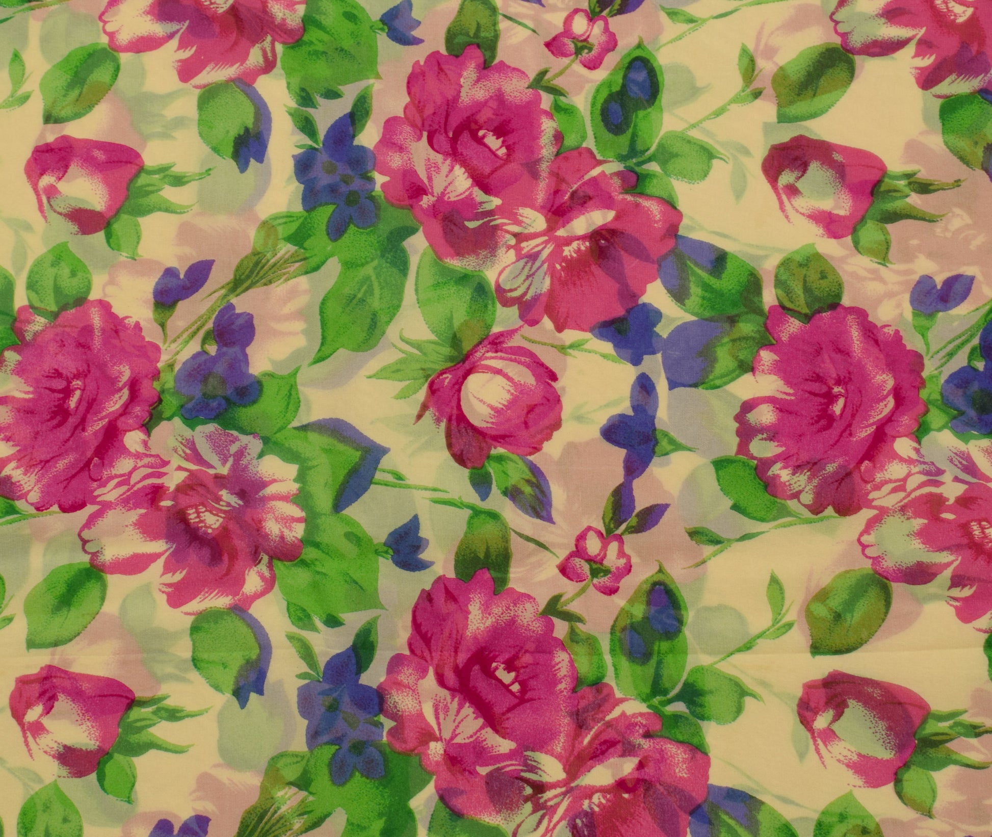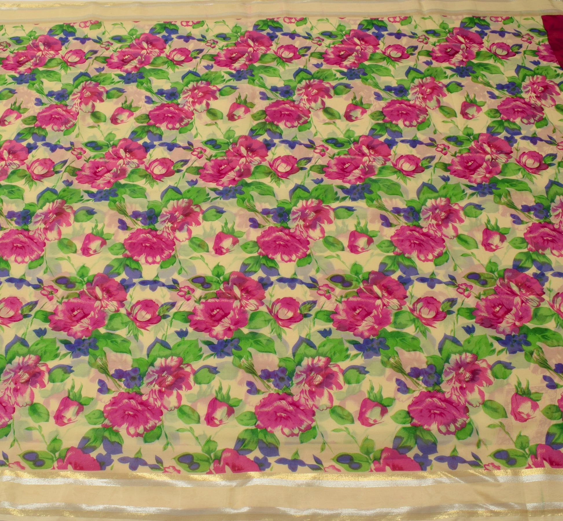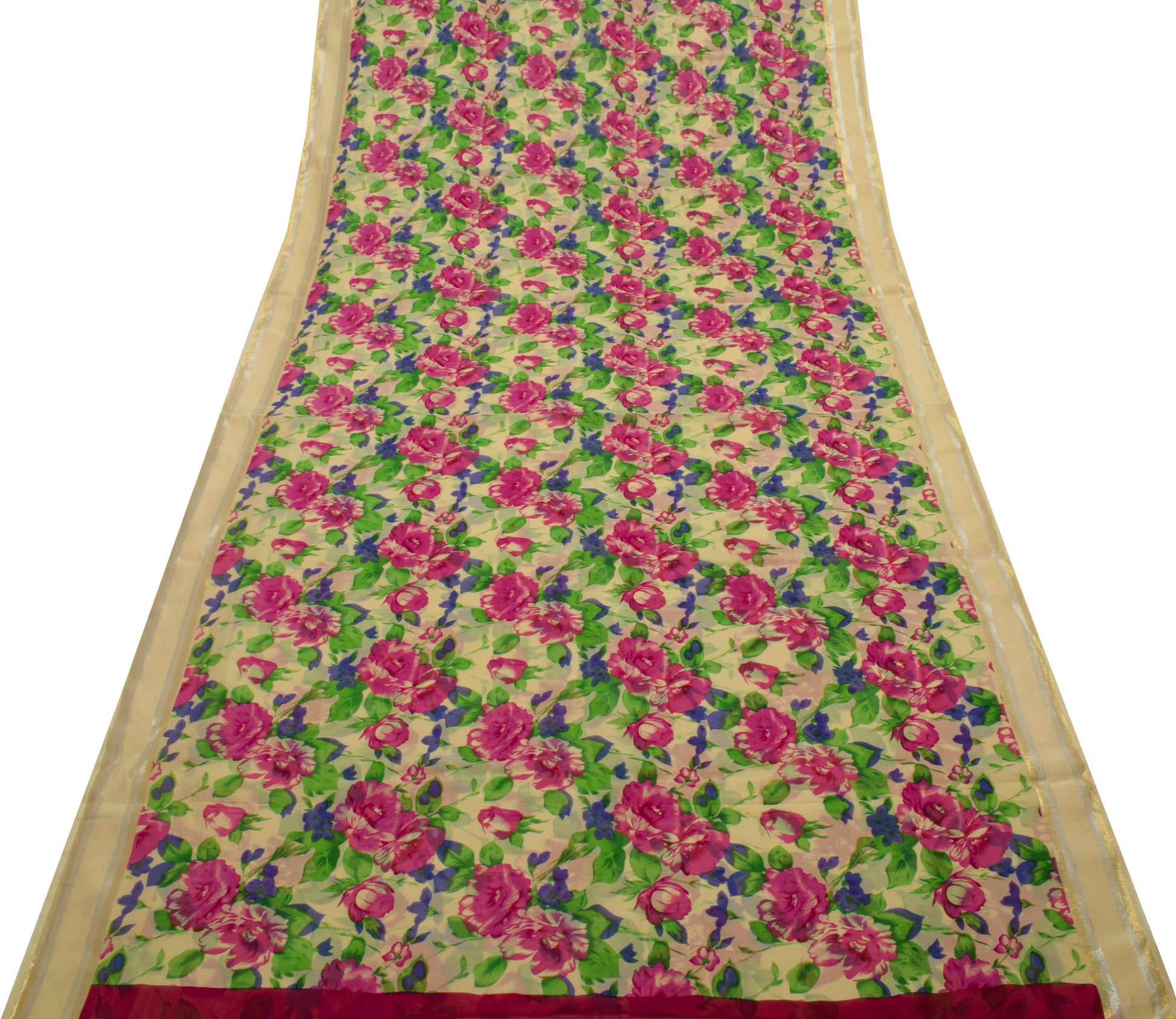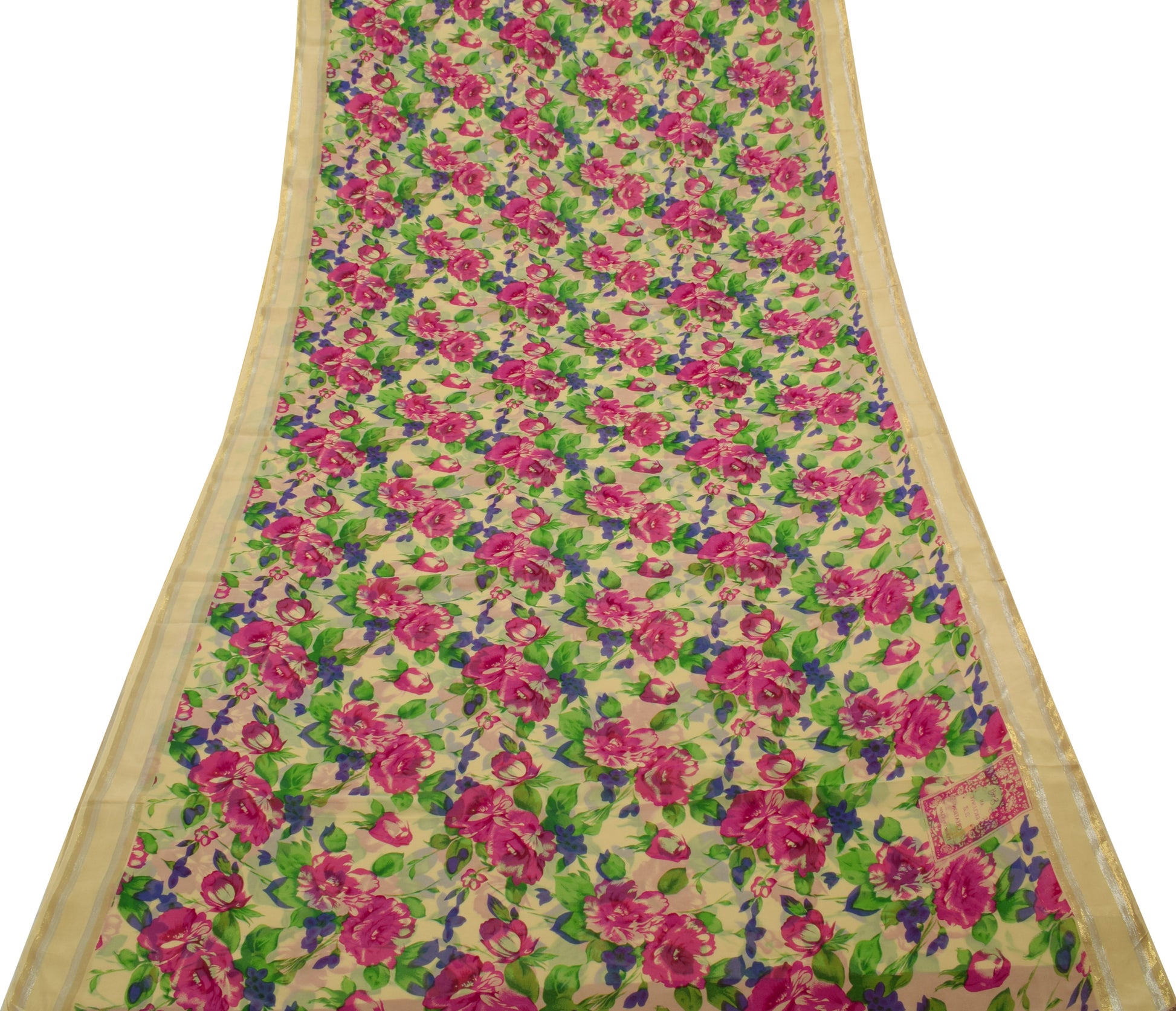 Sushila Vintage Cream Saree 100% Pure Georgette Silk Printed Floral Craft Fabric
