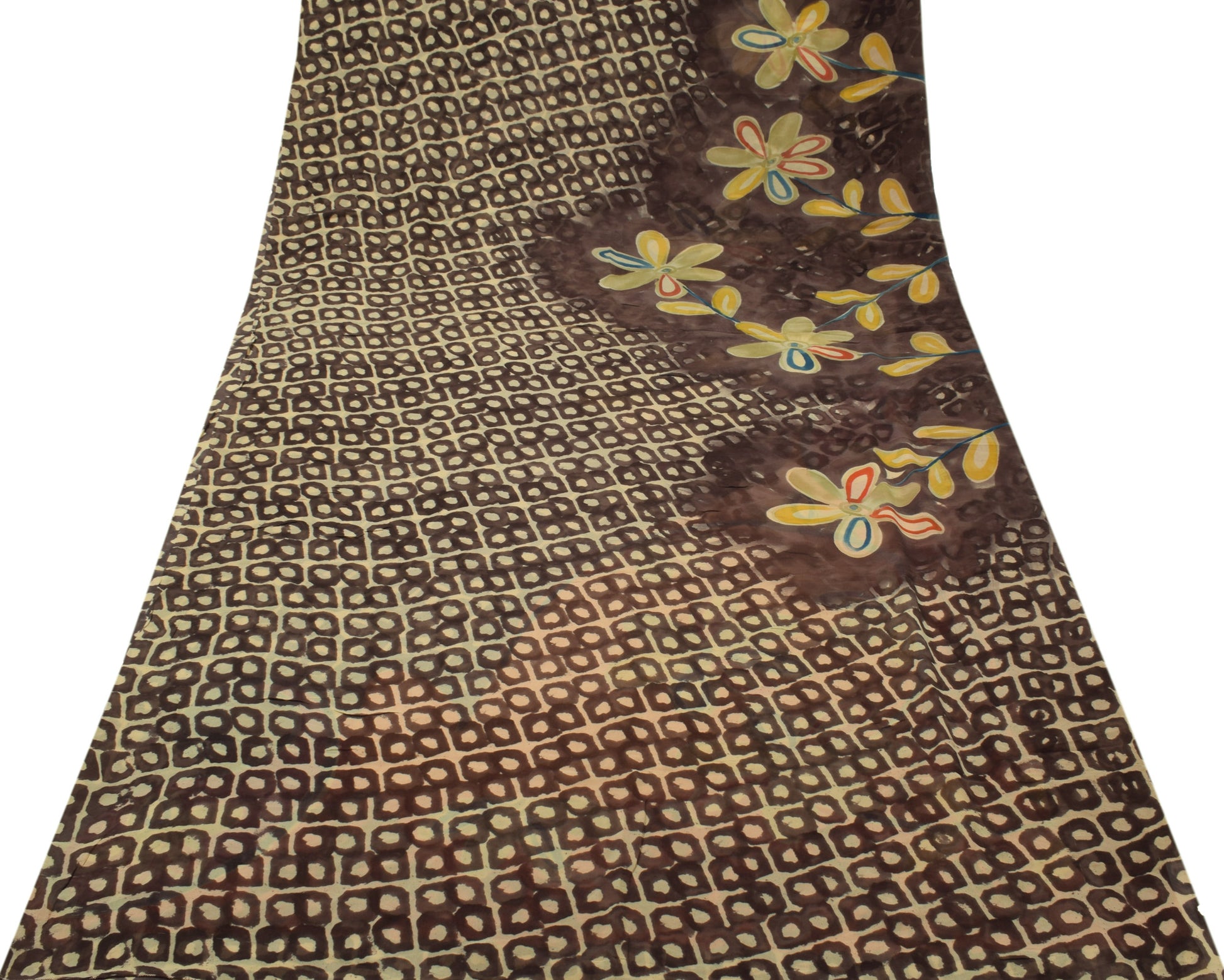 Sushila Vintage Cream Saree 100% Pure Georgette Silk Printed Floral Craft Fabric