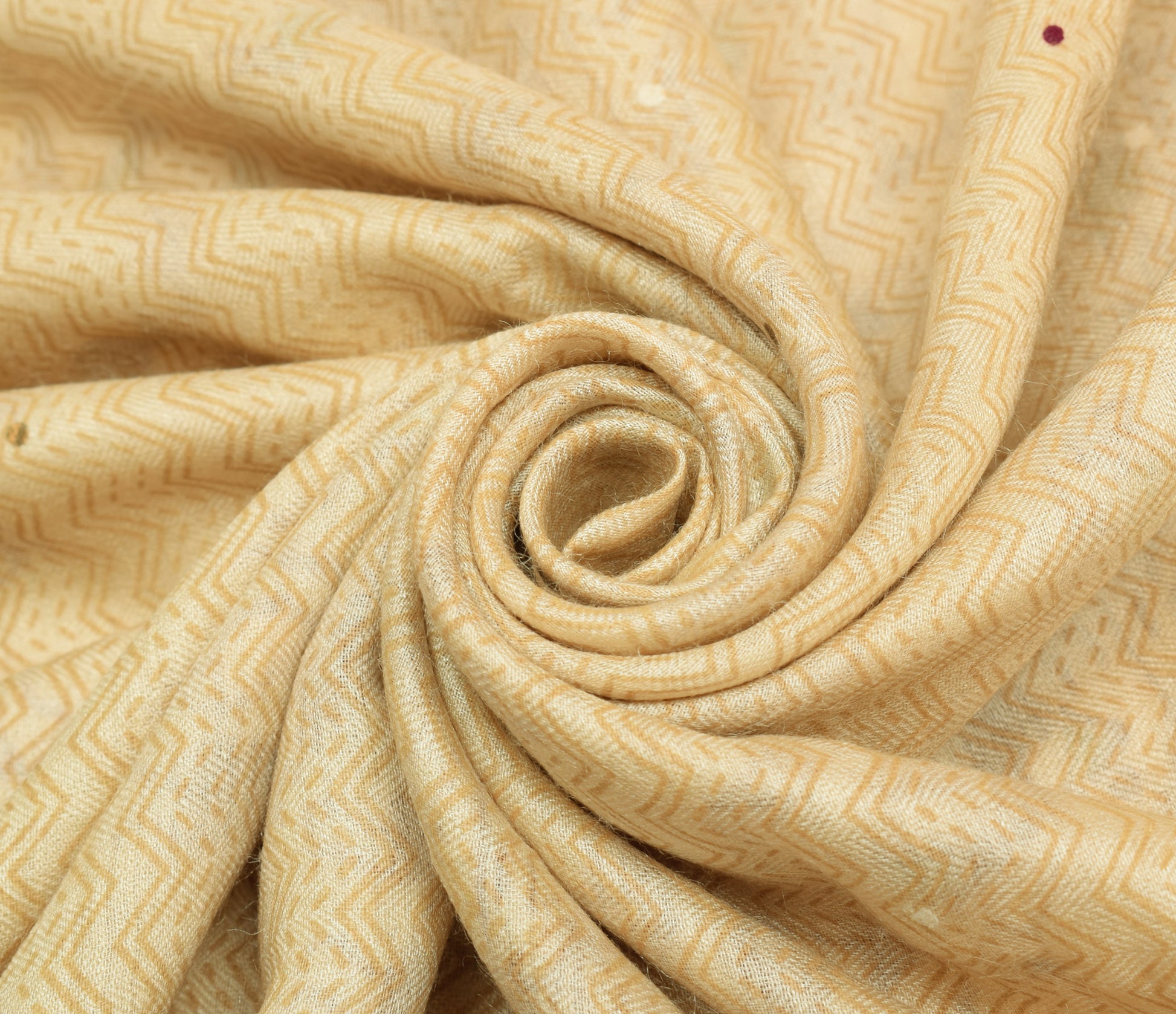 Experience the softness and warmth of this cream woolen 1005 pure woolen saree, ideal for layering in chilly weather and adding a touch of elegance to your winter wardrobe. Measuring approximately 204 inch in length and 45 inch in width, this sari offers generous fabric for versatile styling. It weighs approximately 395 grams (actual product weight), making it ideal for providing warmth during colder seasons. this sari is not pre-finished, with fall is not attached and pico is not done, allowing for complete customization. Whether layered for extra warmth, styled traditionally, or upcycled into beautiful winter garments, this woolen saree is a versatile addition to your collection.