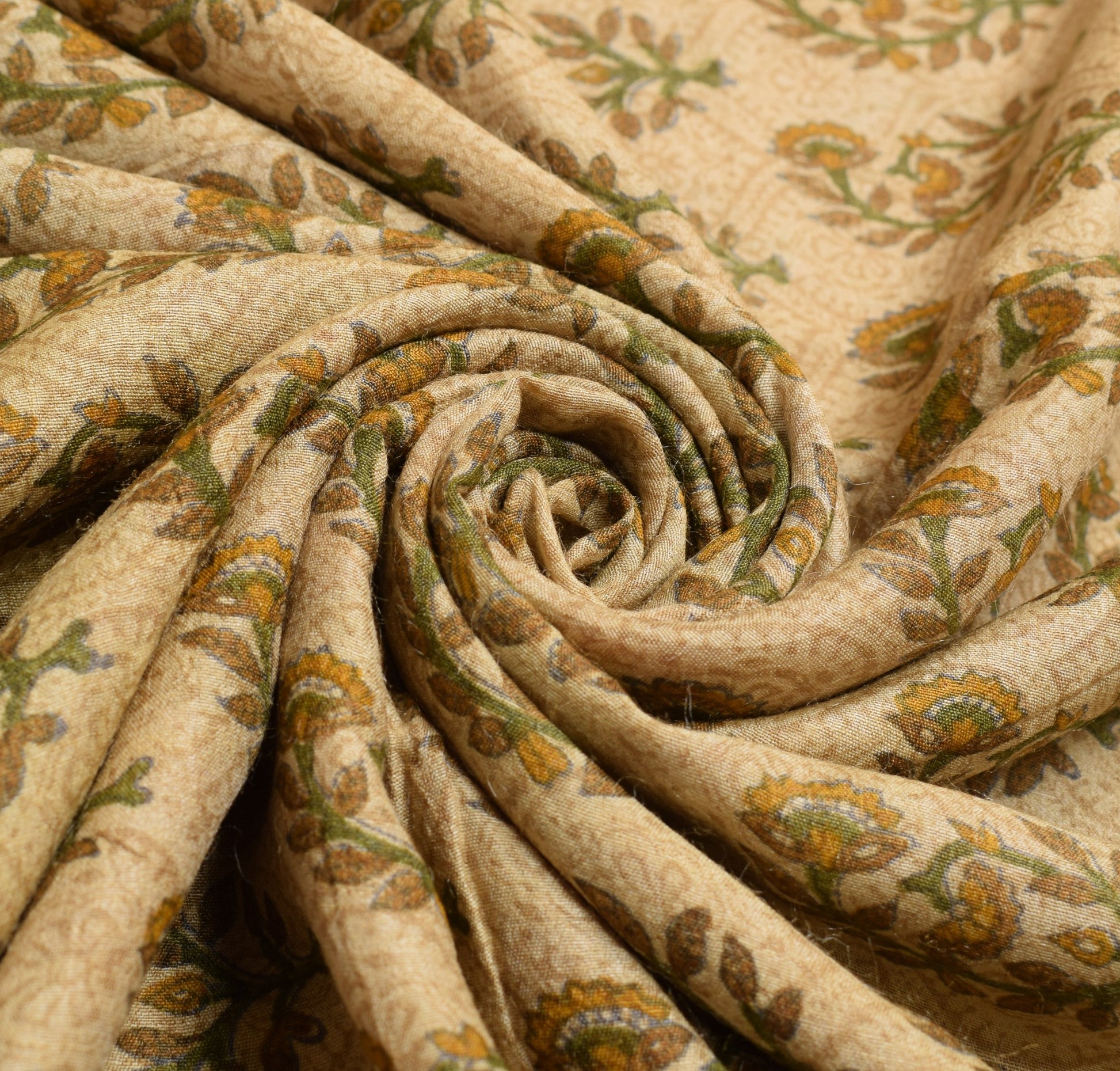 Sushila Vintage Cream Saree 100% Pure Woolen Floral Printed Sari Warm Fabric