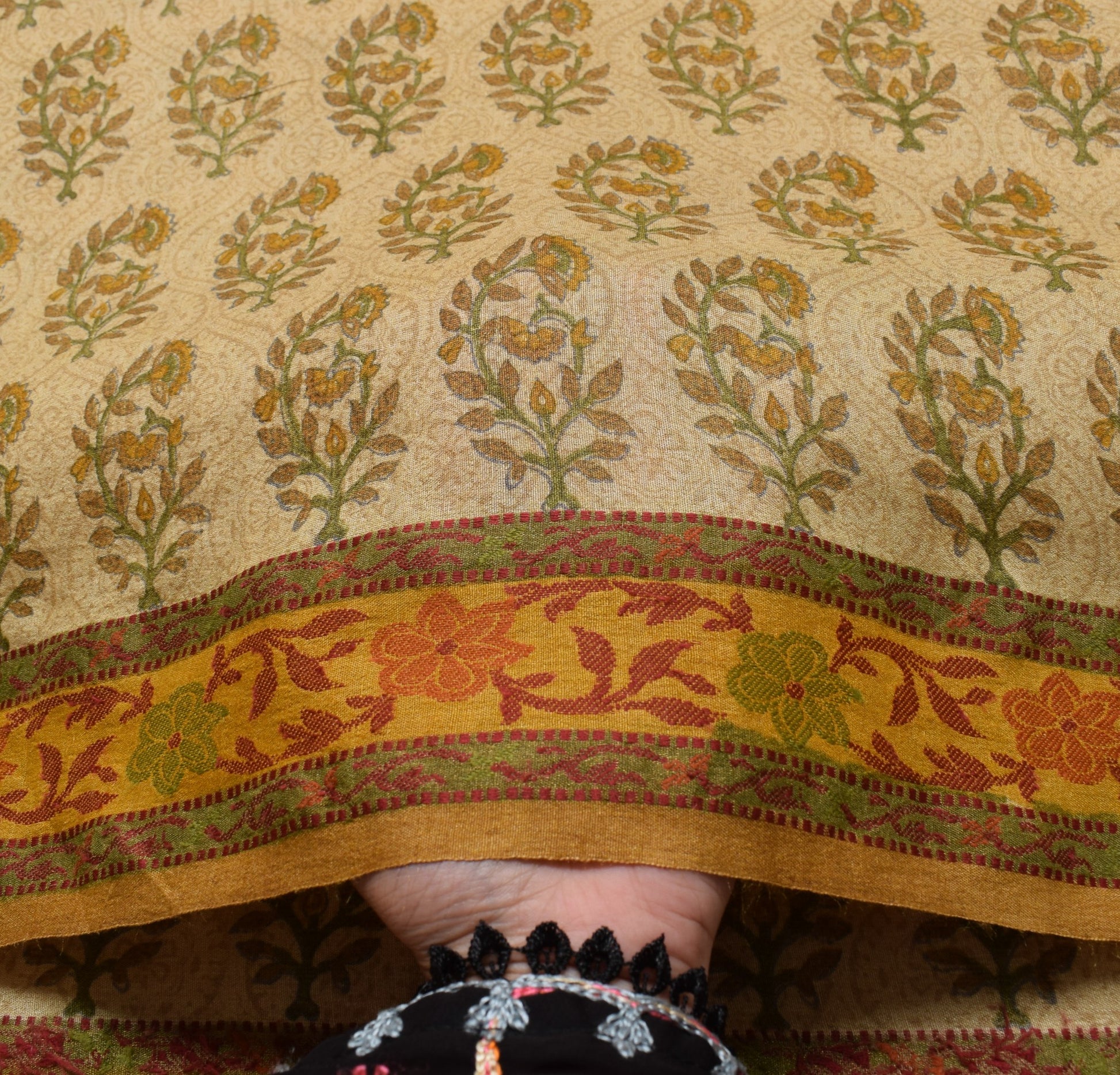 - Color : Cream with Mustard Green Border