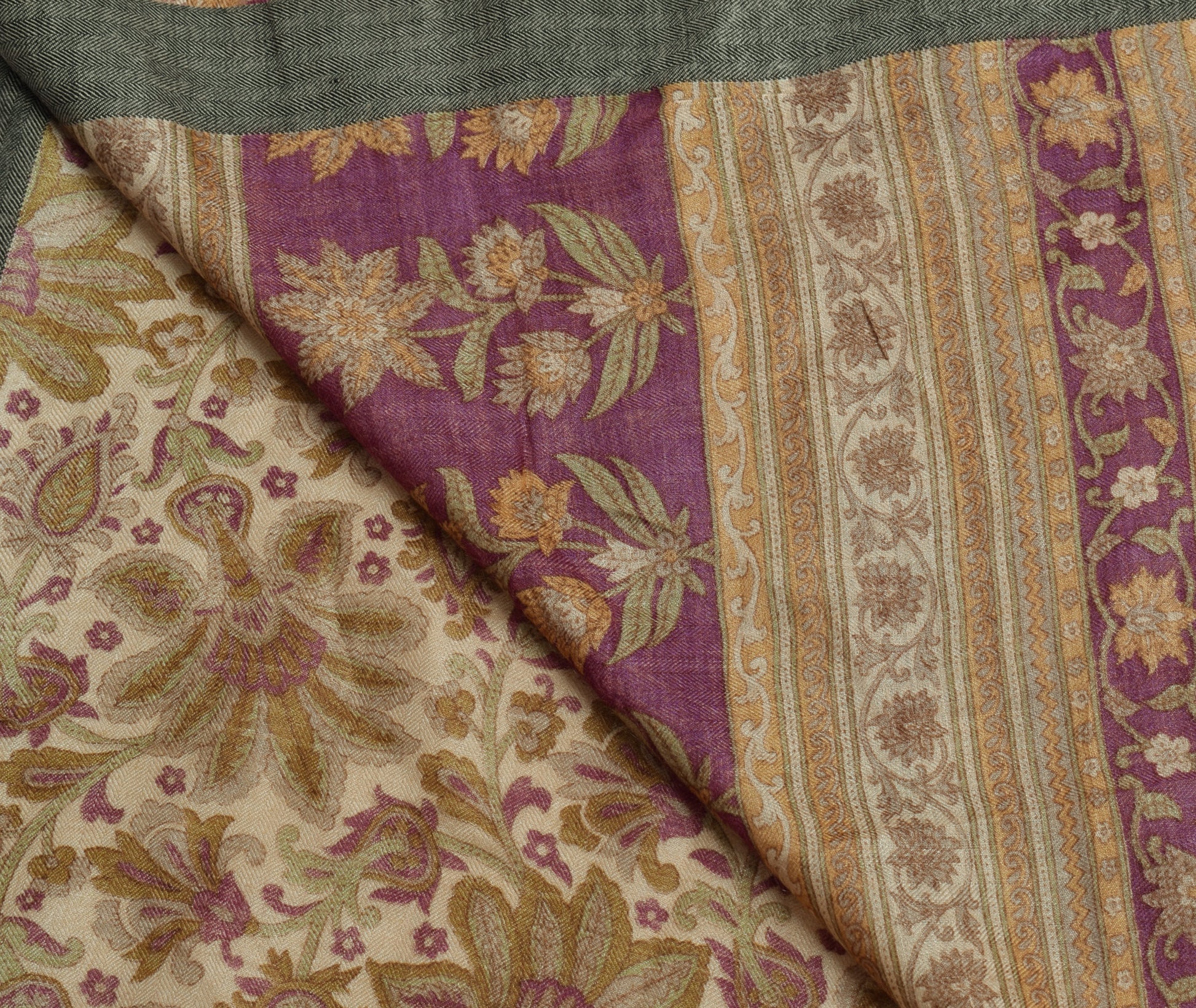 Sushila Vintage Cream Saree 100% Pure Woolen Woven Floral Soft Sari Craft Fabric