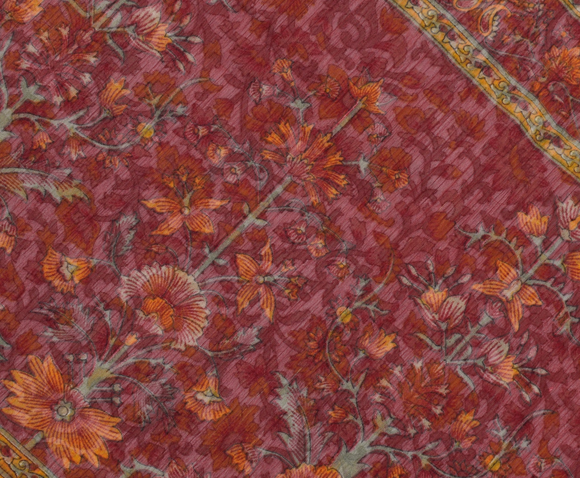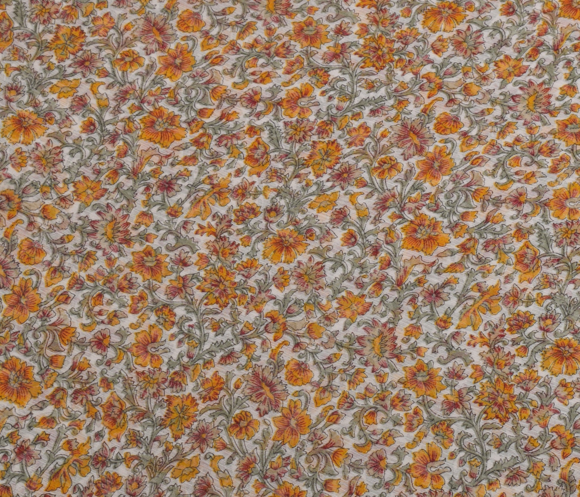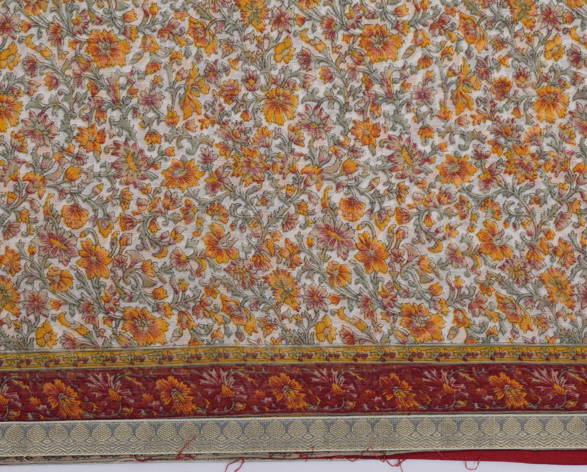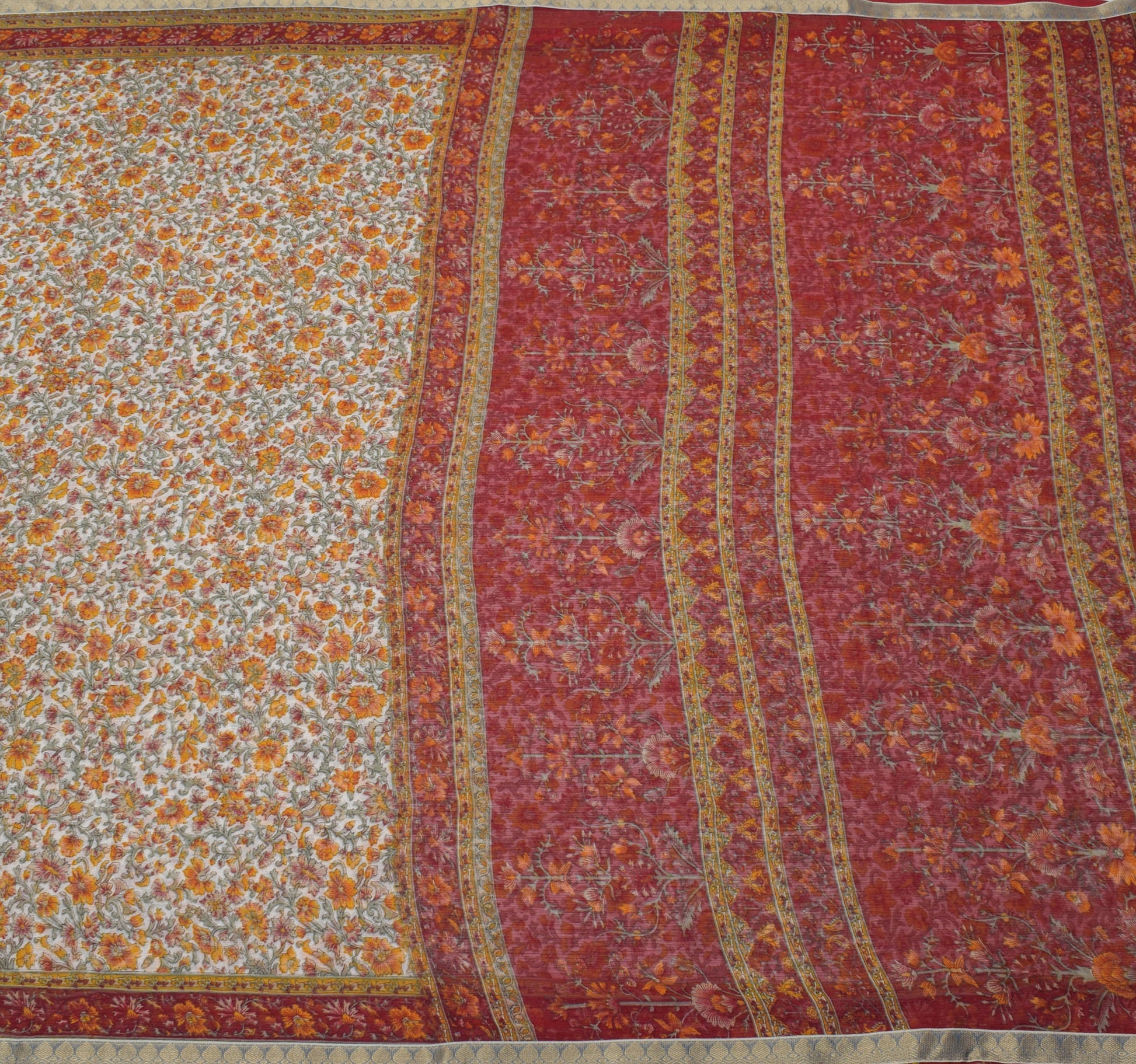 Sushila Vintage Cream Saree Blend Chiffon Silk Printed Floral 5YD Craft Fabric