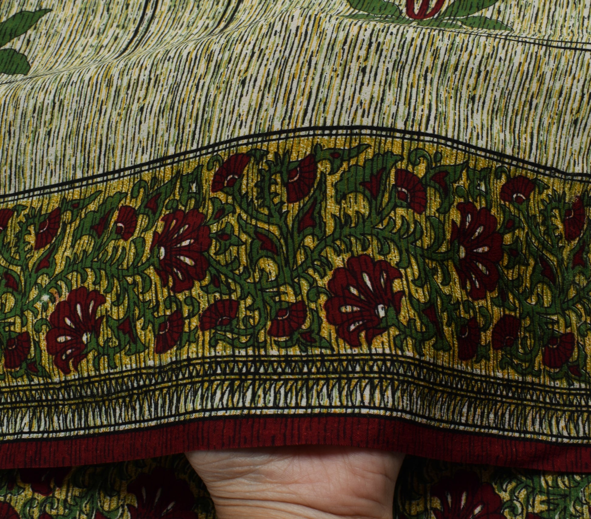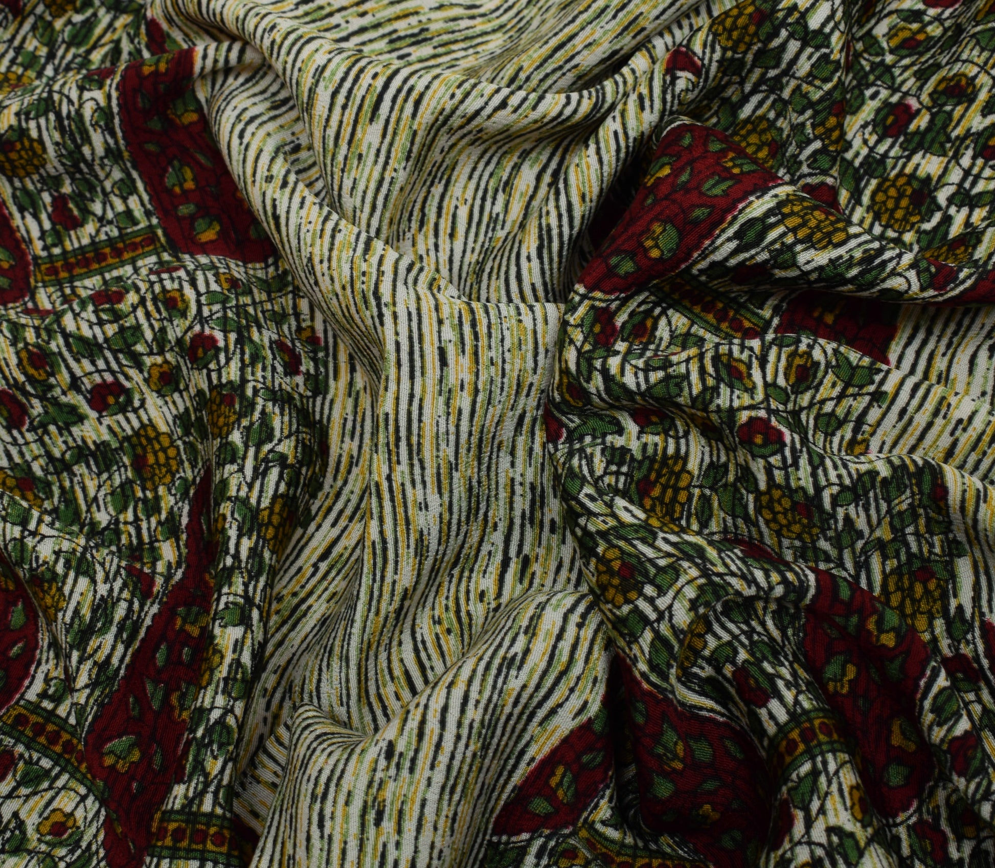 Sushila Vintage Cream Saree Blend Crepe Silk Printed Floral Soft 5 Yard Fabric