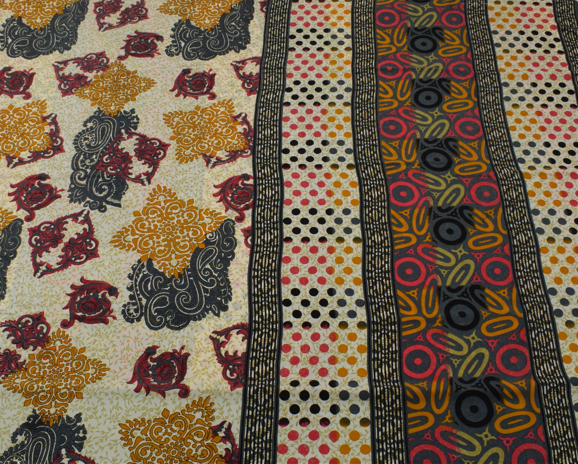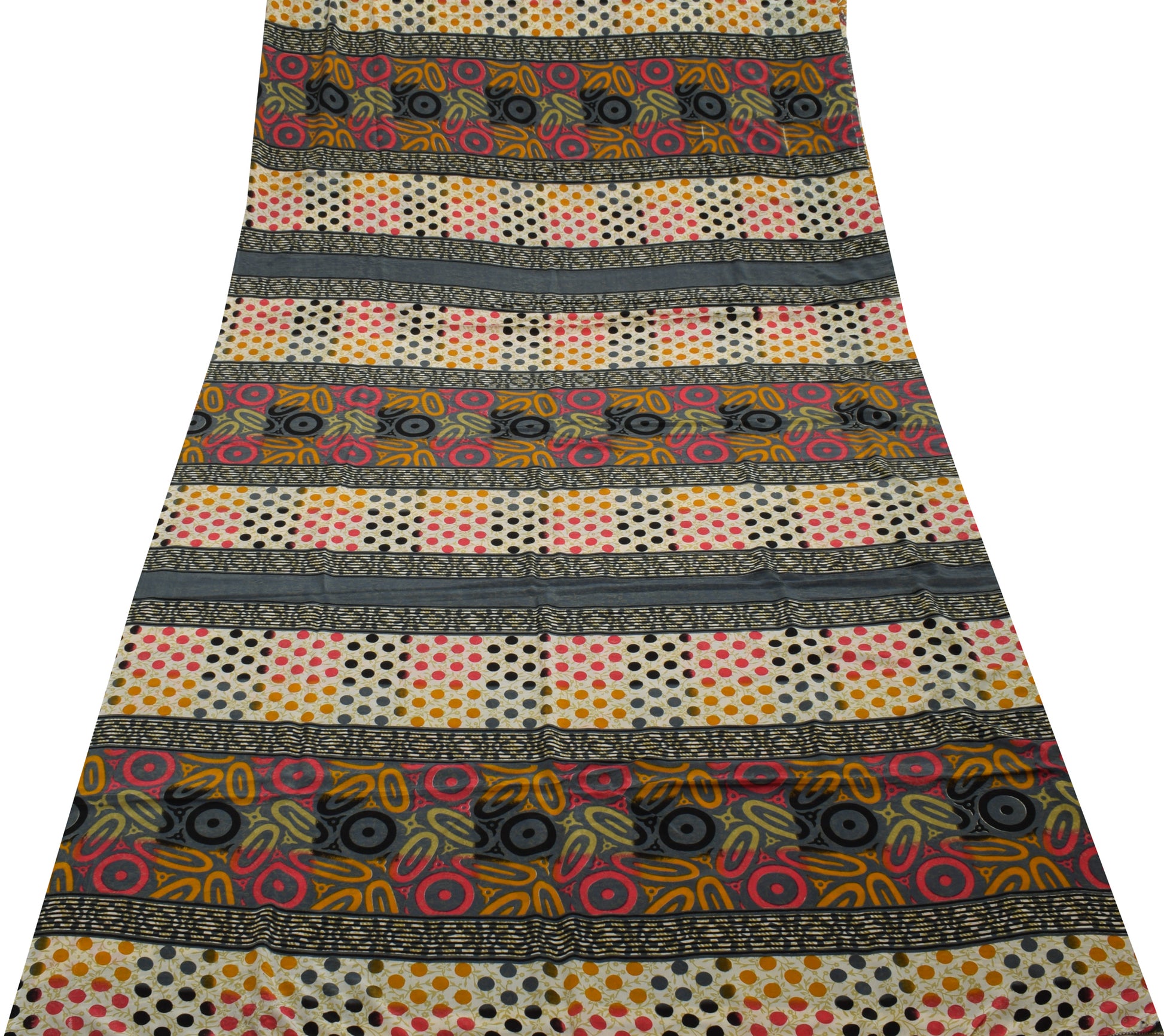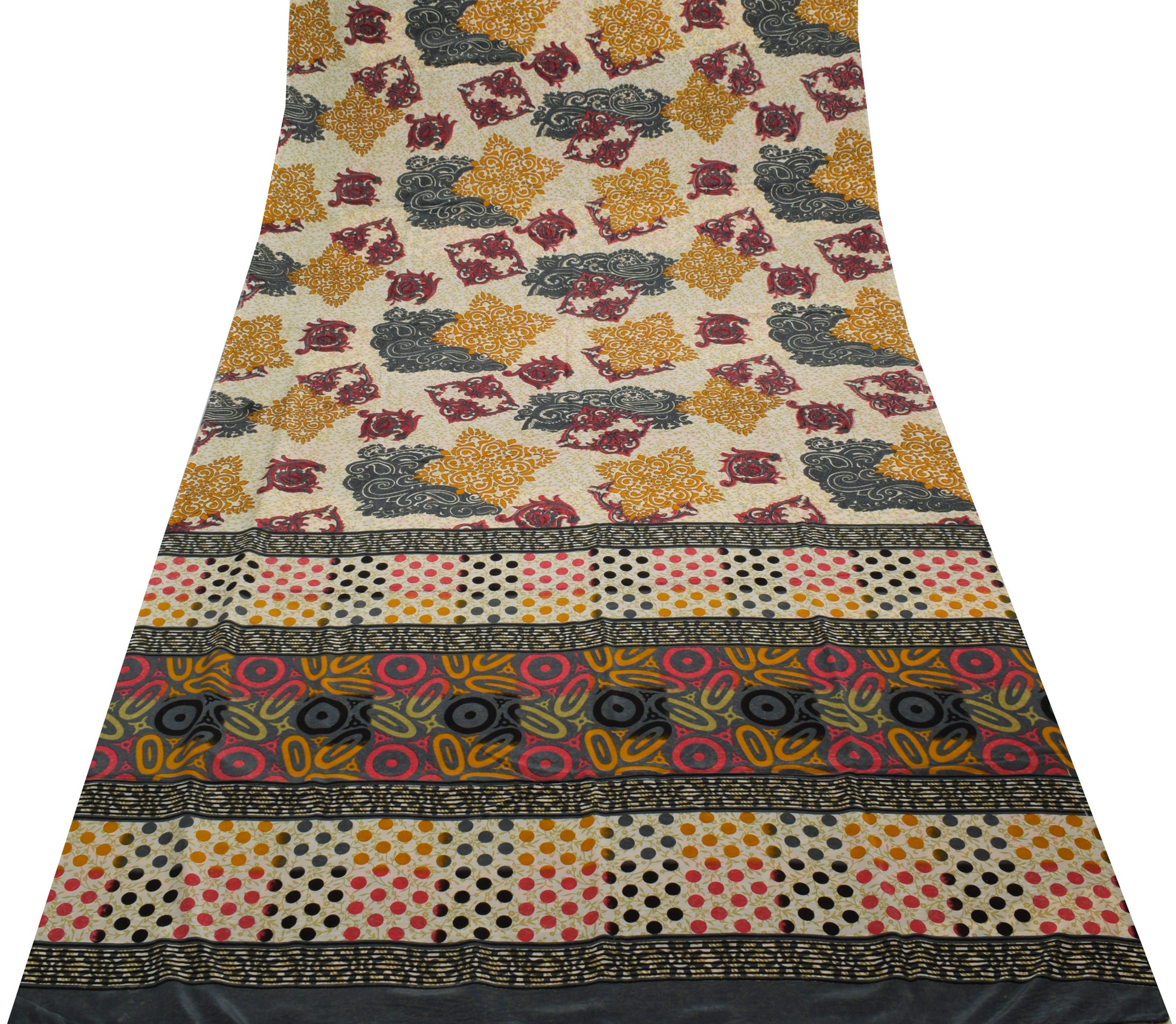 Sushila Vintage Cream Saree Blend Crepe Silk Printed Floral Soft Craft Fabric