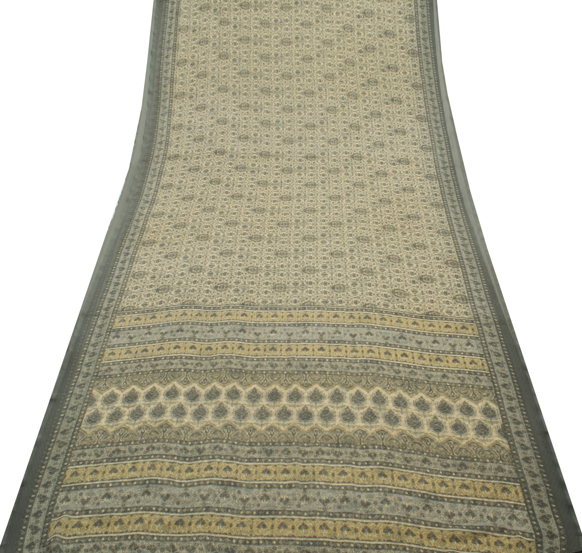 Celebrate traditional artistry with this exquisite Cream Blend Georgette Silk saree, known for its timeless Floral designs and fine Printed work. It is perfect for special occasions, creative repurposing, or as a beautiful heirloom gift. Measuring approximately 206 Inch in length and 44 Inch in width, this sari offers versatile styling options. It is lightweight, weighing just 360 Grams (Actual Product weight), making it easy to drape and carry for long hours. The natural breathability and luxurious drape of blend georgette silk make it a prized choice for those who appreciate fine craftsmanship and vintage fashion.