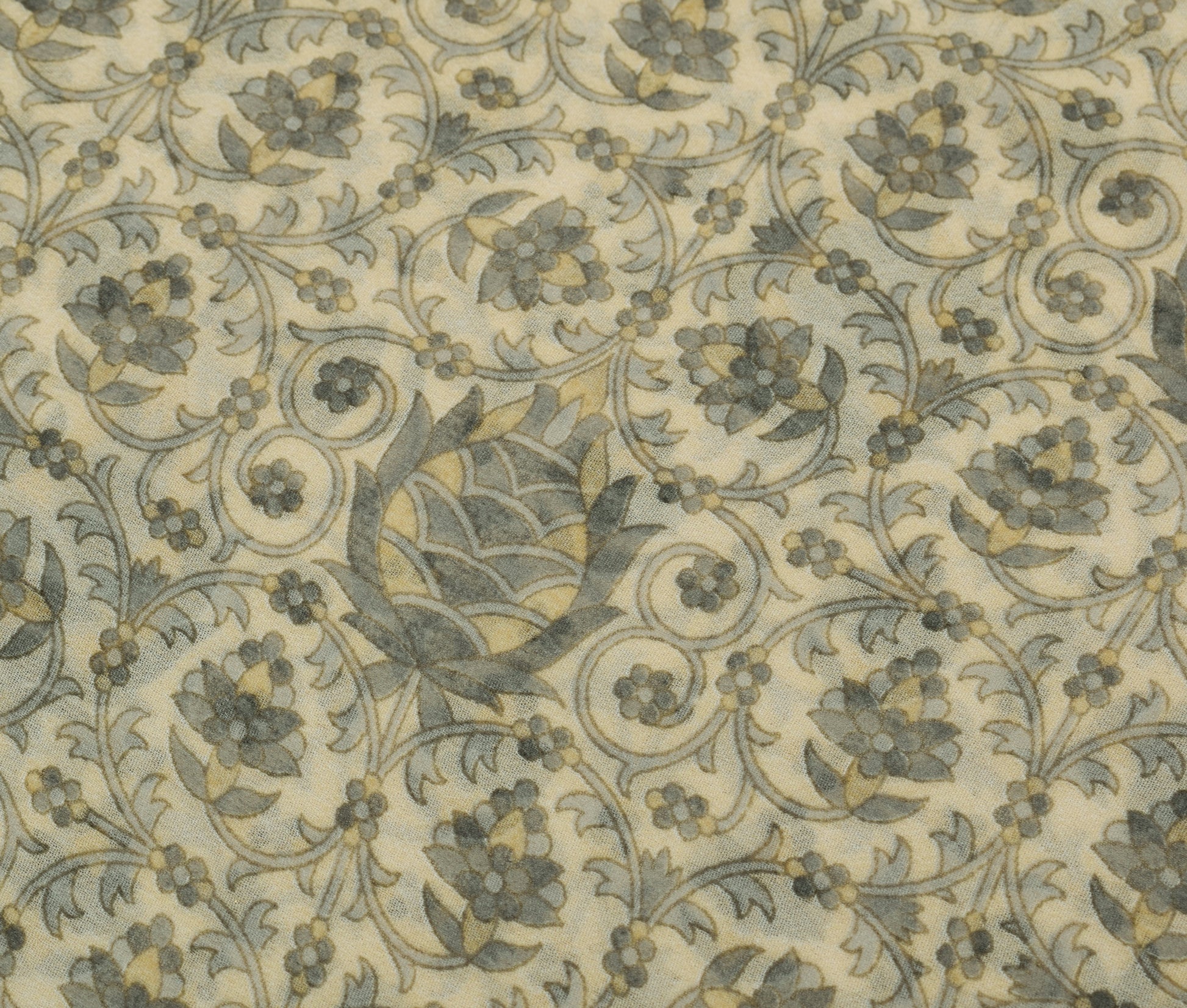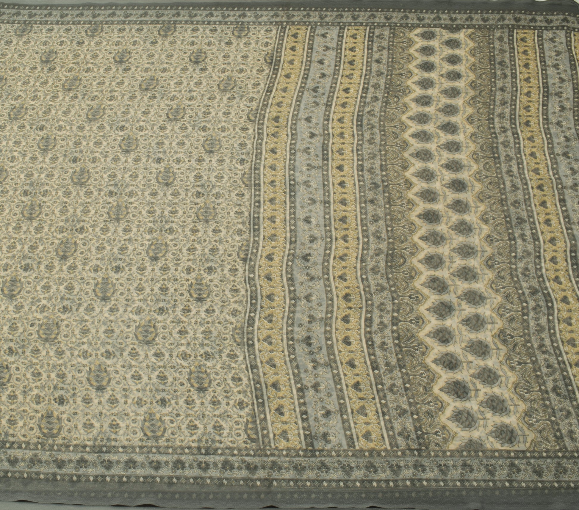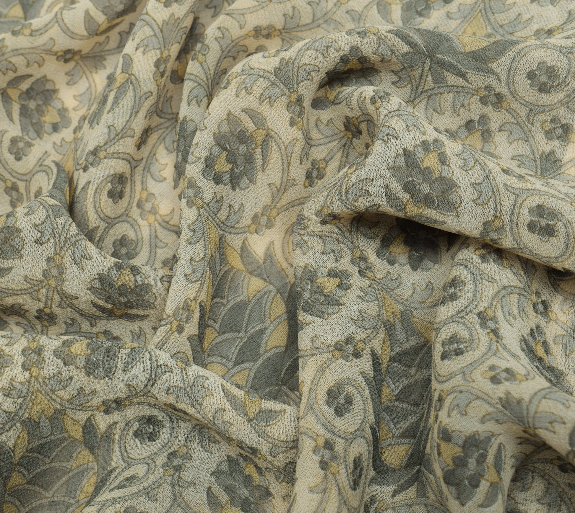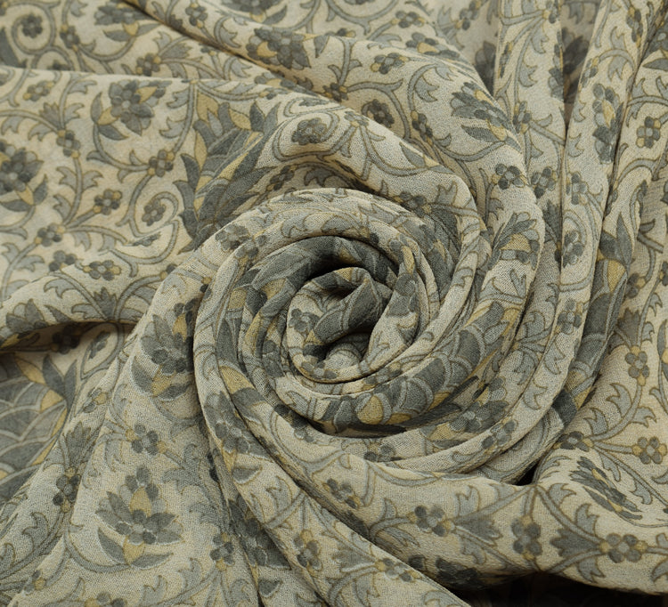 Sushila Vintage Cream Saree Blend Georgette Silk Printed Floral Craft Fabric
