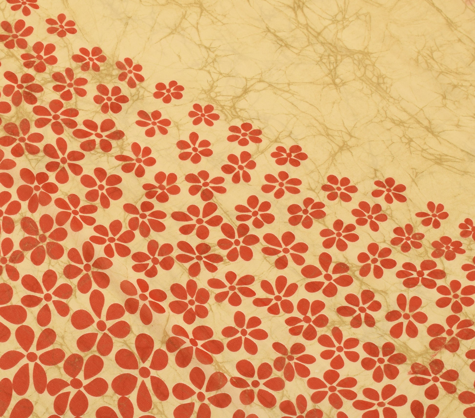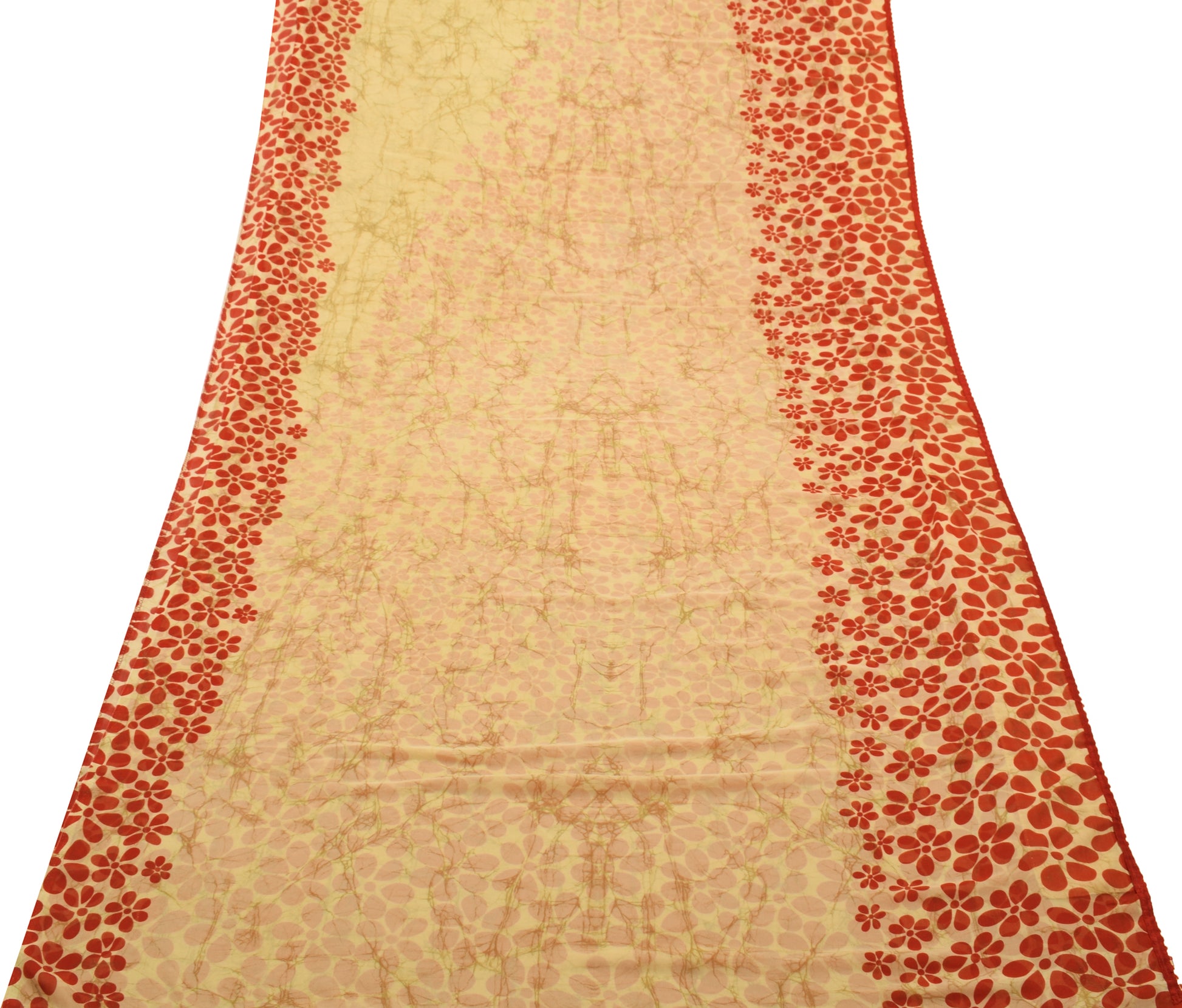 Sushila Vintage Cream Saree Blend Georgette Silk Printed Floral Craft Fabric