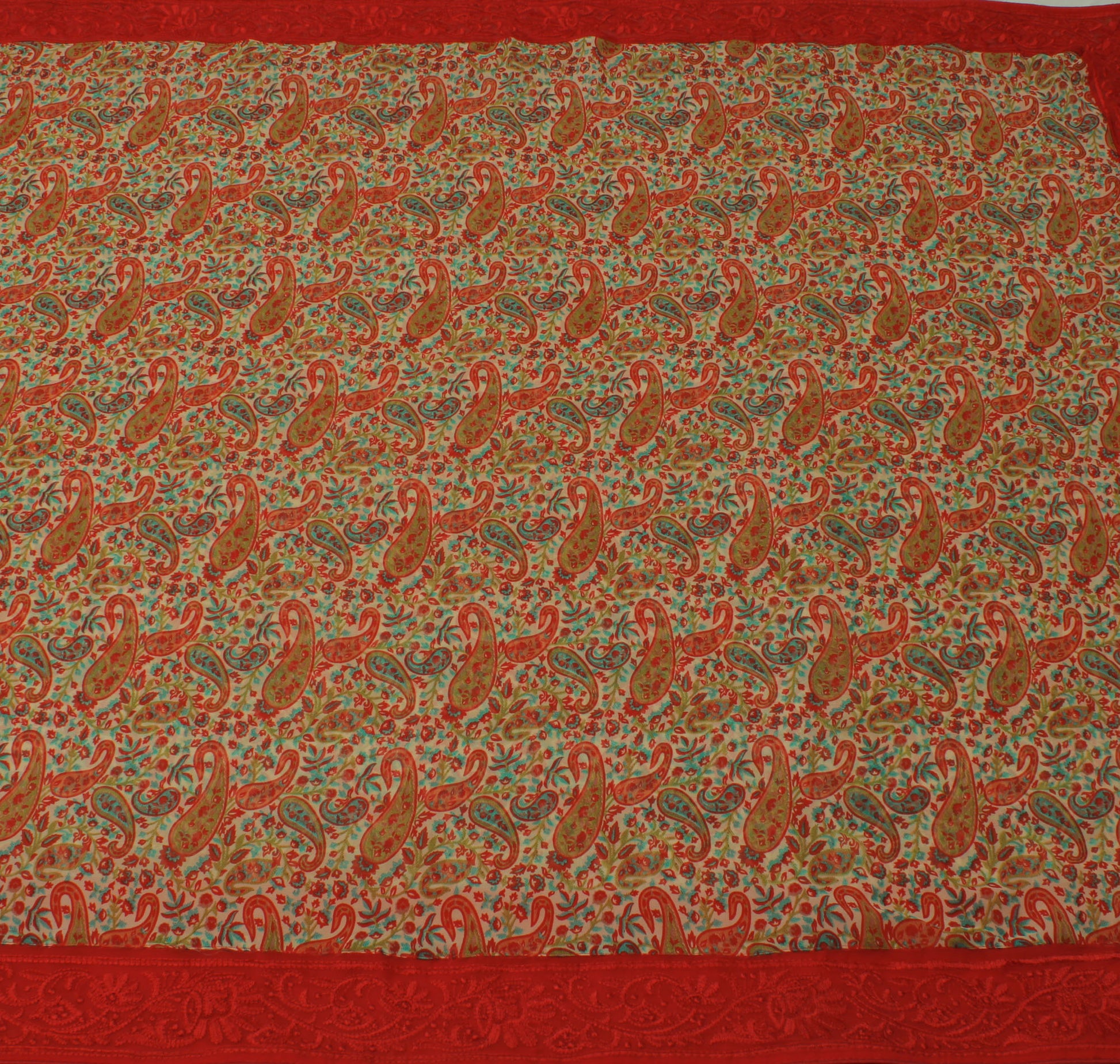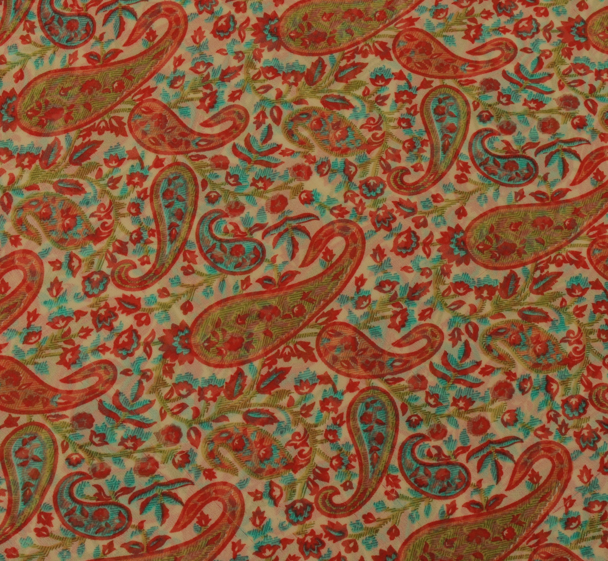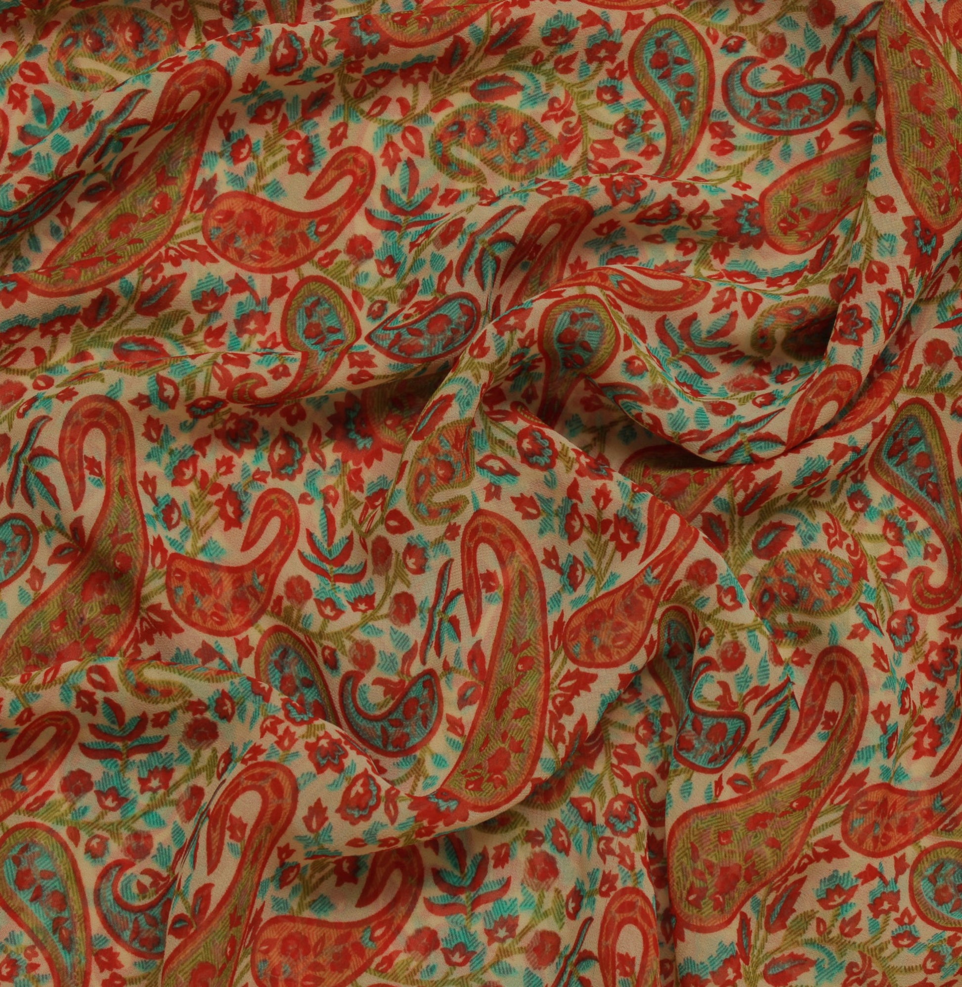Sushila Vintage Cream Saree Blend Georgette Silk Printed Paisley Craft Fabric