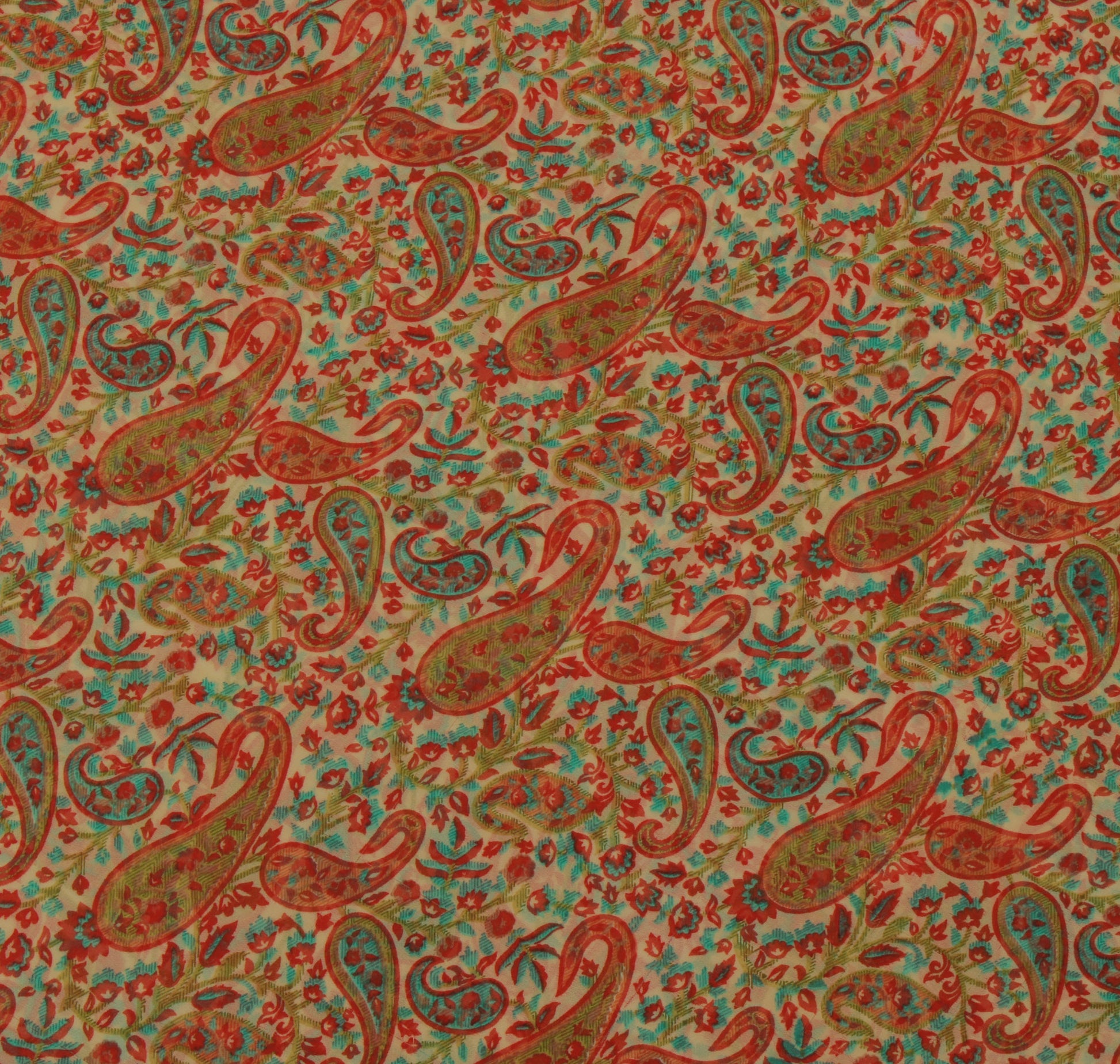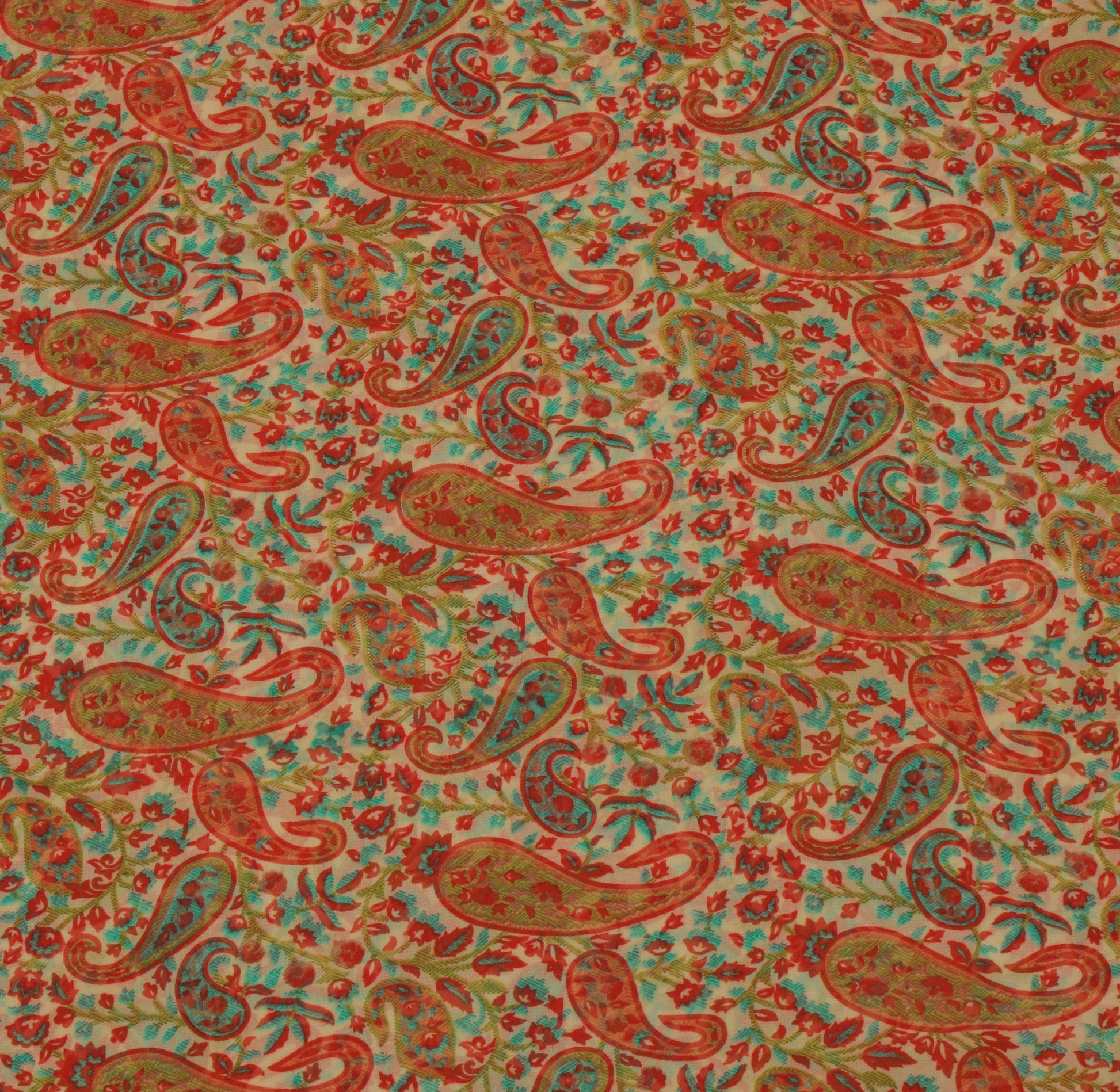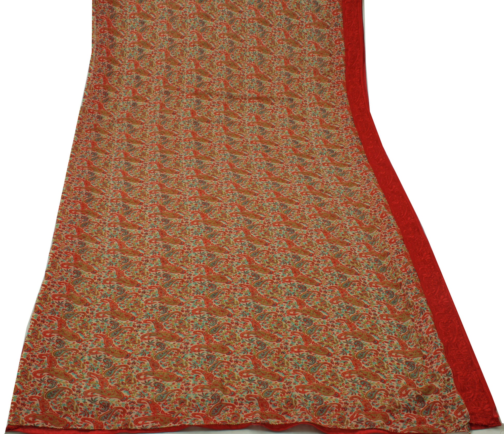 Sushila Vintage Cream Saree Blend Georgette Silk Printed Paisley Craft Fabric