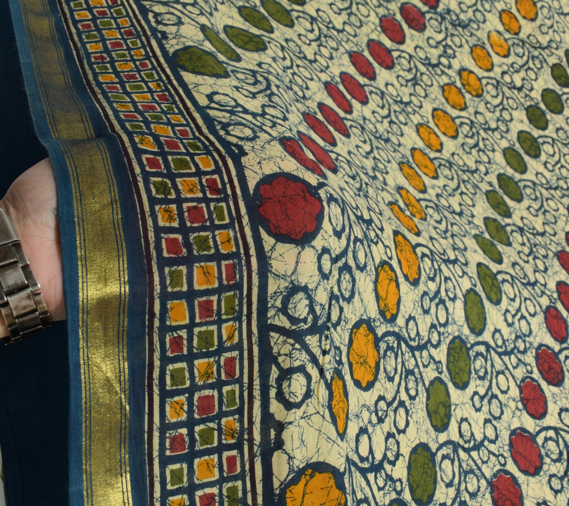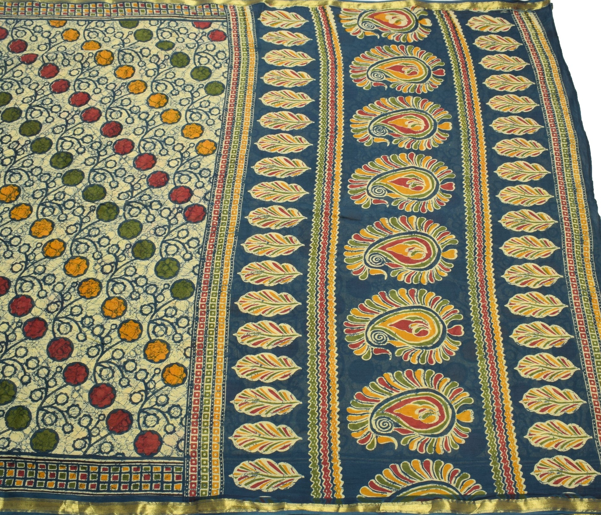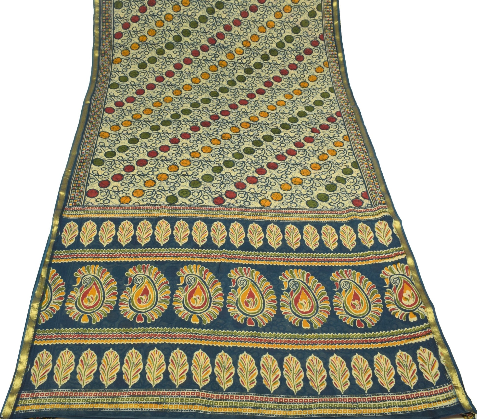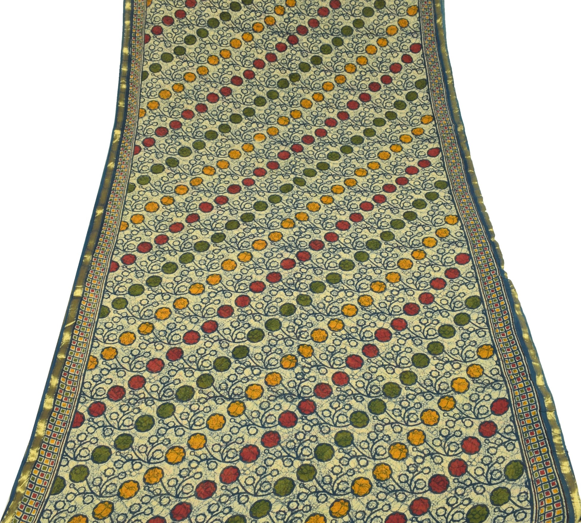 Sushila Vintage Cream Saree Pure Cotton Printed DailyWear Sari Soft Craft Fabric