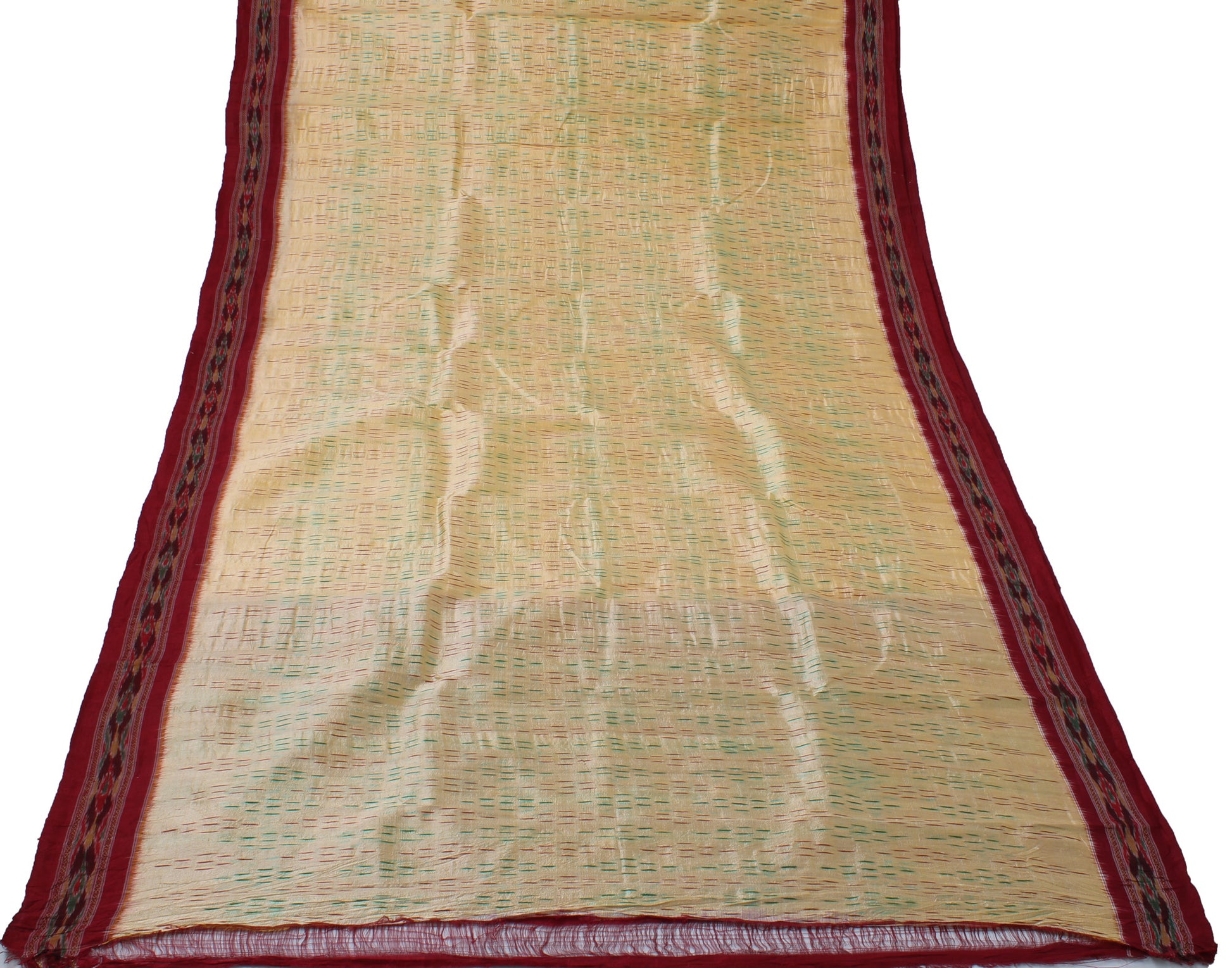 Sushila Vintage Cream Saree Pure Silk Hand Woven Ikat Patola Sari Craft Fabric