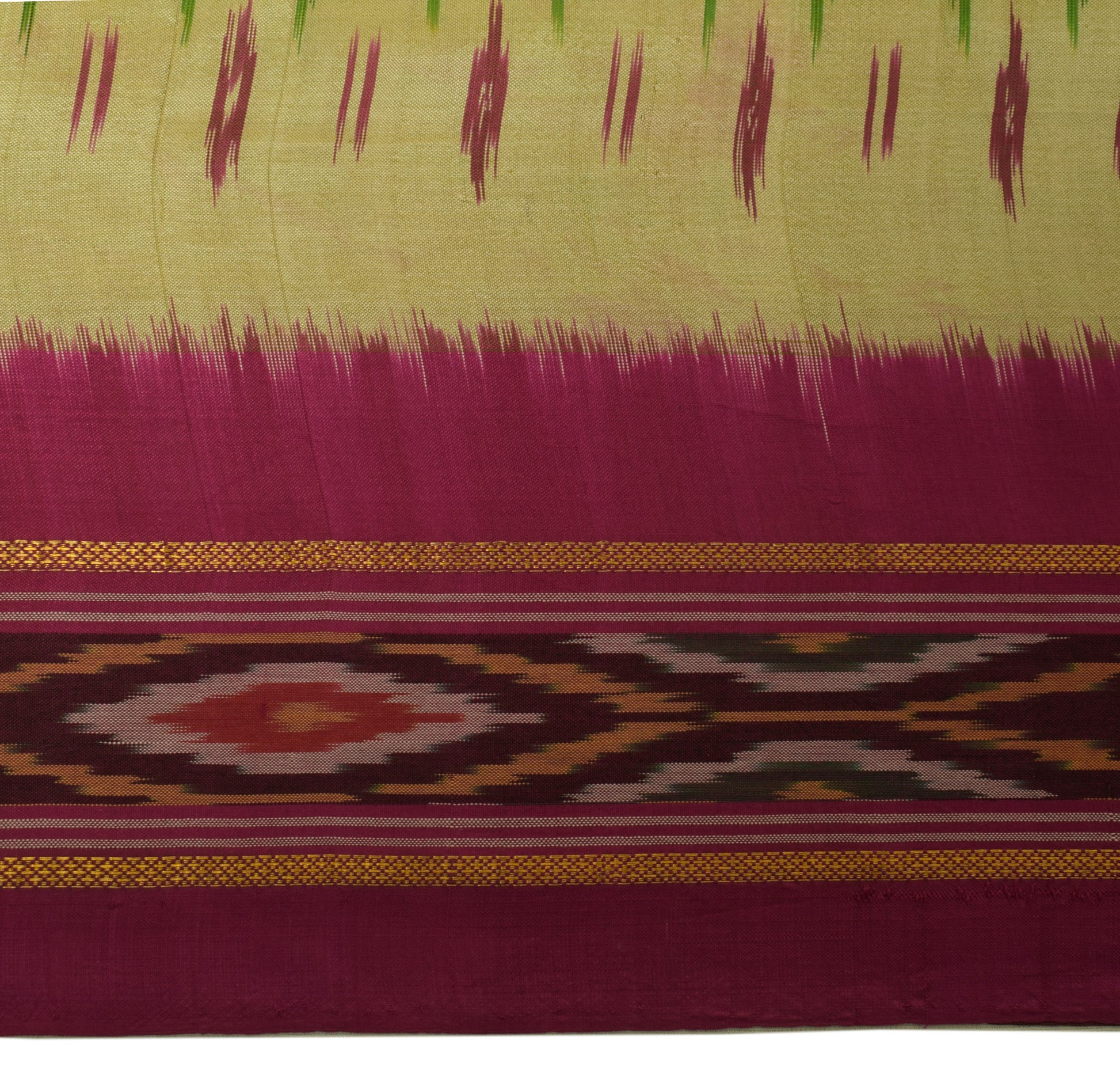 Sushila Vintage Cream Scrap Craft Saree Pure Silk Hand Woven Ikkat Patola Fabric