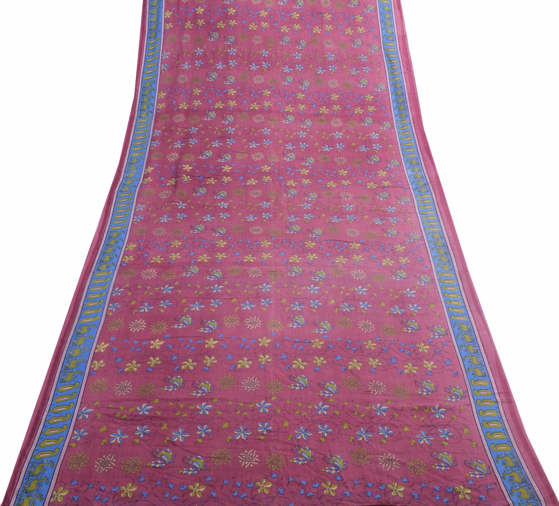 Sushila Vintage Daily Wear Saree 100%Pure Cotton Birds Printed Soft Craft Fabric