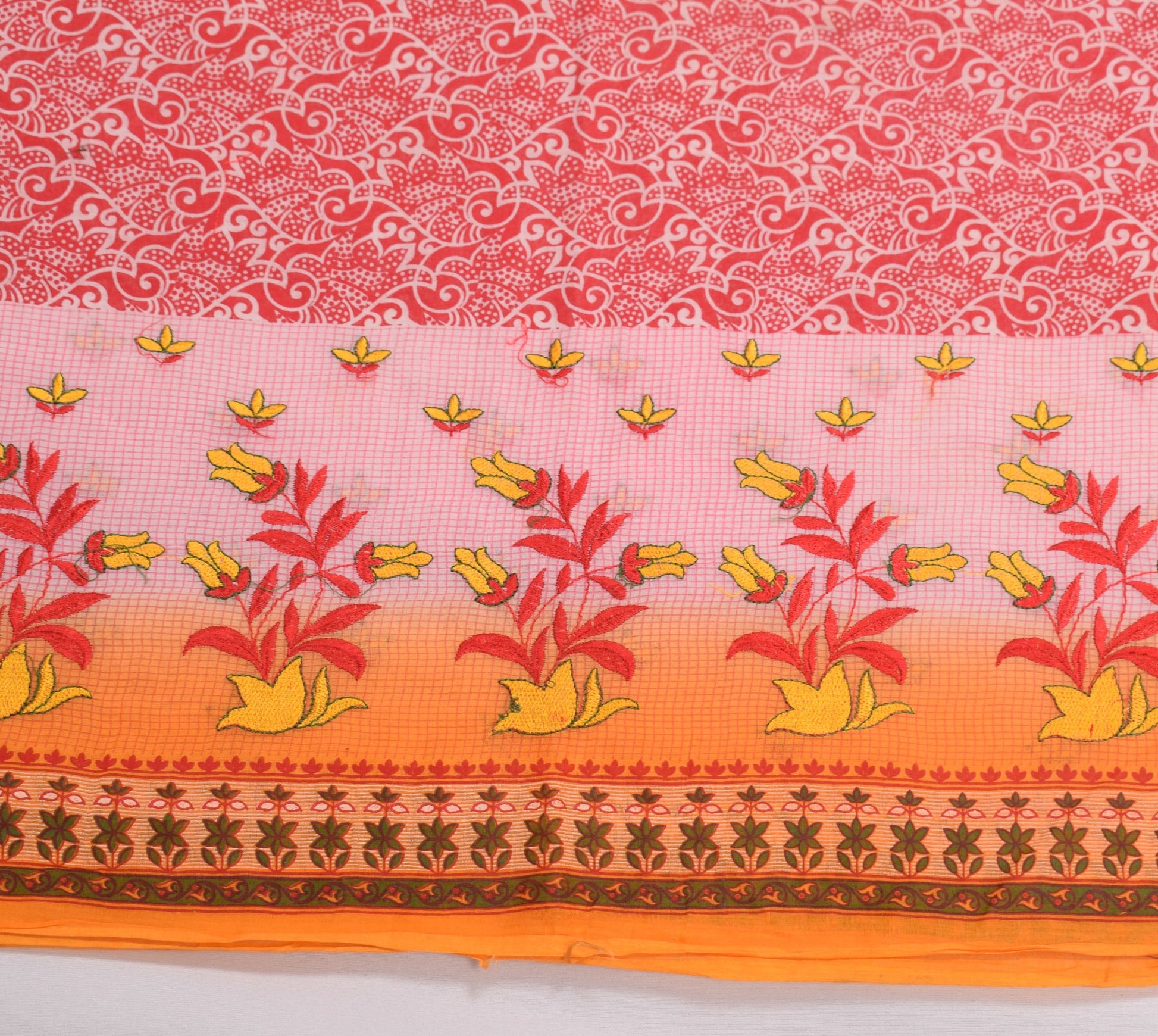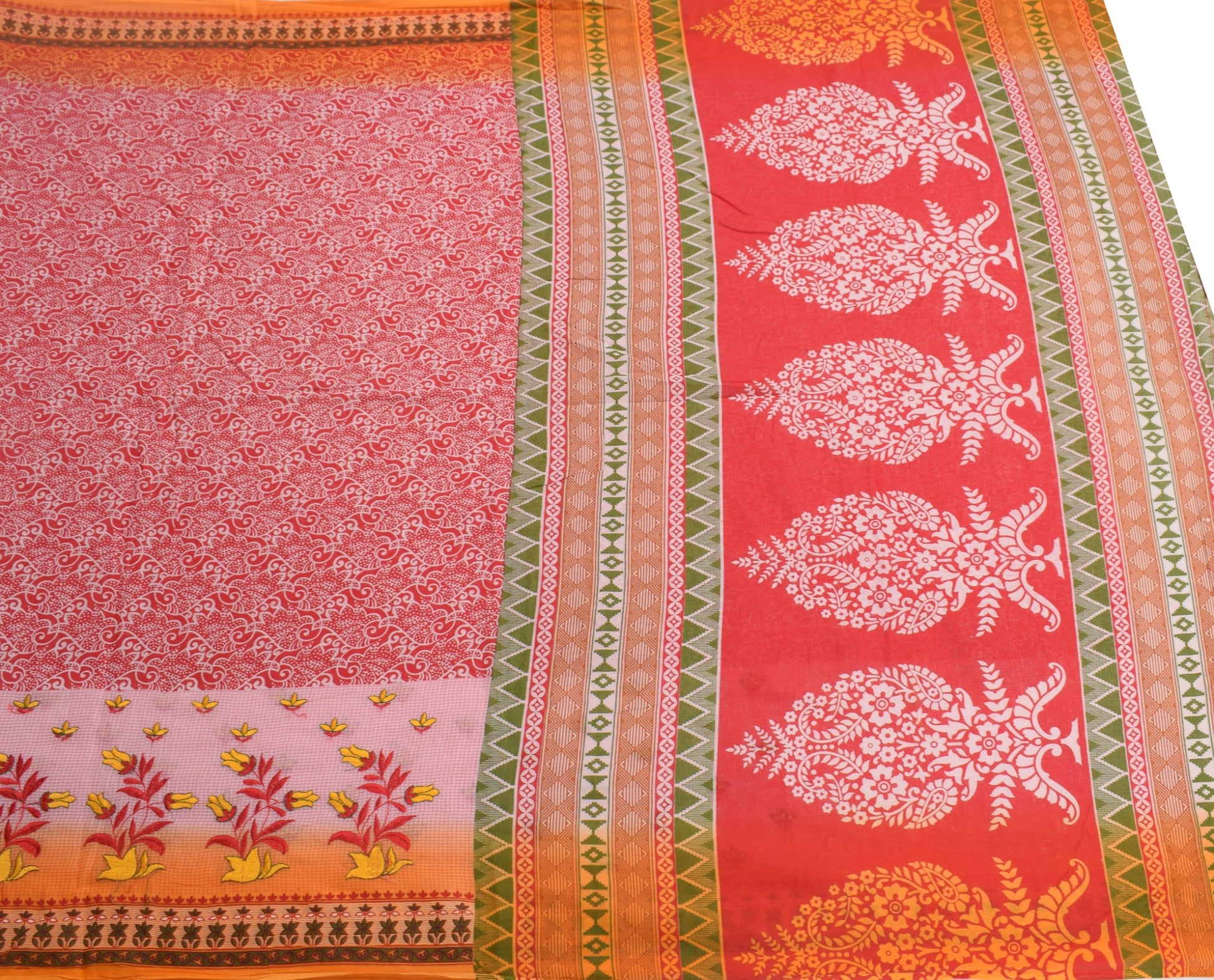 Sushila Vintage Daily Wear Saree 100%Pure Cotton Printed Red Floral Craft Fabric